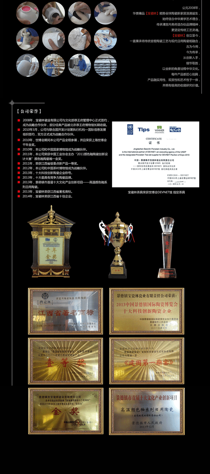 宝瓷林,2008年创立,是一家将传统清宫官窑制瓷技艺,移植于当代家居日用瓷品上的景德镇陶瓷骨干企业,是当下唯一一家代表“千年瓷都-景德镇”走向全球的陶瓷连锁品牌,被誉为陶瓷界的“国酒茅台”。