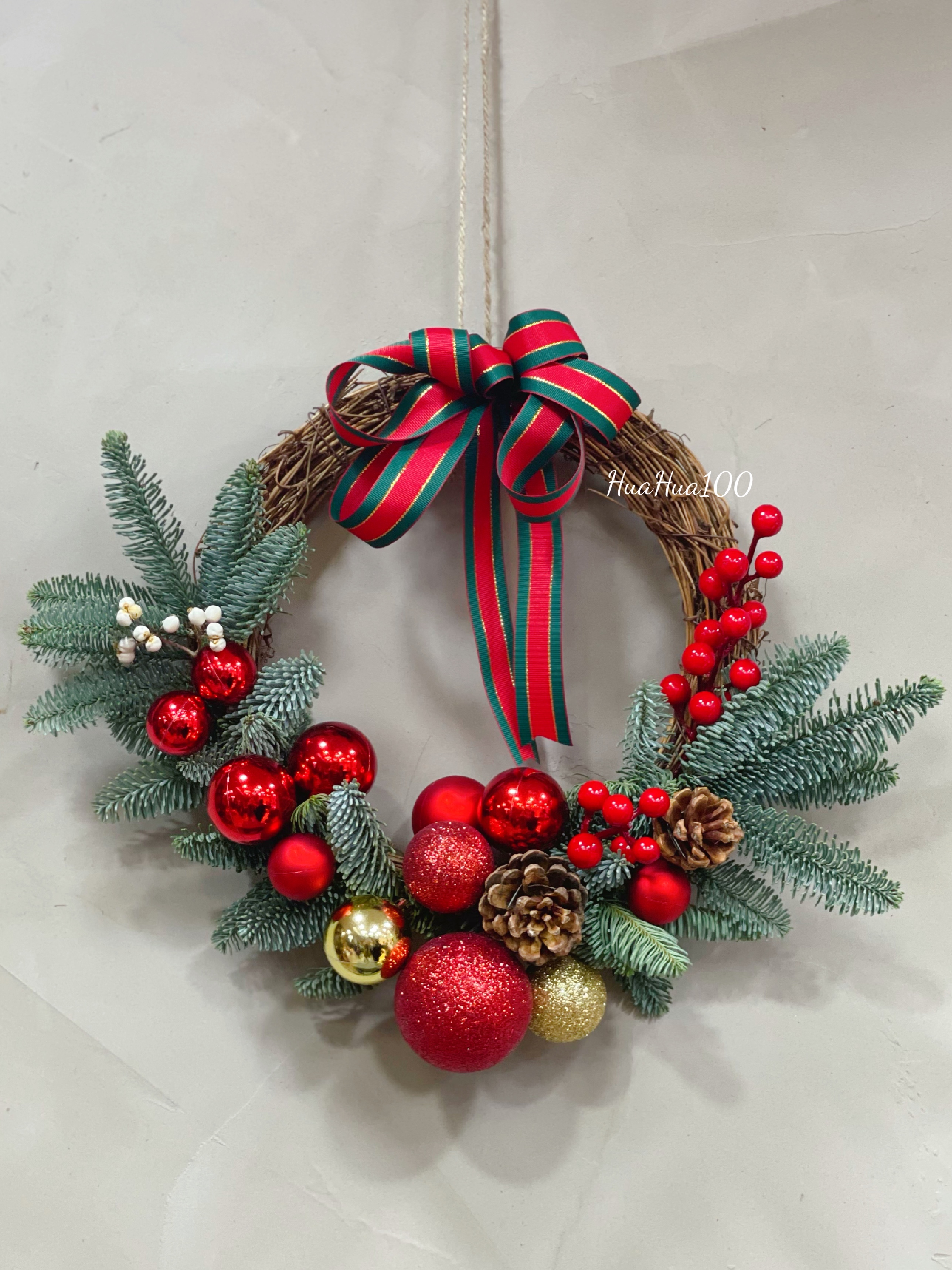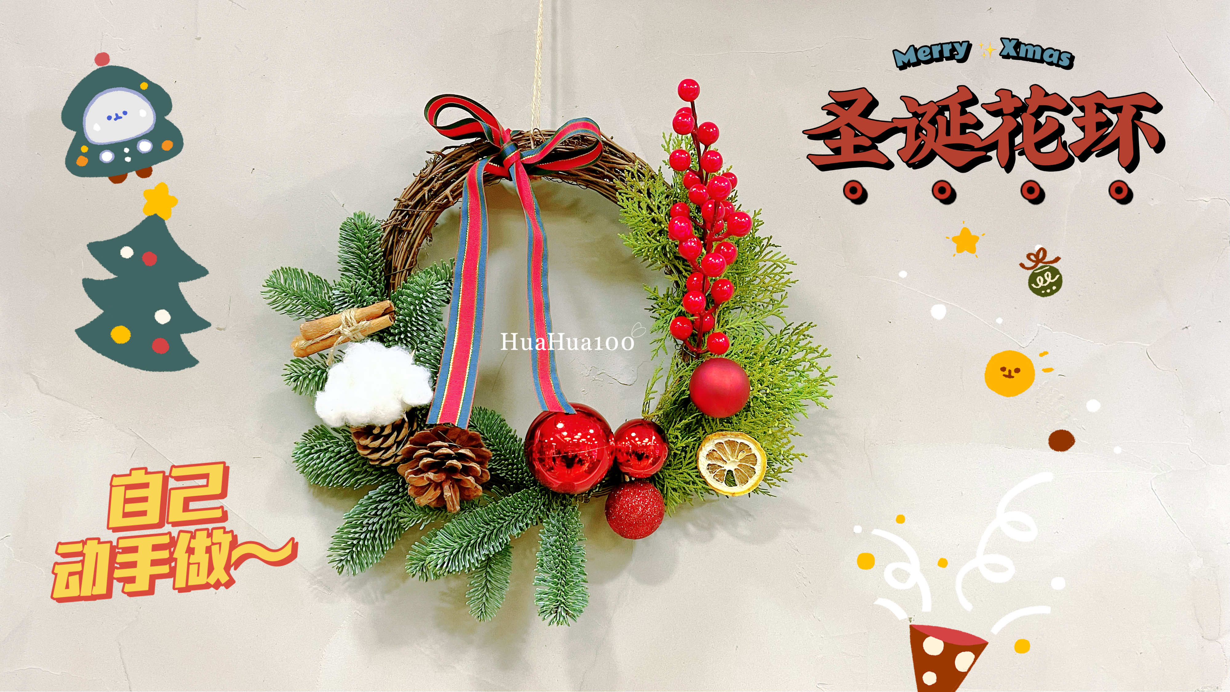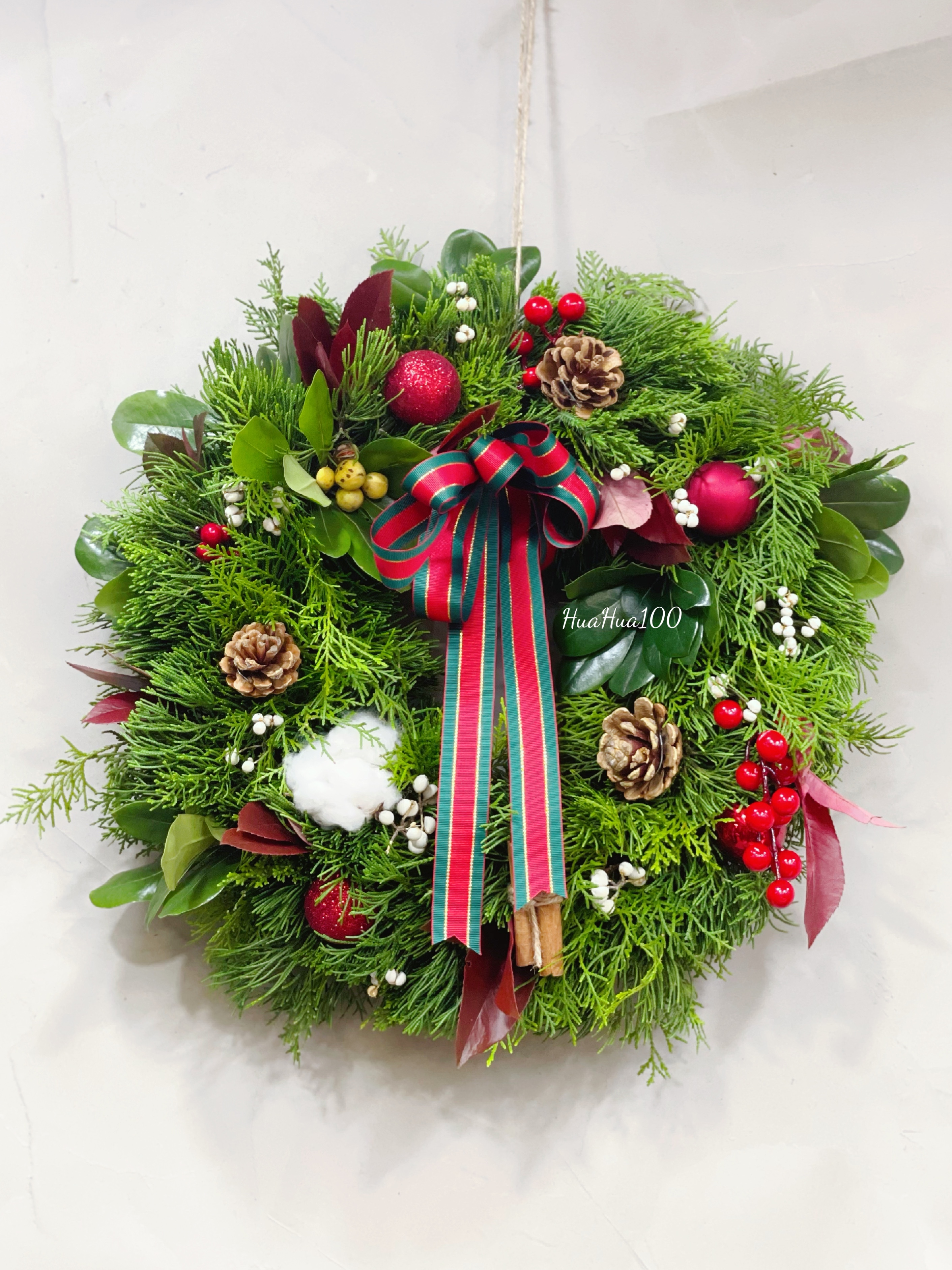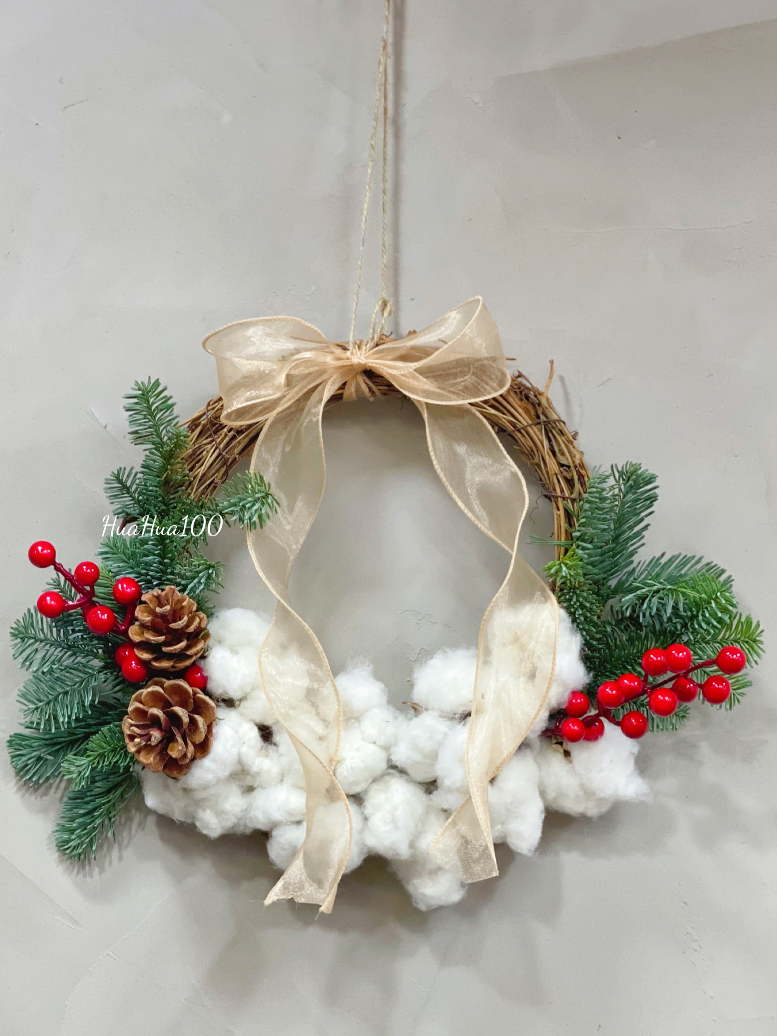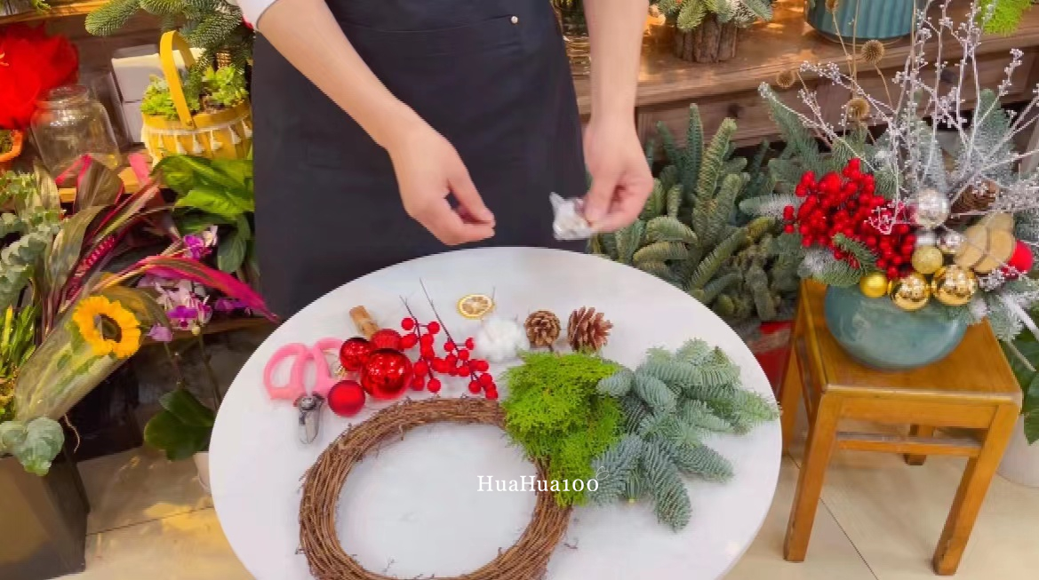 配件:圣诞球、松果、棉花等