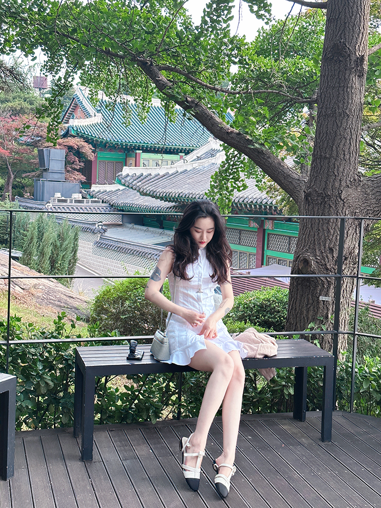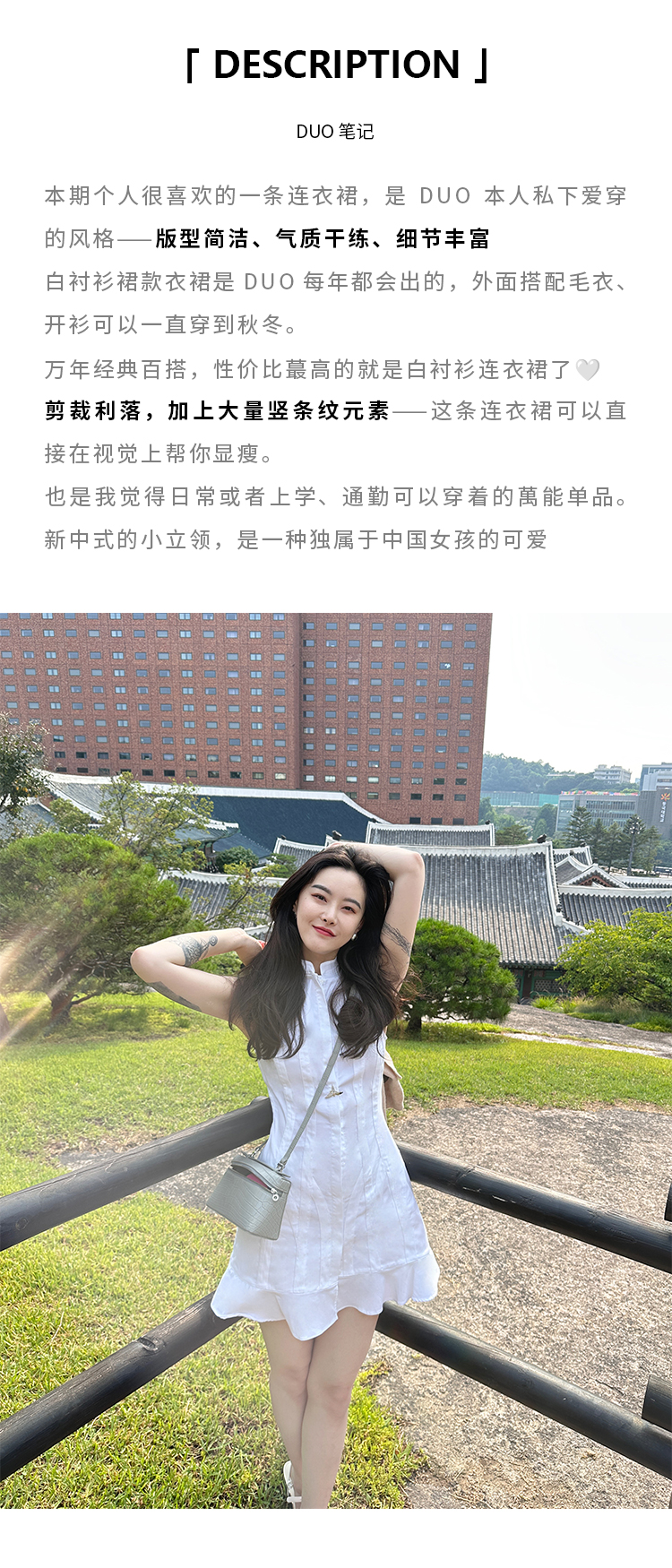 DUO智仙生 芭比系列聪明感学院派白色衬衫花边连衣裙