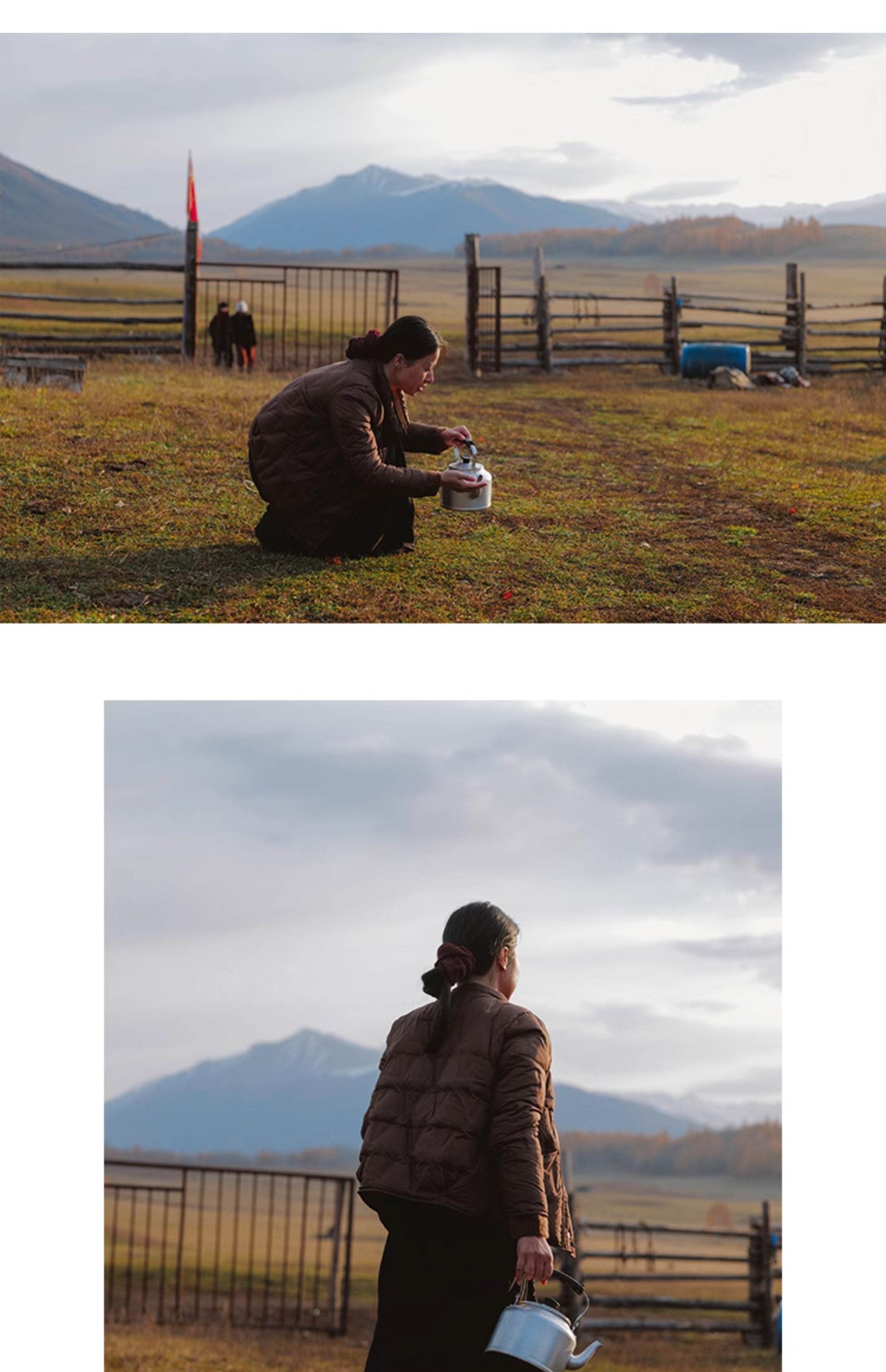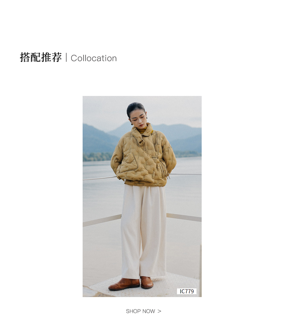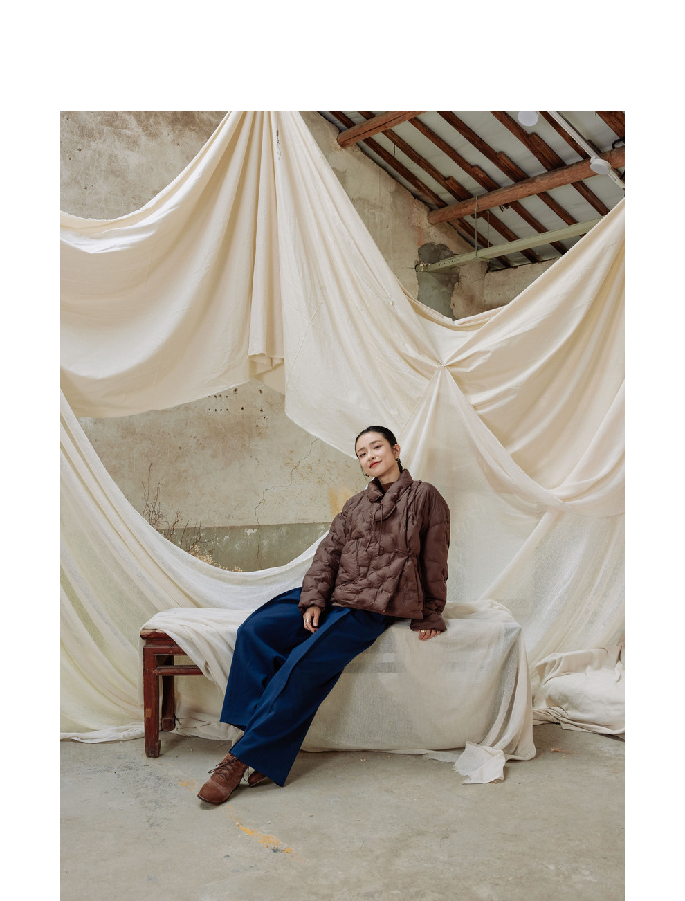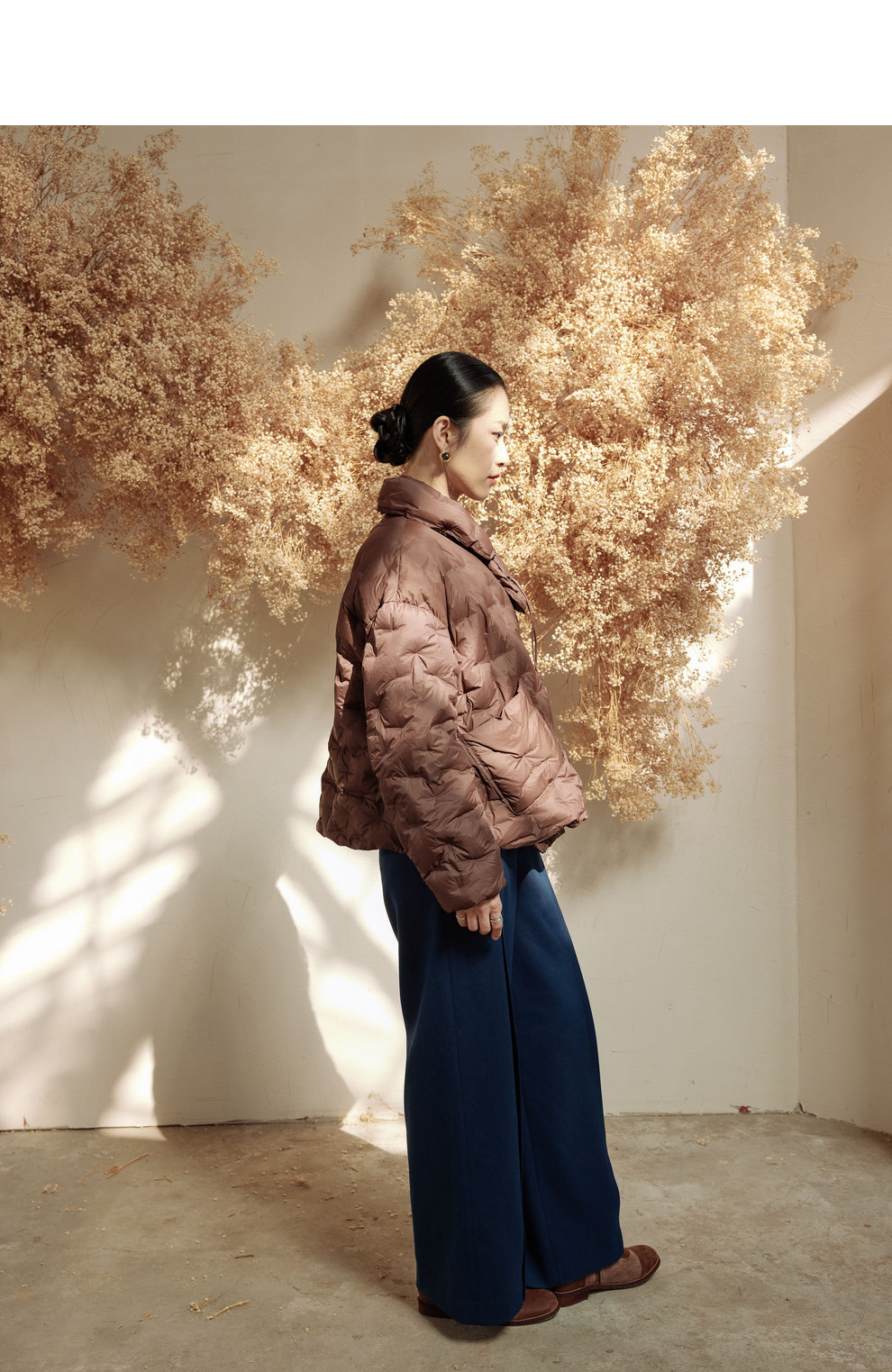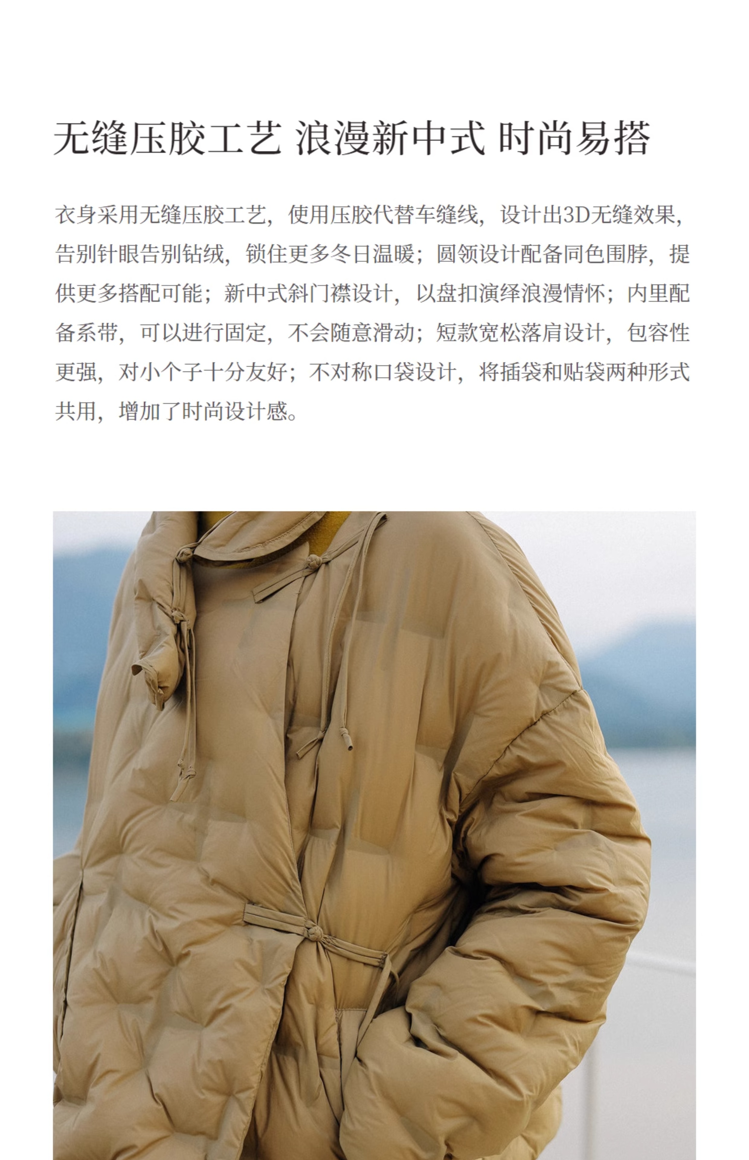绽放786朵/新中式盘扣系带绗缝不对称圆领咖啡色轻薄短款羽绒服