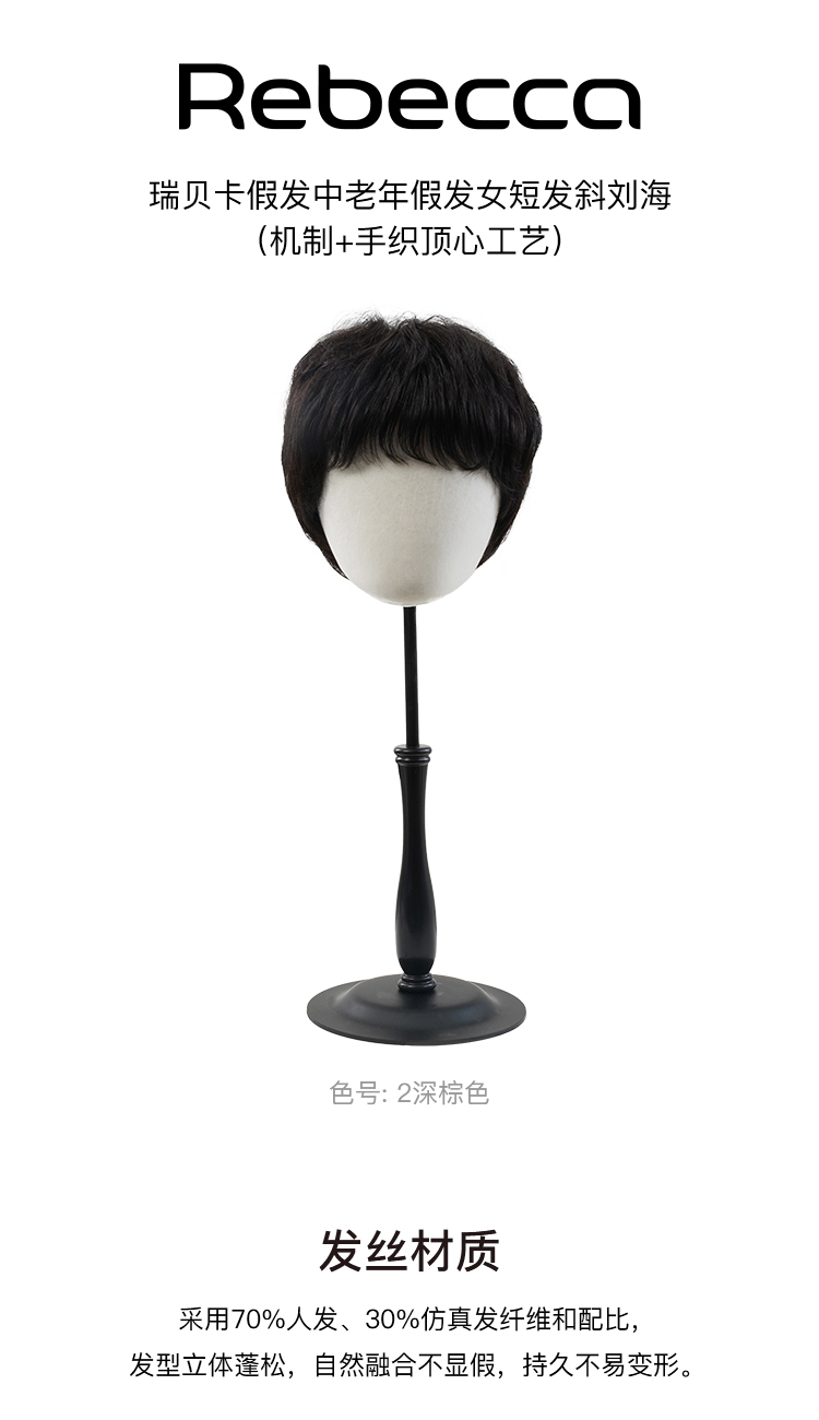 Rebecca瑞贝卡假发中老年假发女短发斜刘海头套(机制+手织顶心工艺)