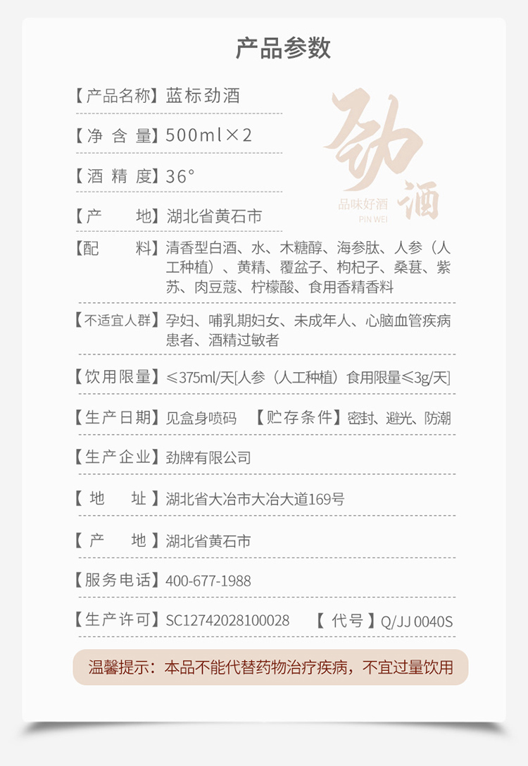 蓝标劲酒 36度 500ml*2瓶 两斤礼盒装 清香型 礼盒内置2个品鉴杯 送礼 宴请 节日礼物 聚餐 送长辈