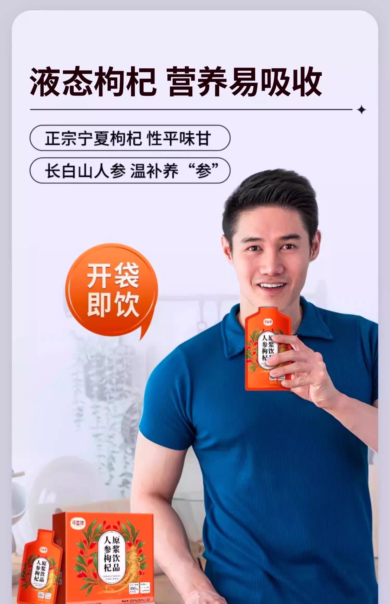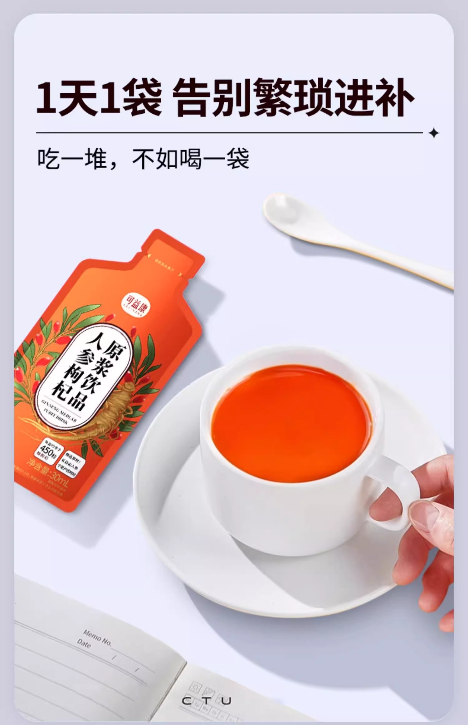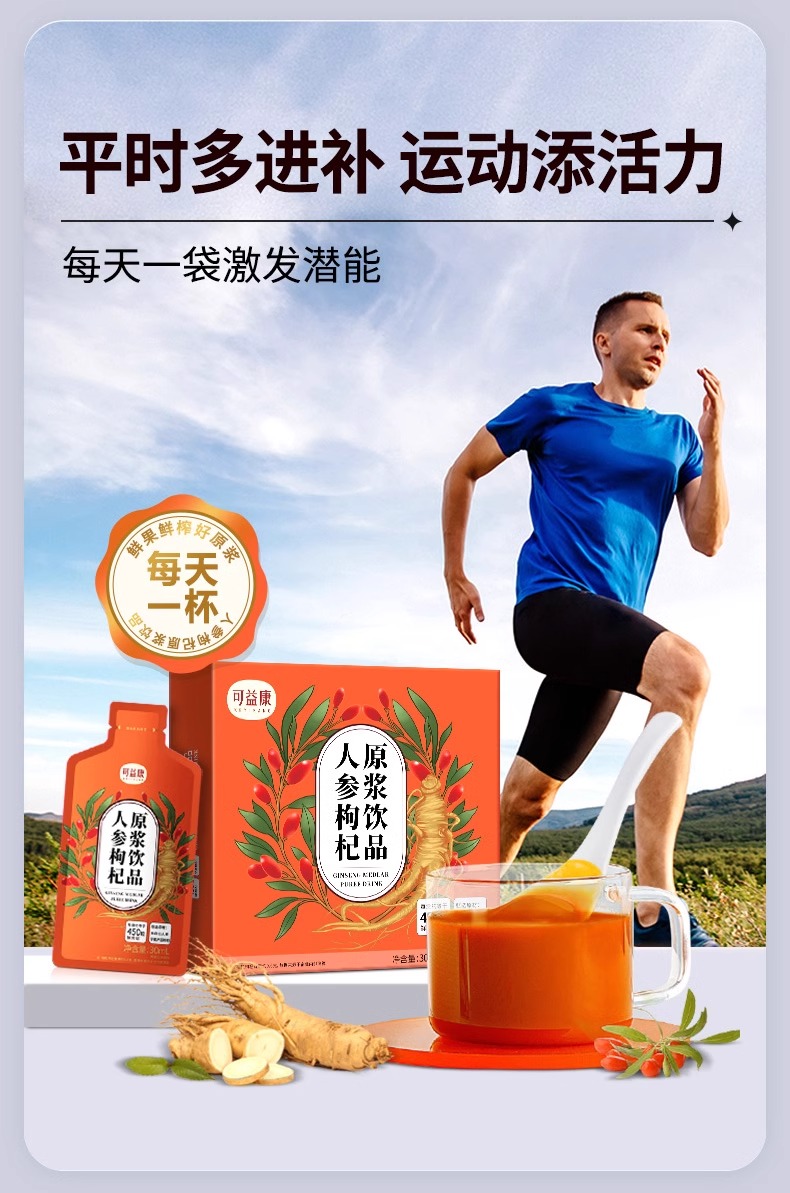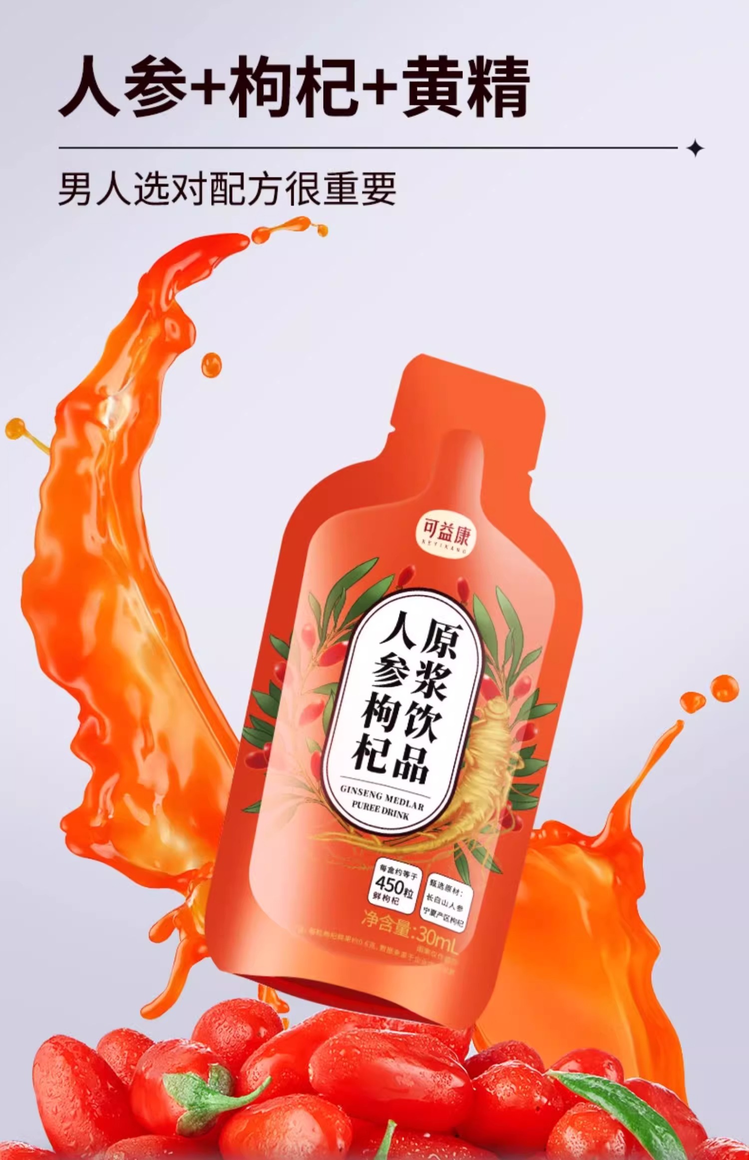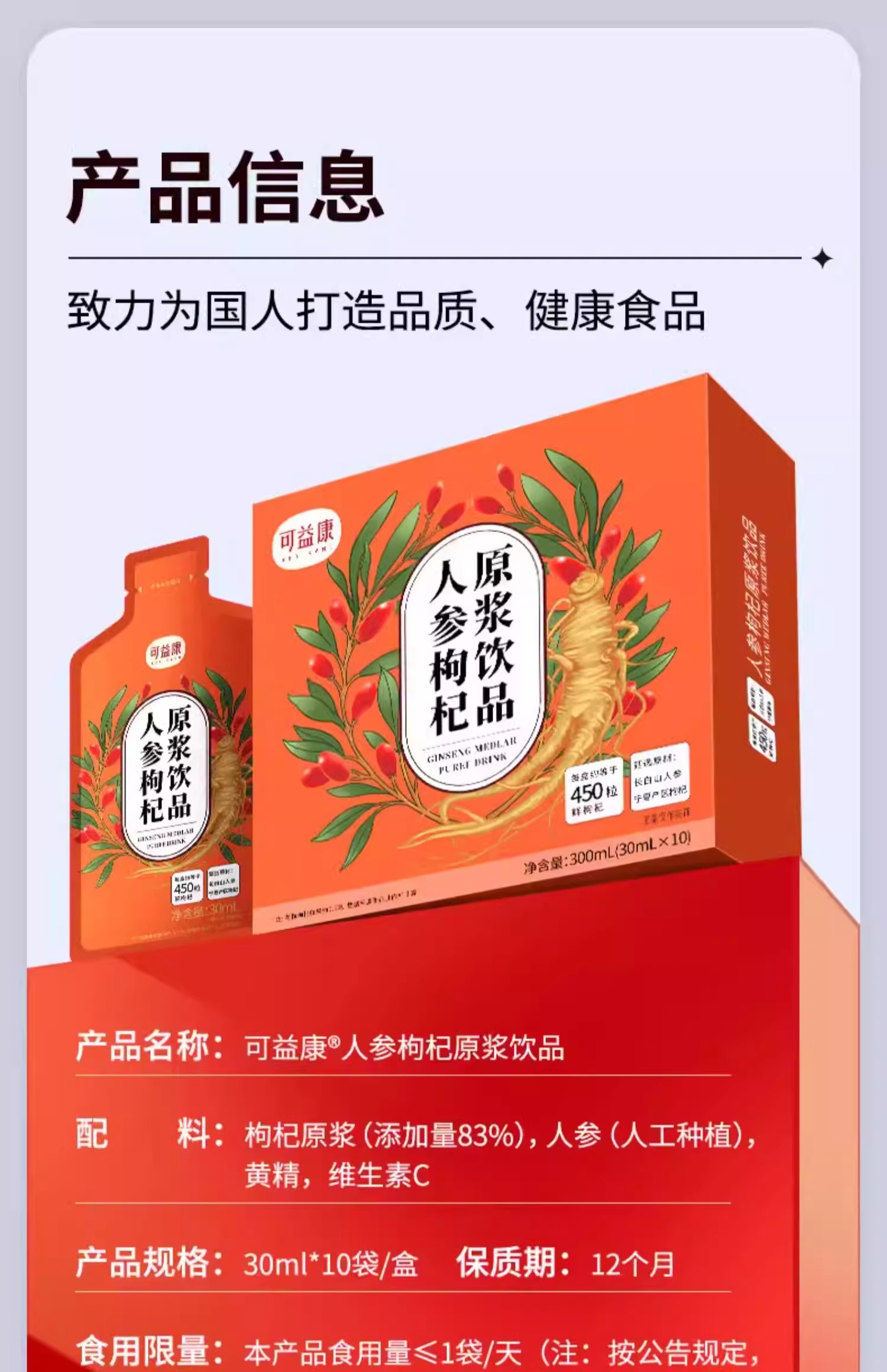 可益康人参枸杞原浆饮品 特别添加长白山人参+黄精 科学进补 清香浓郁 30ml*10袋/盒
