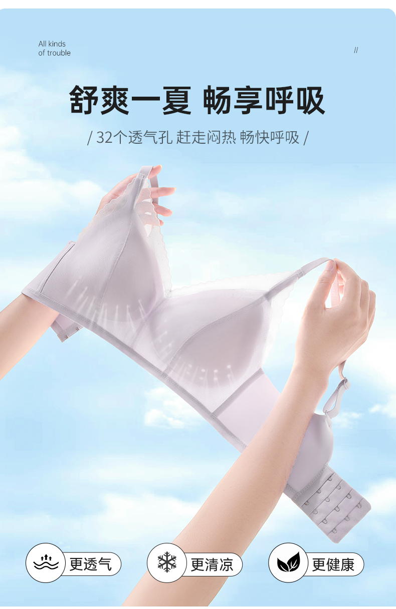 雅黛丽内衣女薄款夏季无痕透气洞洞杯文胸无钢圈柔软舒适美背胸罩