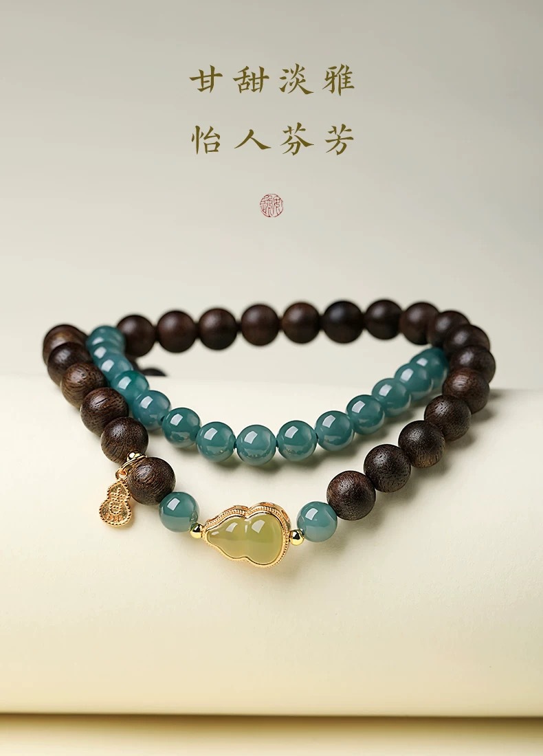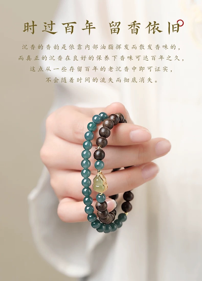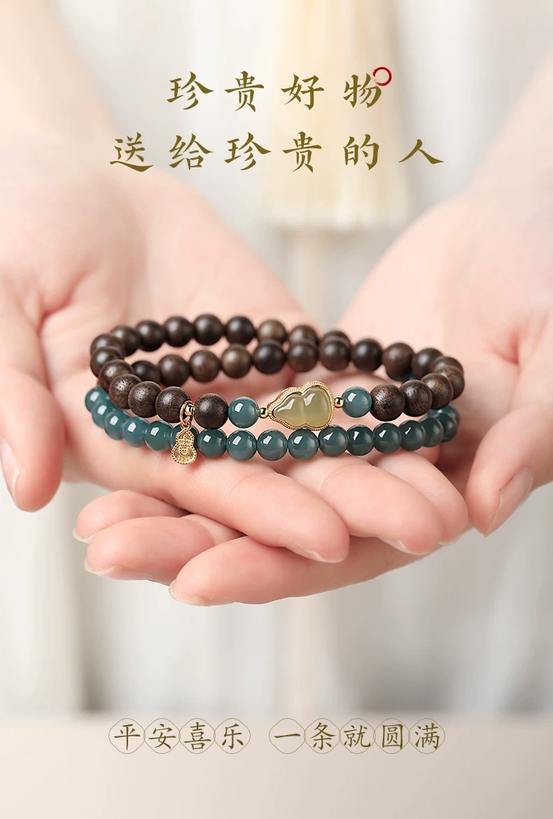 【粉丝专属❗️沉香佛珠吉牌手串】运势装备,鸿运随行,时过百年,留香依旧!晴水葫芦蓝水翡翠双圈古风手链男女6mm手链