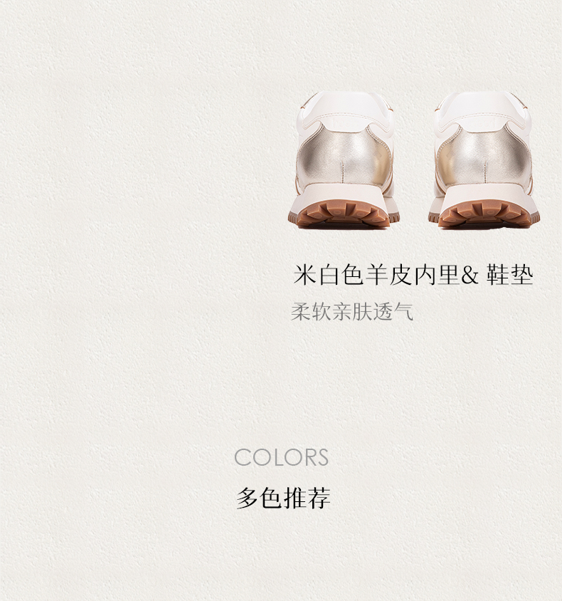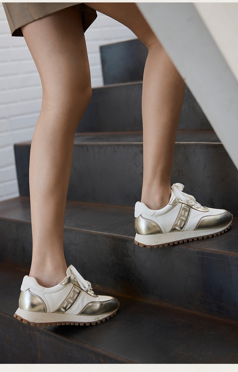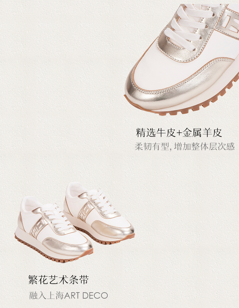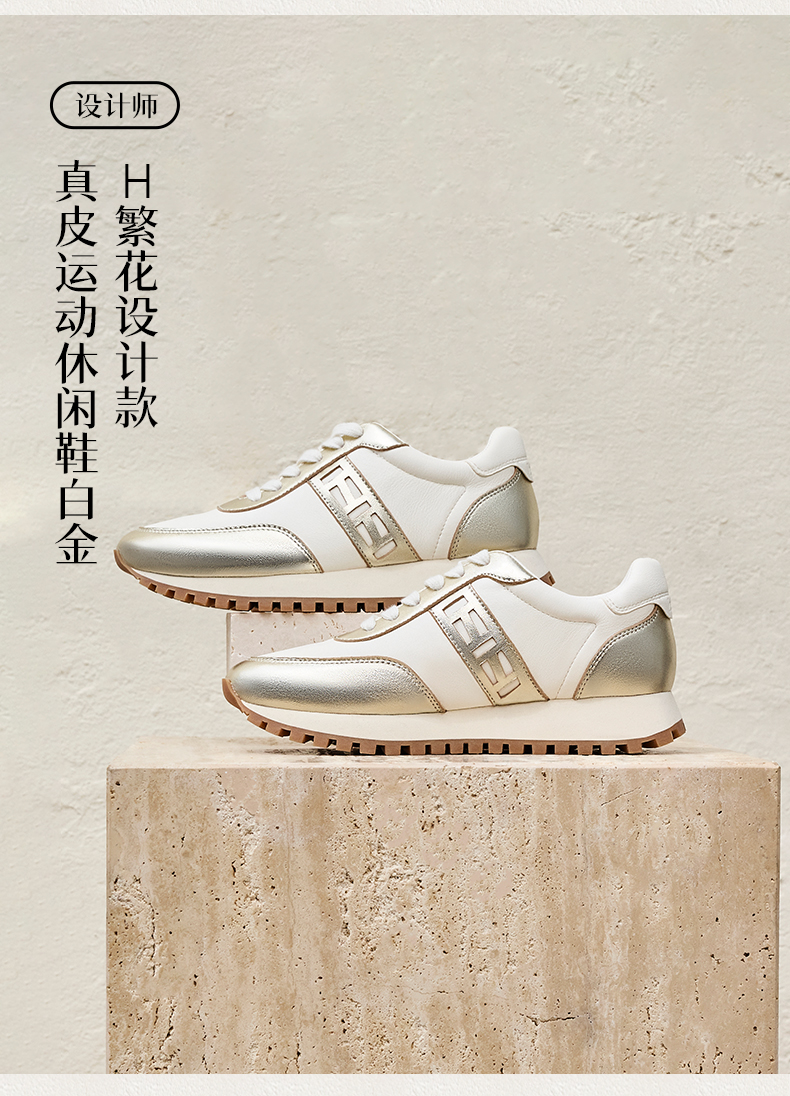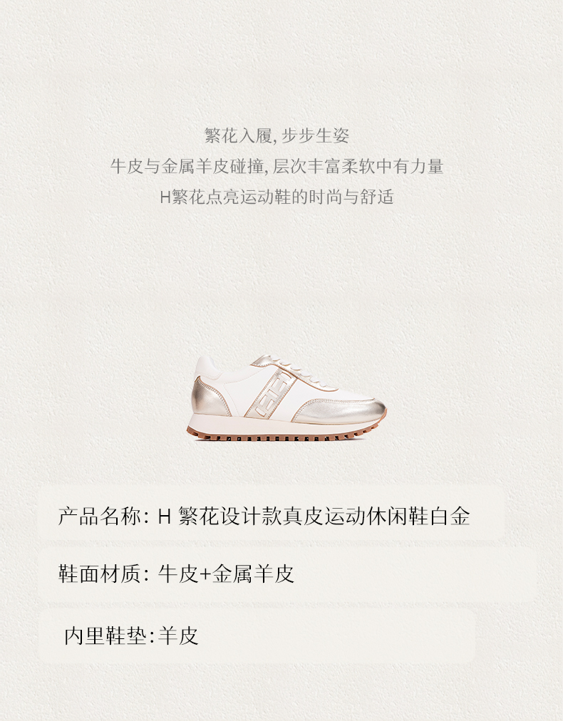 heelz设计师手工鞋履 |H繁花设计款真皮运动休闲鞋白金3公分