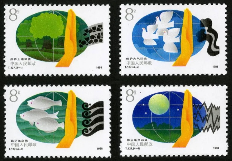 1988.6.5。影写版。P11。40mm×27mm。40[2×(2×10)]。 四枚呈田字形连印。[D]张安朴、徐逸涛。北京邮票厂。