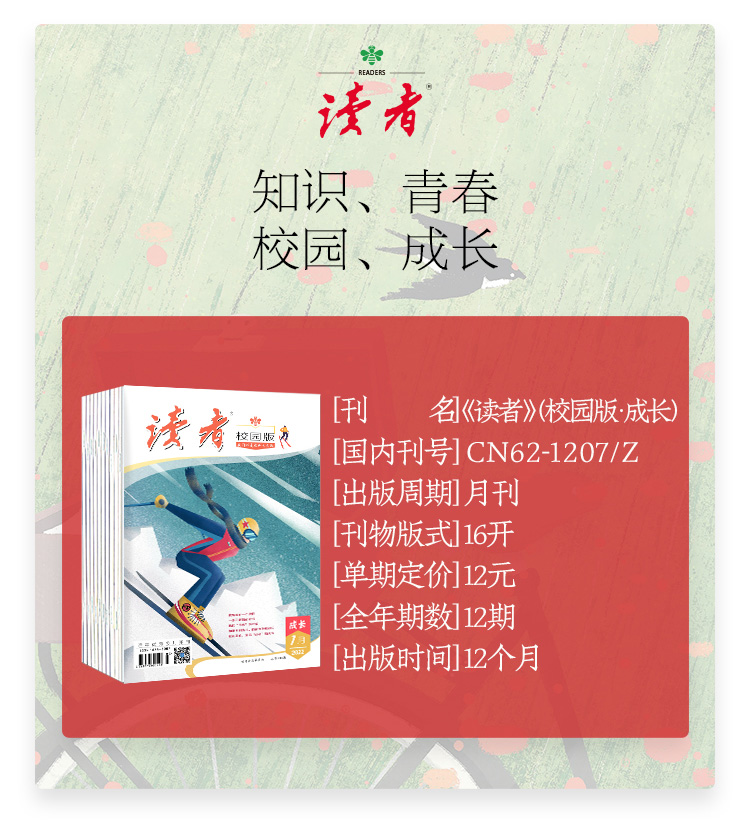 【赠3本过刊】《读者》(校园版•成长)2026年1月-12月//2025年12月-2026年11月 全年刊,共12期(月发1次)每次1本