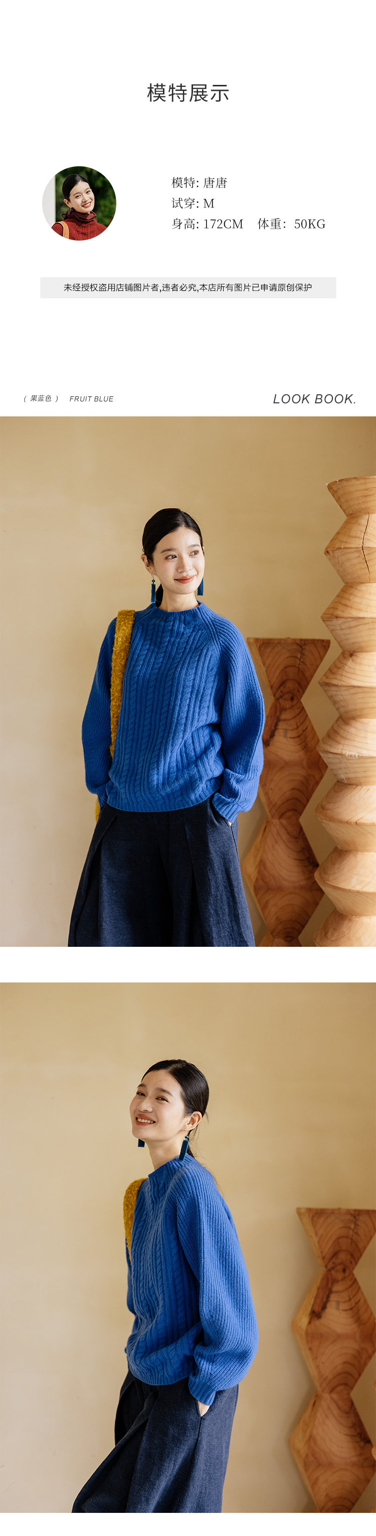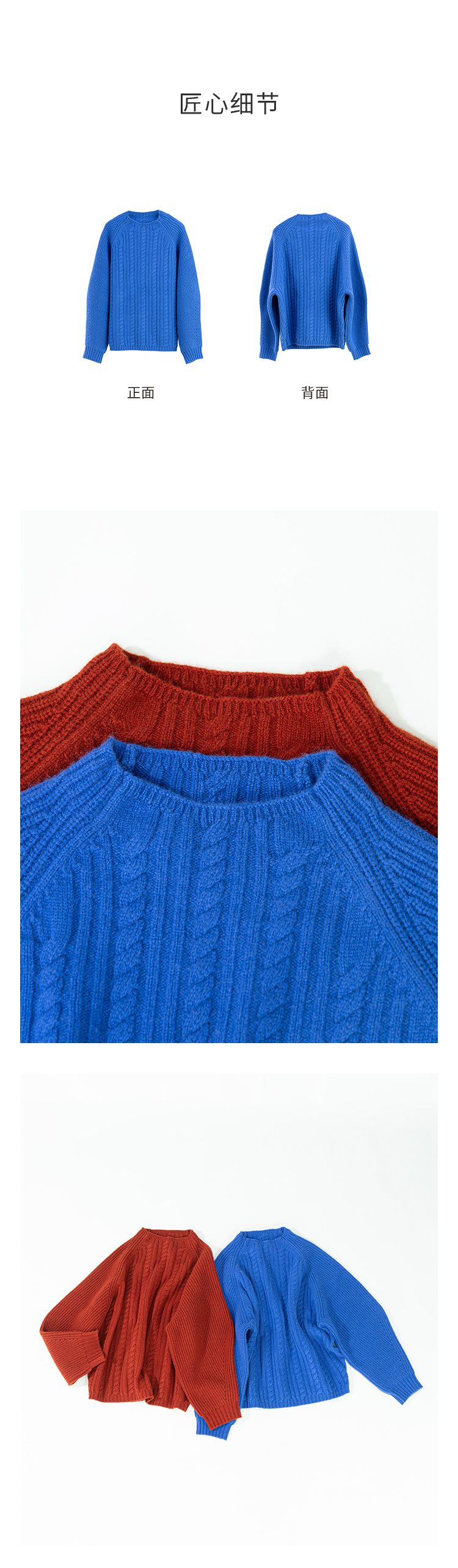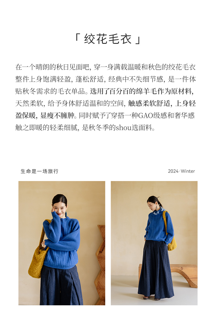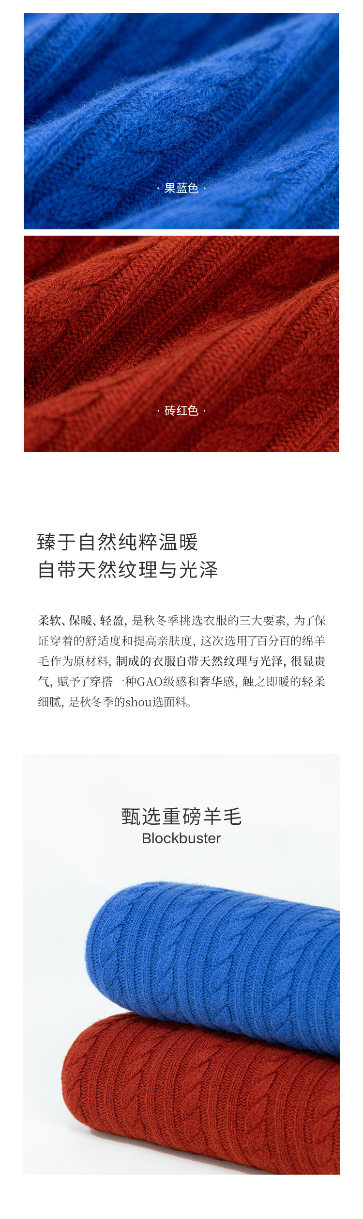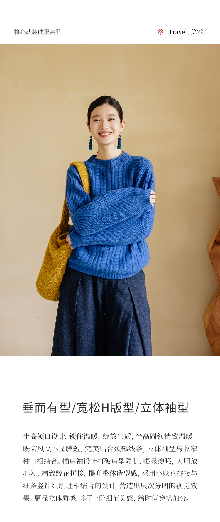 绽放旅行女装807朵/绞花毛衣秋冬*绵羊毛*绞花拼接套头毛衫