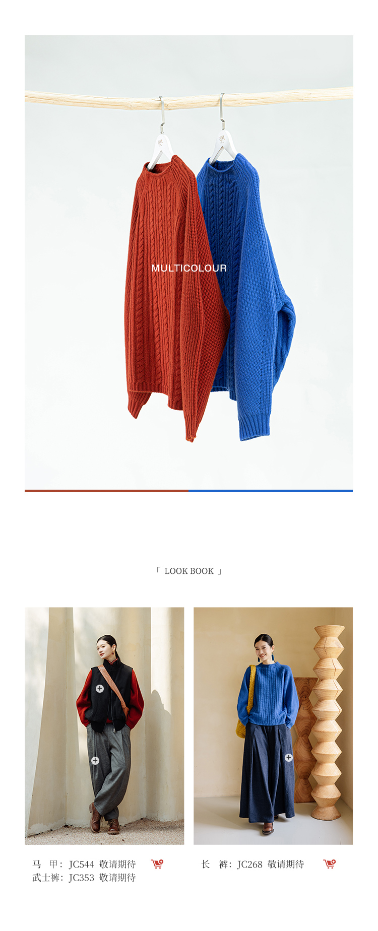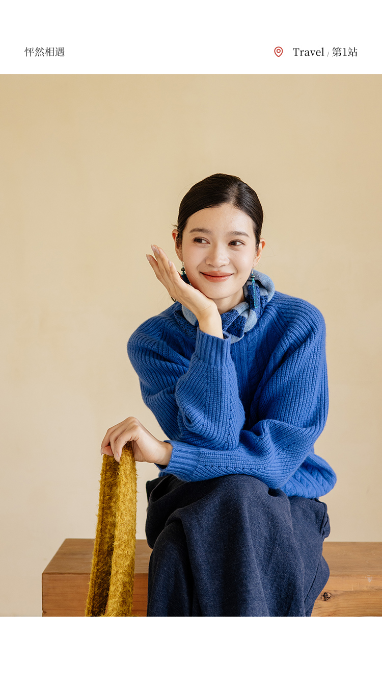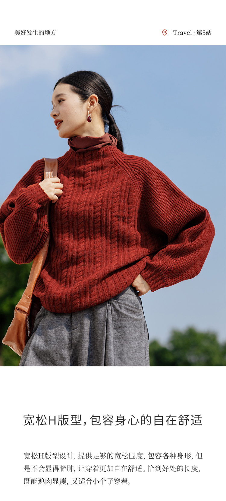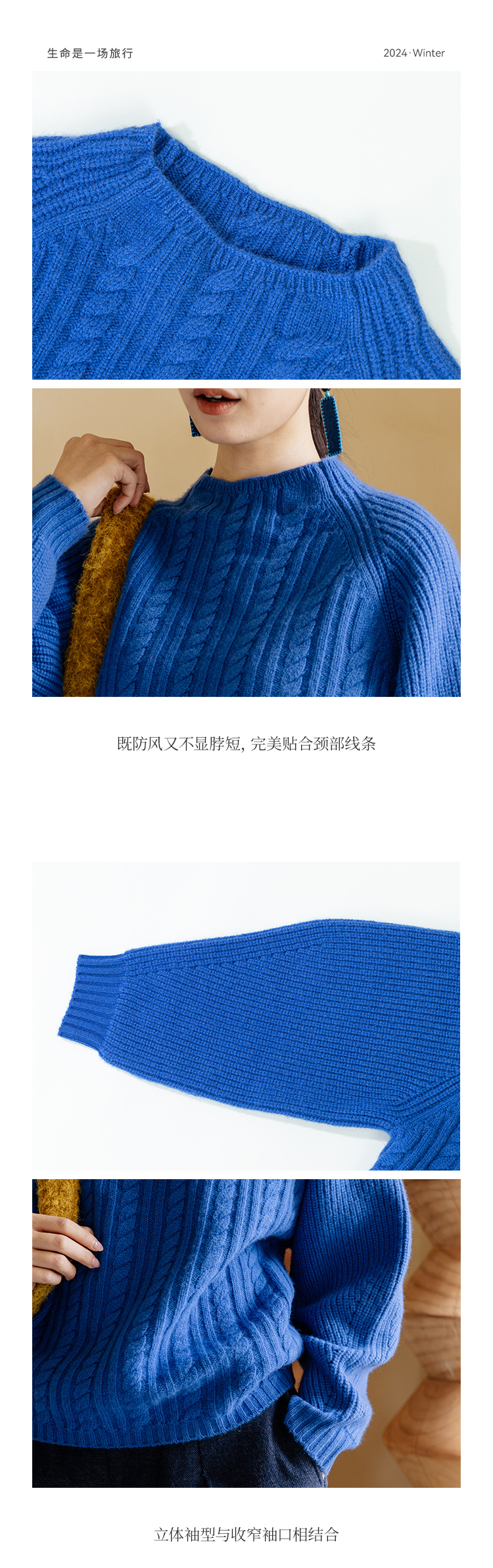 绽放旅行女装807朵/绞花毛衣秋冬*绵羊毛*绞花拼接套头毛衫