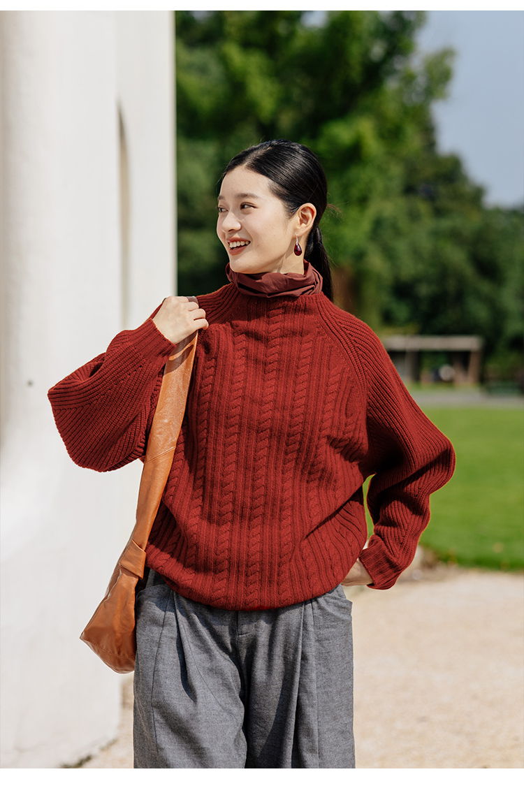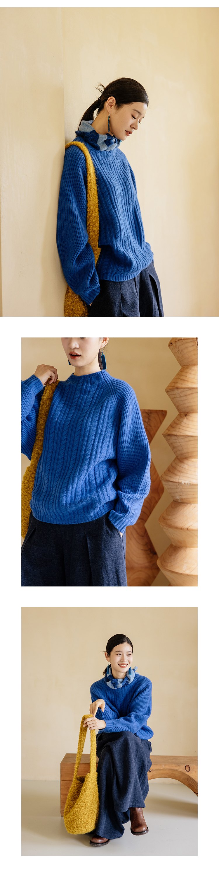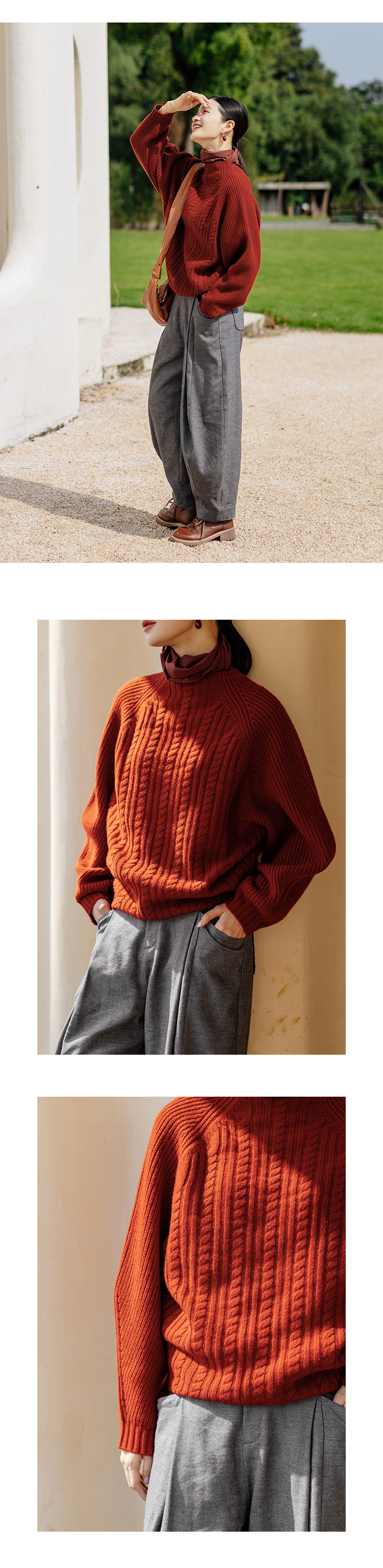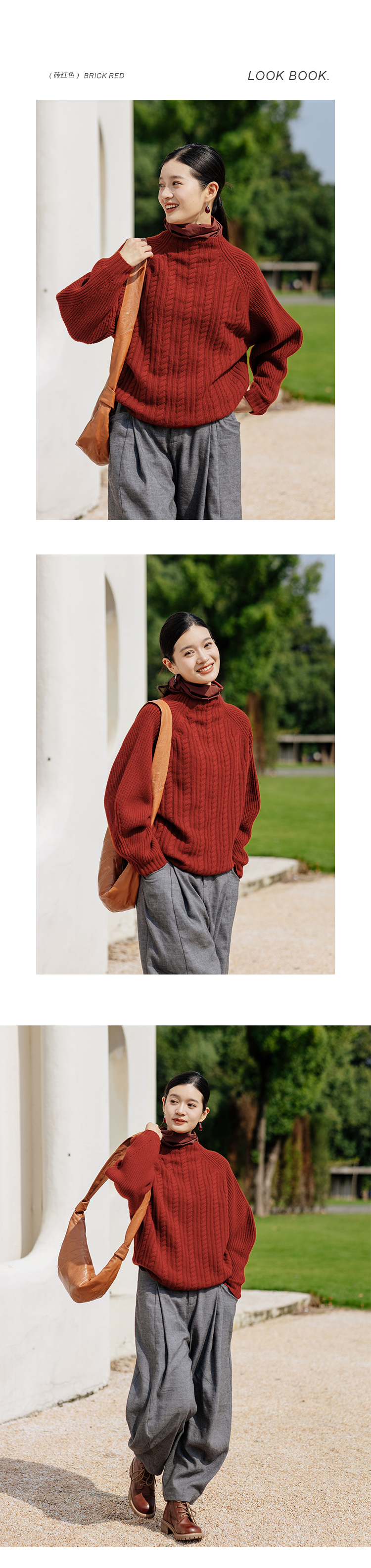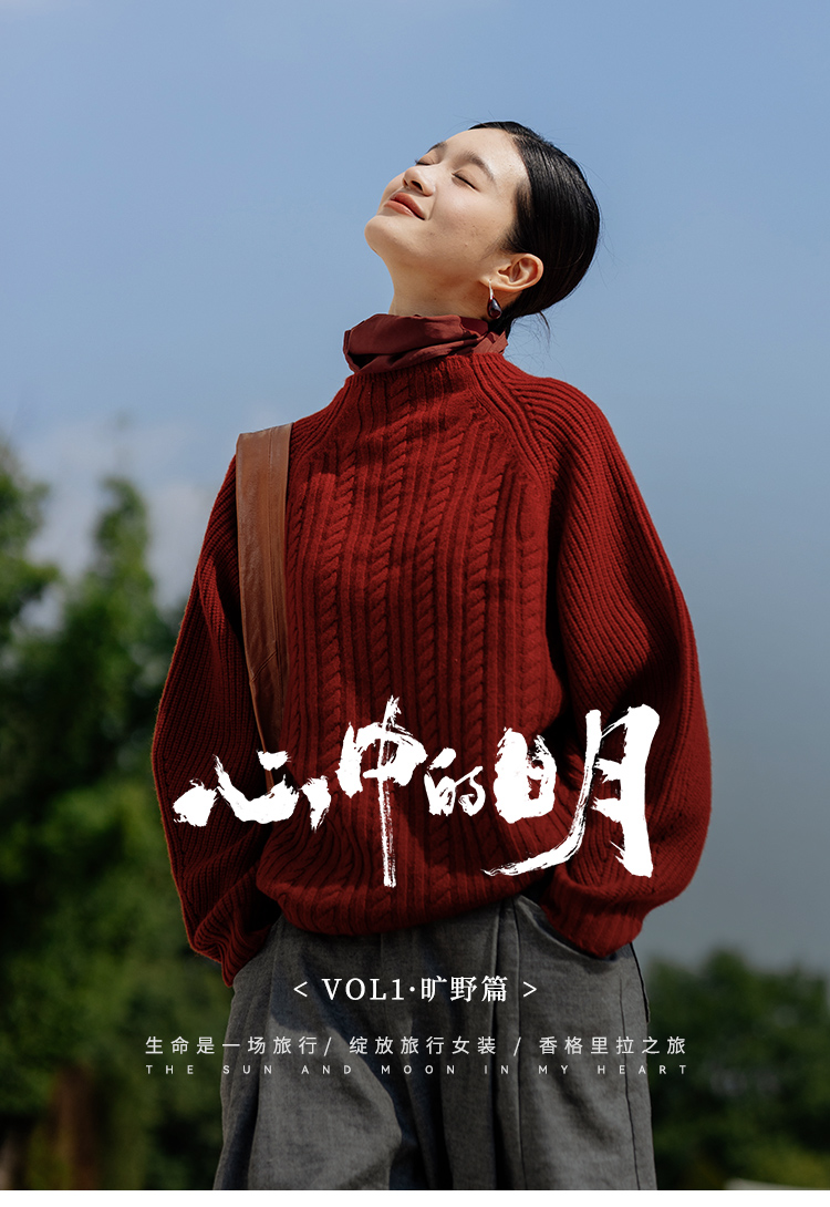 绽放旅行女装807朵/绞花毛衣秋冬*绵羊毛*绞花拼接套头毛衫