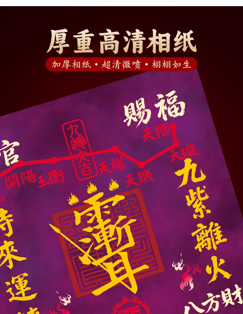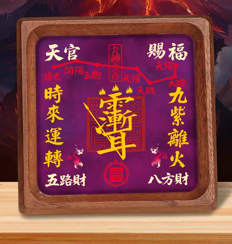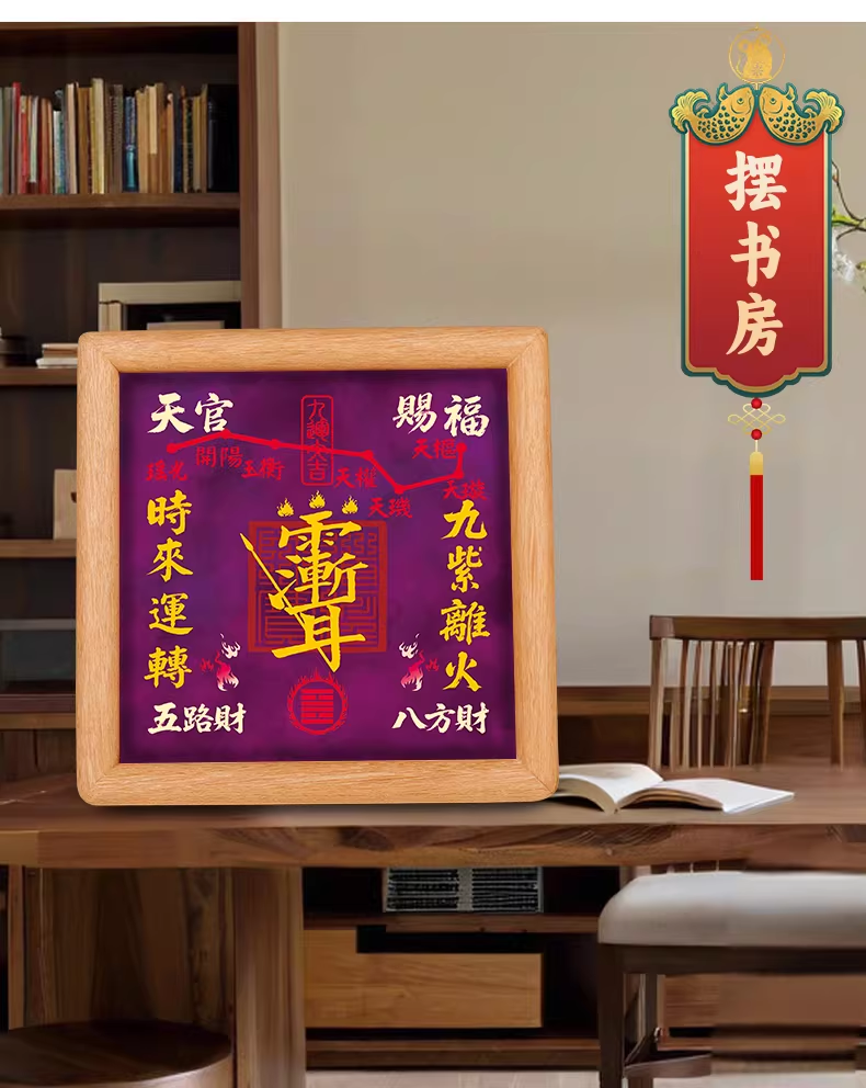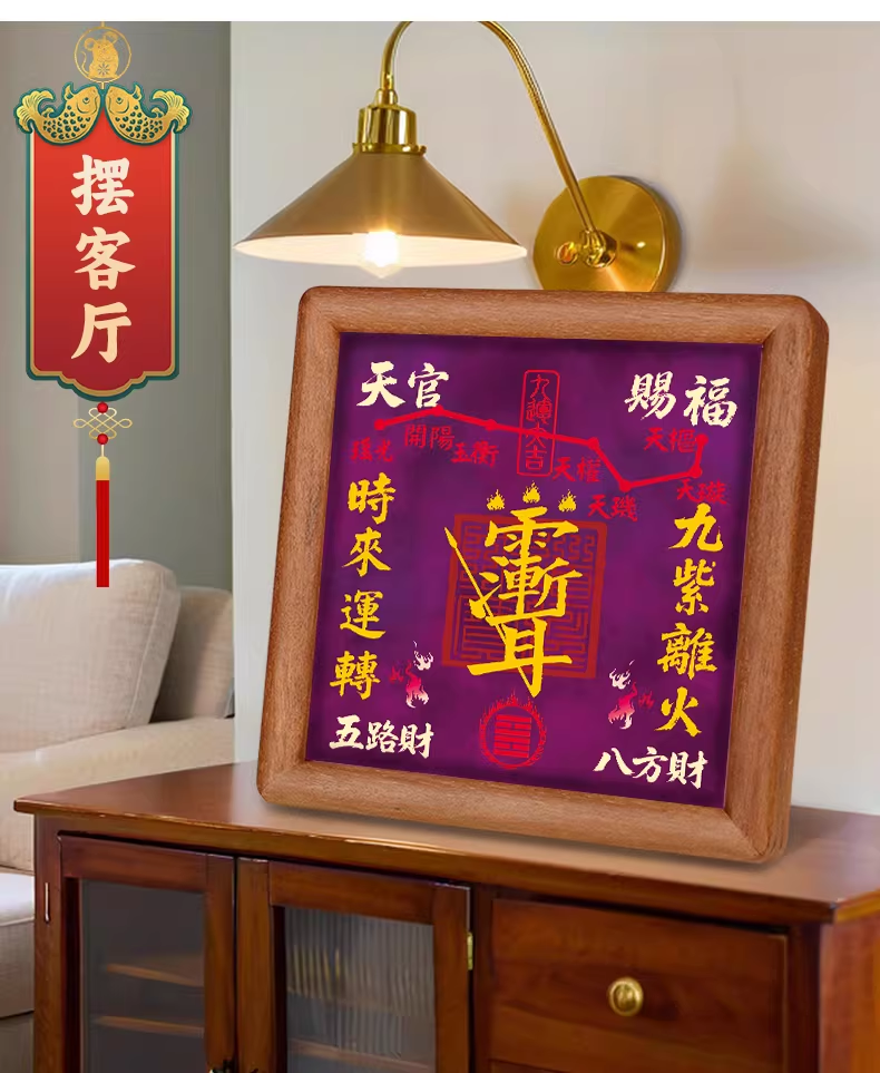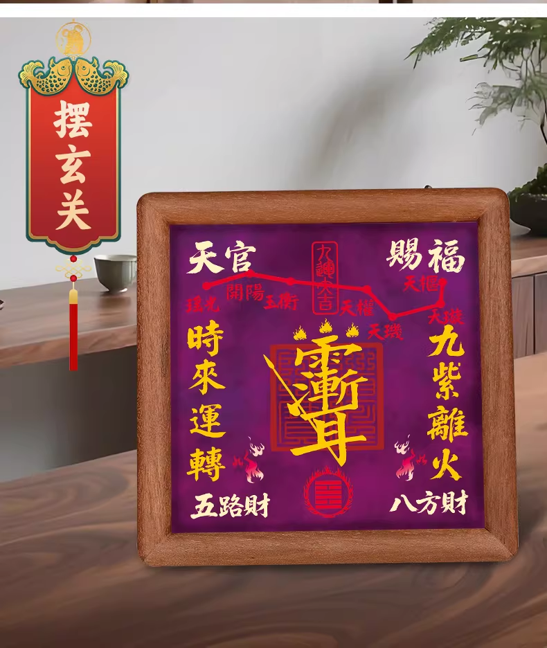 九紫离火紫微讳相框摆件,天官赐福,五路八方财