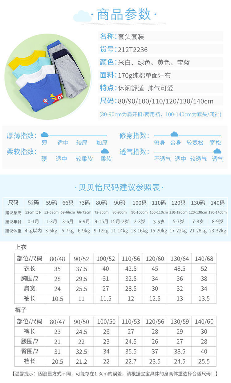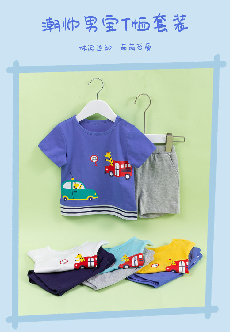 贝贝怡宝宝夏装男童短袖套装纯棉婴儿衣服儿童夏季两件套212T2236