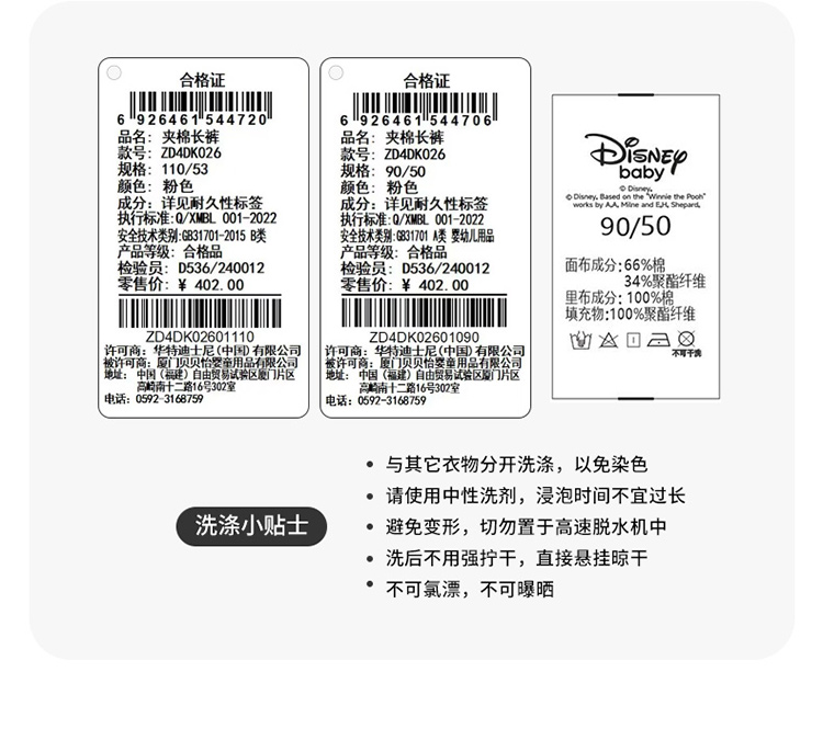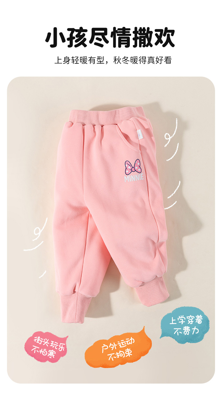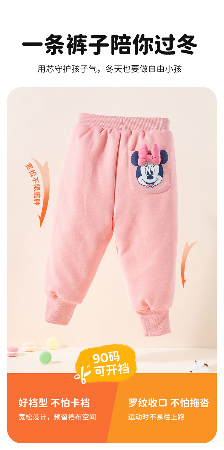 迪士尼【加厚保暖棉裤】冬装新款女童装婴幼宝宝松紧腰长裤儿童束脚裤子ZD4DK026