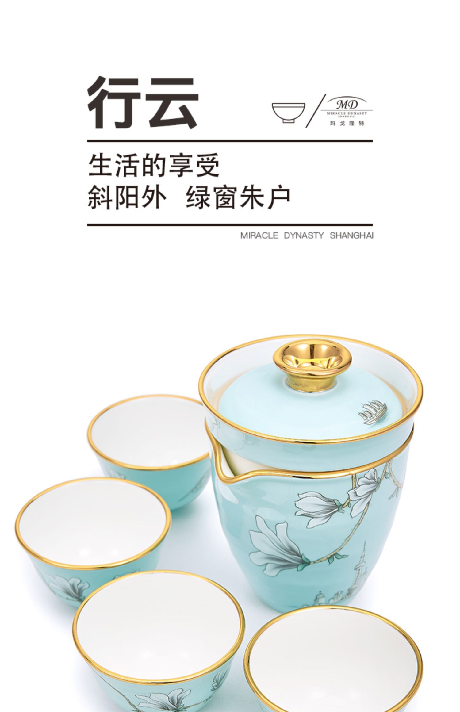 【6F】玛戈隆特 行云系列7头旅行茶具 四人份便携茶具 家用茶具套装