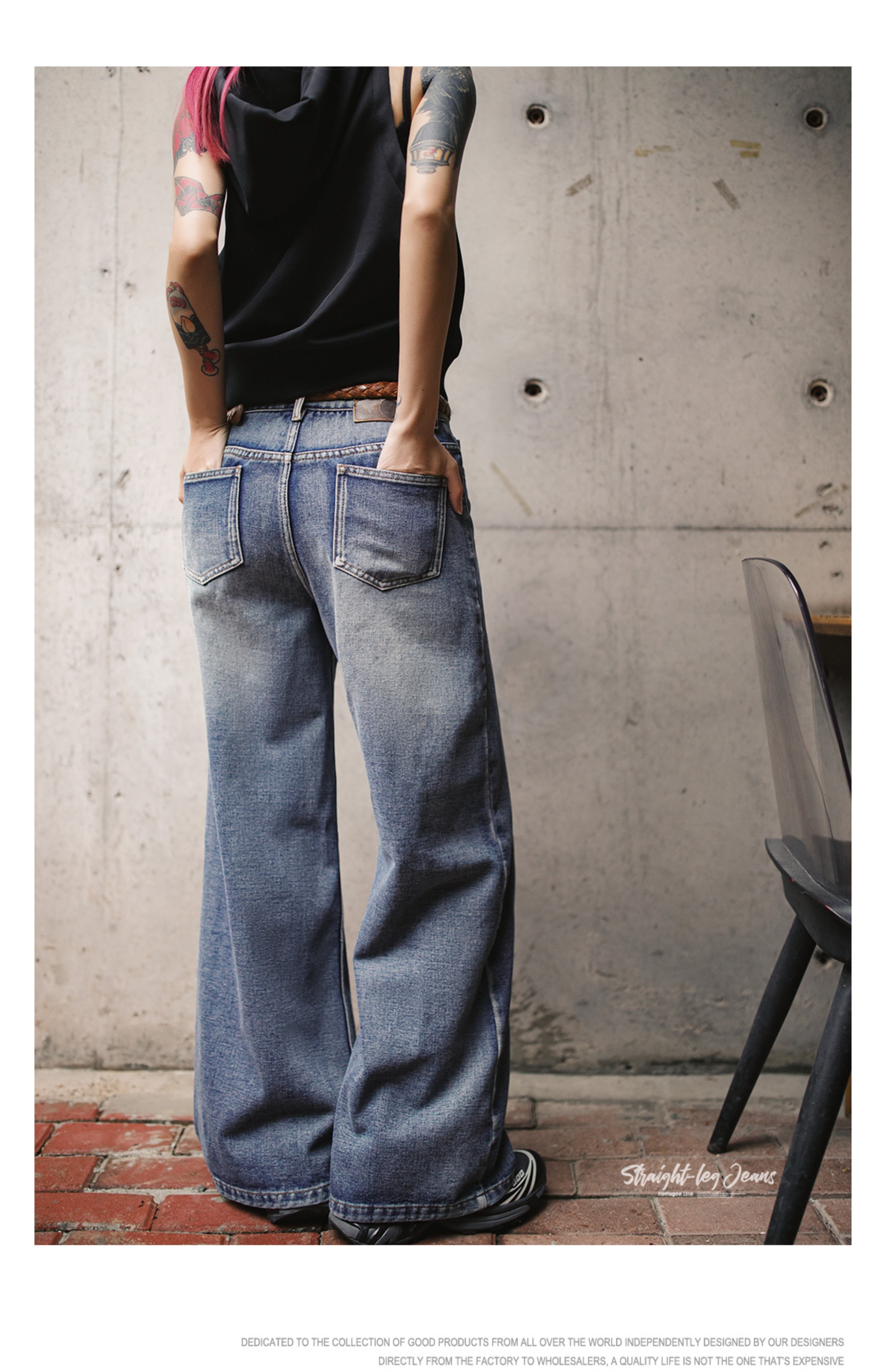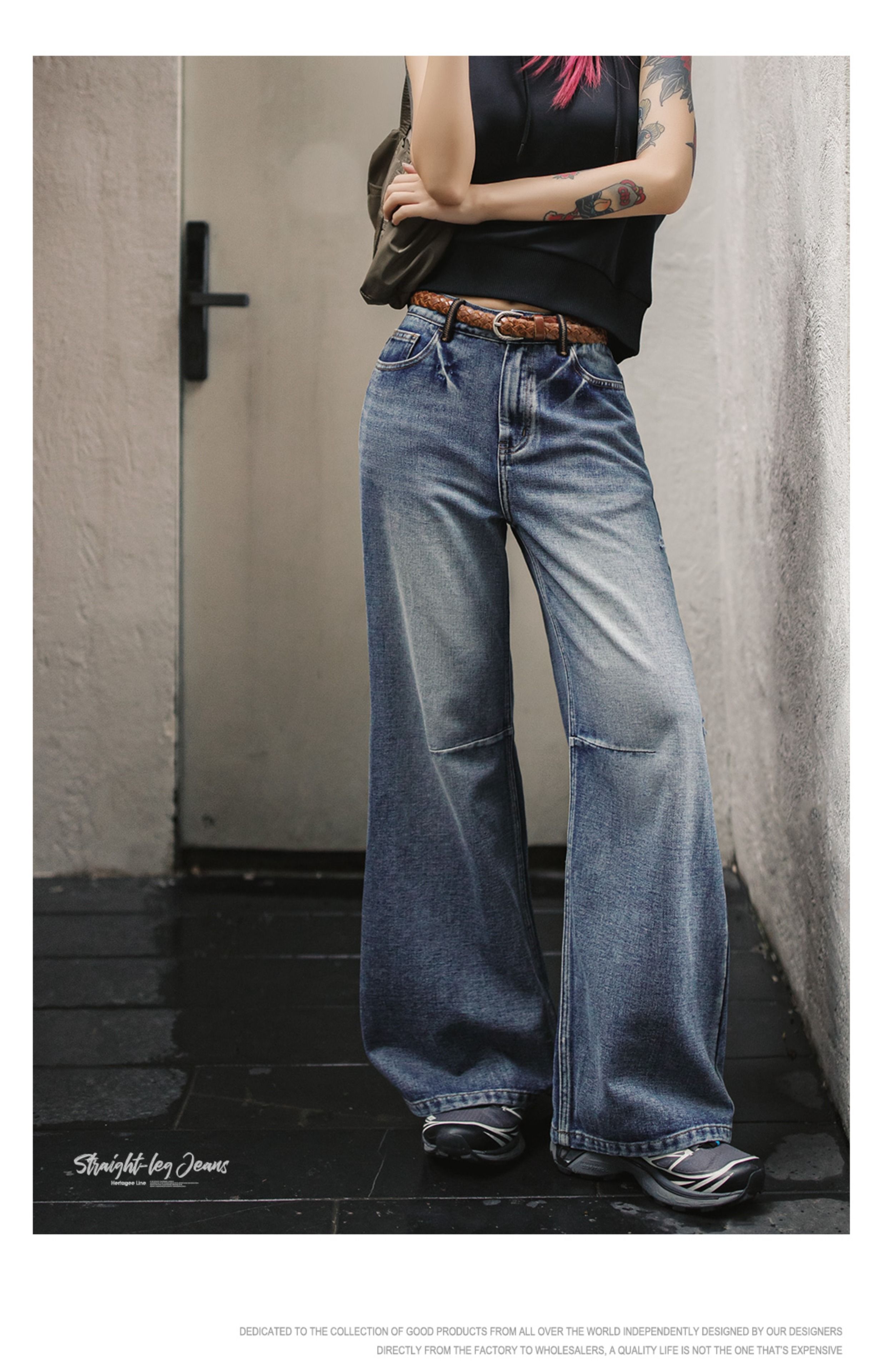 马登cleanfit重洗水破洞牛仔裤工装折痕直筒裤遮胯拖地长裤春秋女