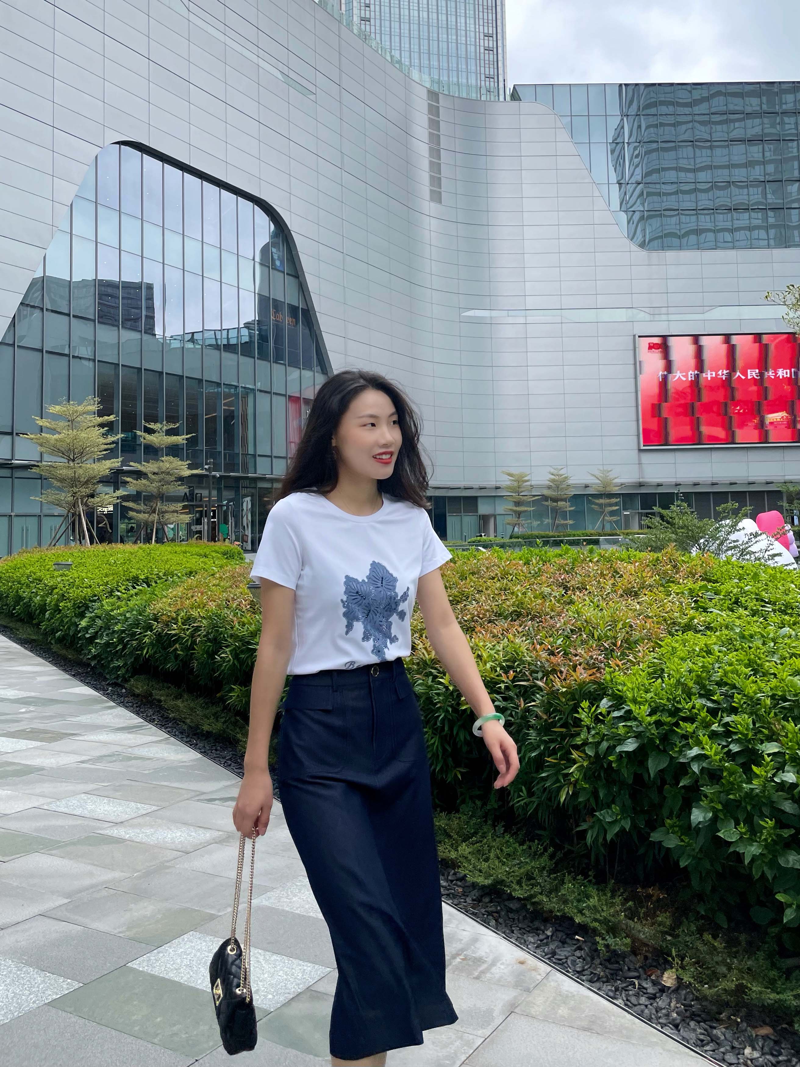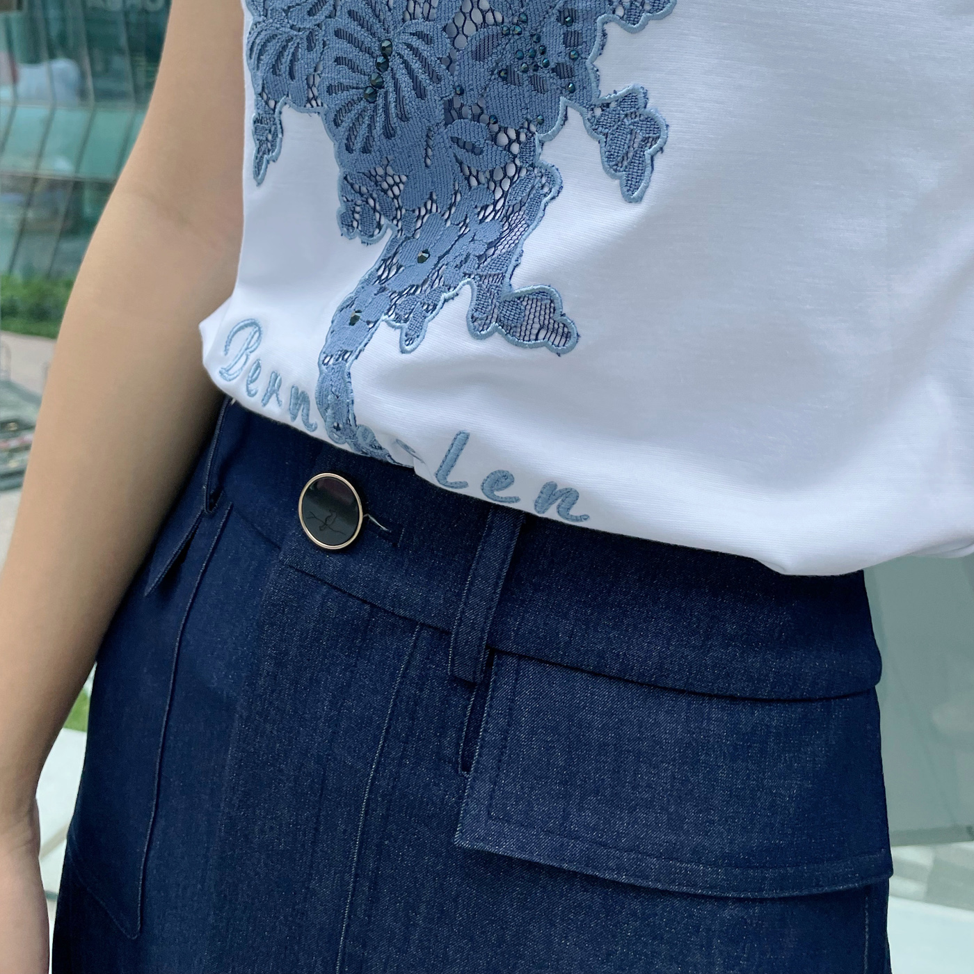 HJ2T39_漆黑色_T恤_夏季_圆领短袖网纱透视蝴蝶刺绣口袋显瘦百搭通勤上衣_高级女装_BERNIEELEN 伯妮斯茵