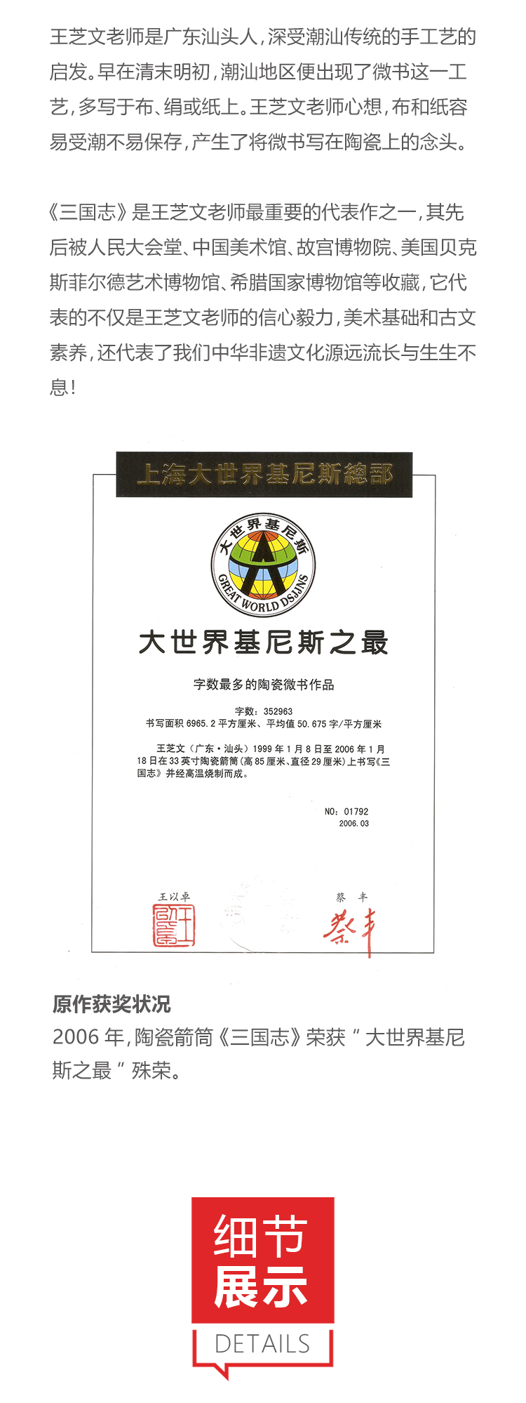 “中国工艺美术大师” 王芝文 亲笔签名藏品票 -- 三国志