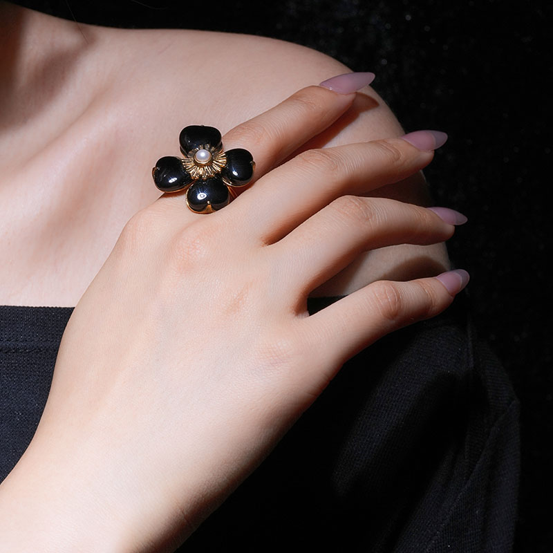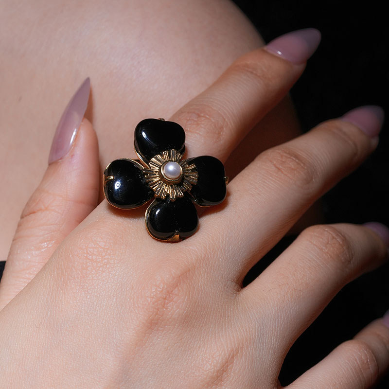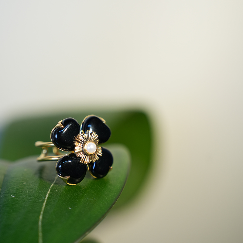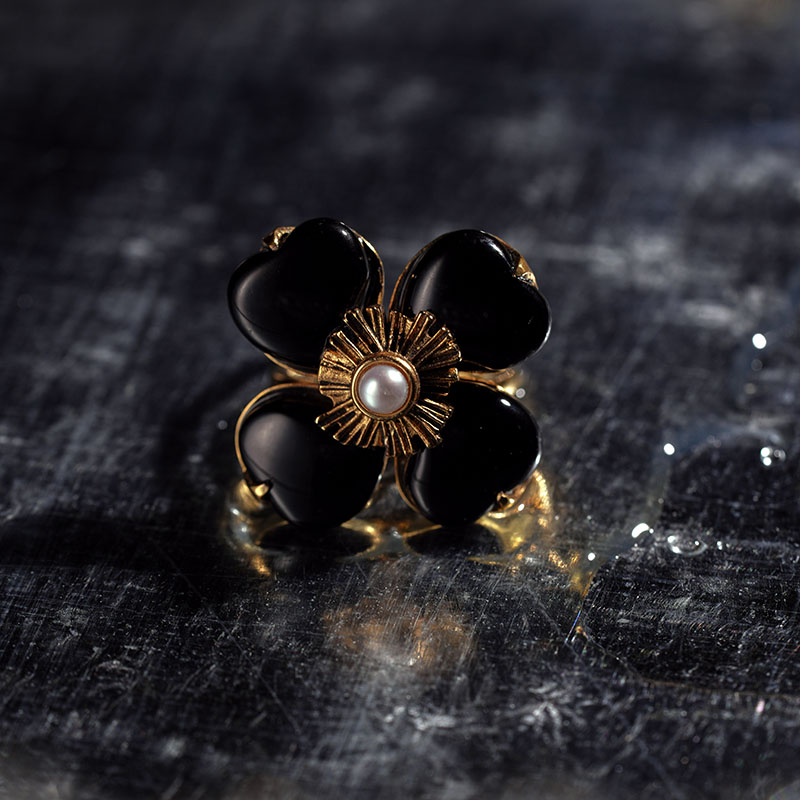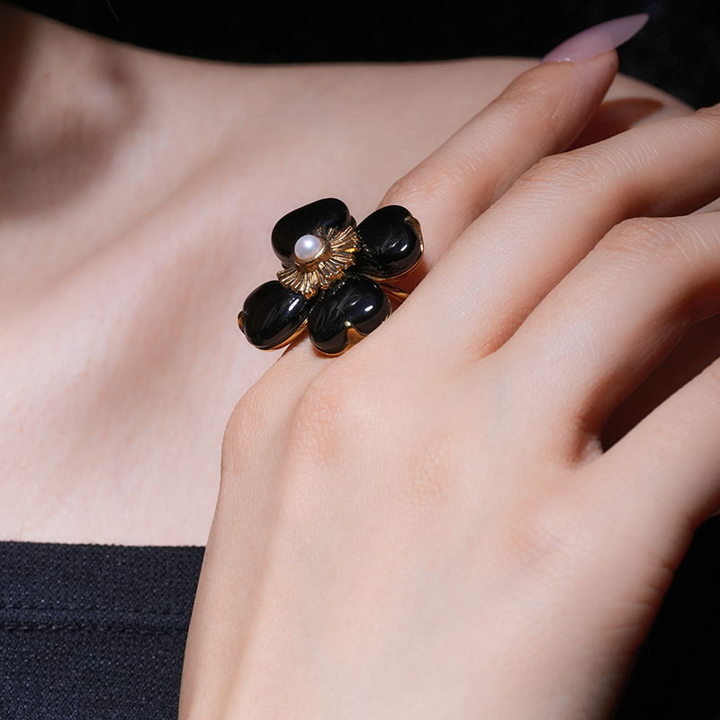 北京仓|Goossens Paris-Trefle-天然黑色玛瑙 珍珠 戒指[法国设计师]