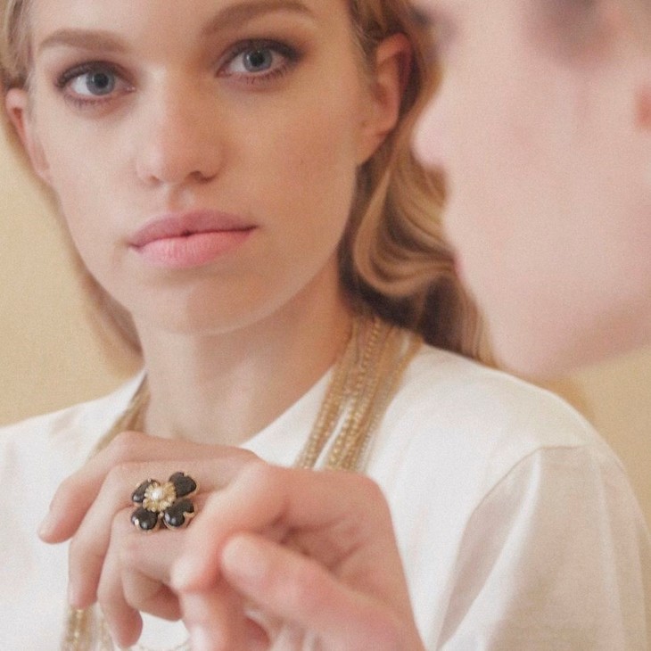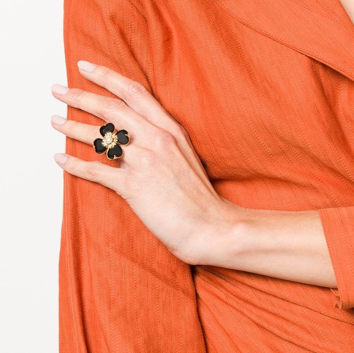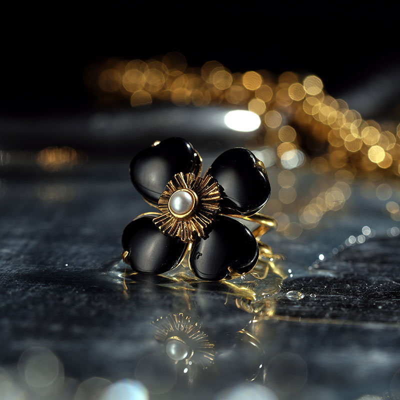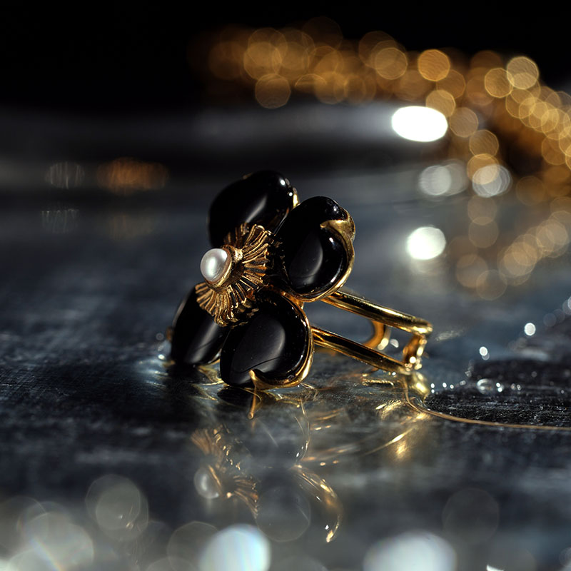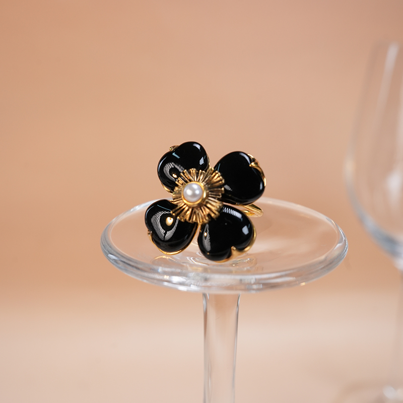 北京仓|Goossens Paris-Trefle-天然黑色玛瑙 珍珠 戒指[法国设计师]