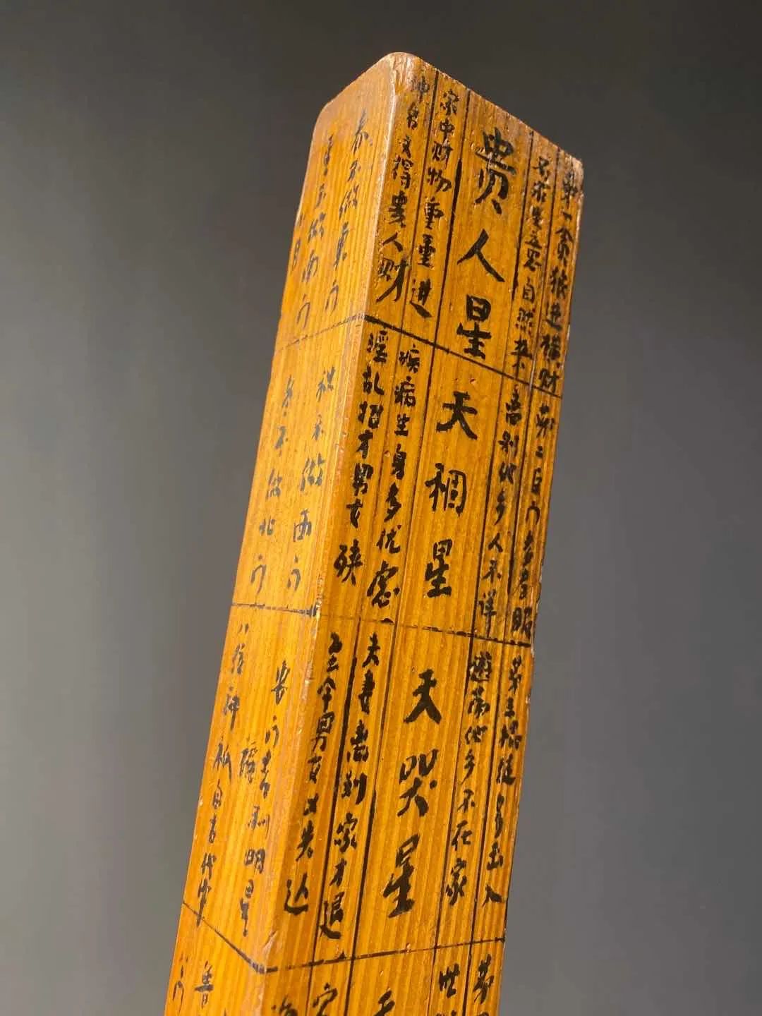 此杉木老鲁班尺除如图所示之磨损痕与磕碰伤外,基本保存完好。