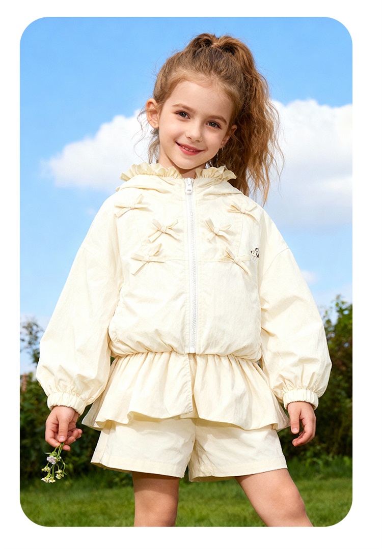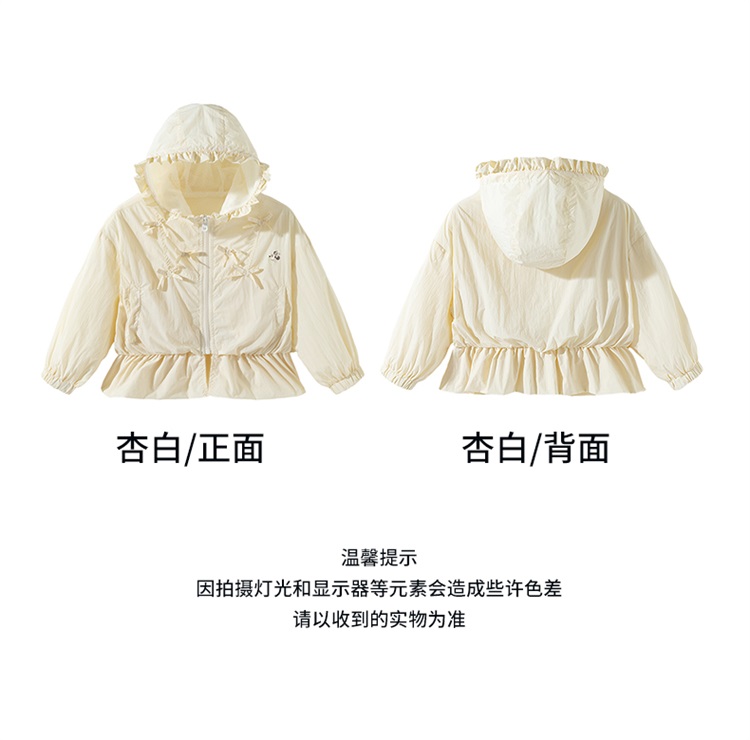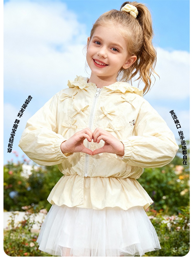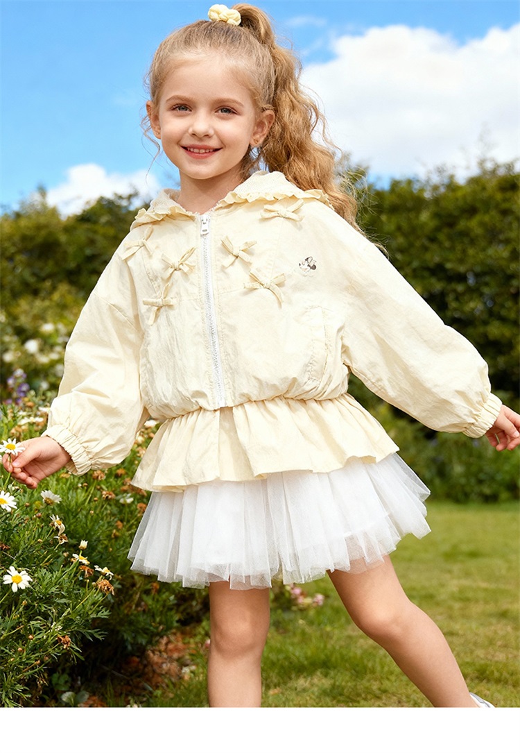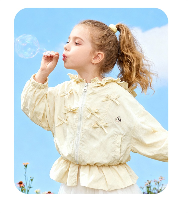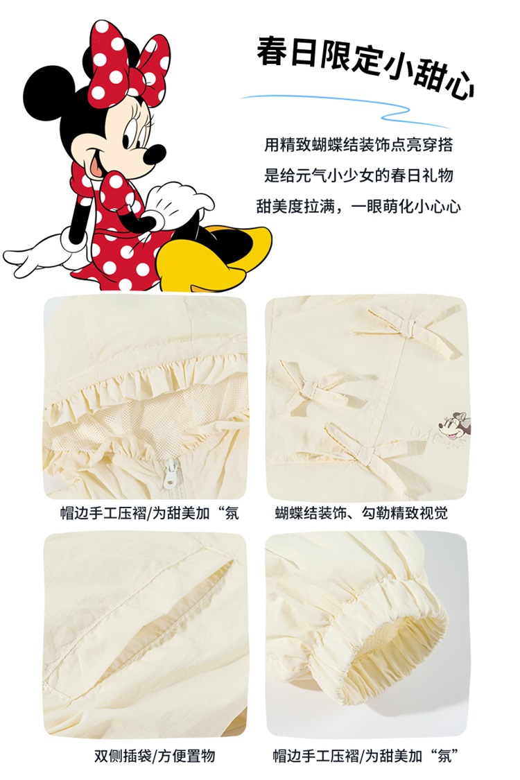 迪士尼(Disney)女童前开带帽外套甜美户外可爱蝴蝶结防晒花边2026春季新款上衣ZD1FS029
