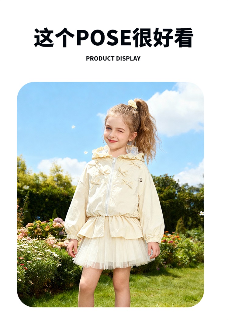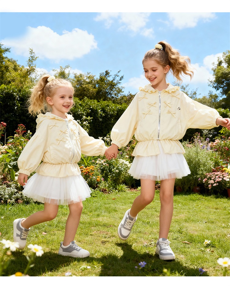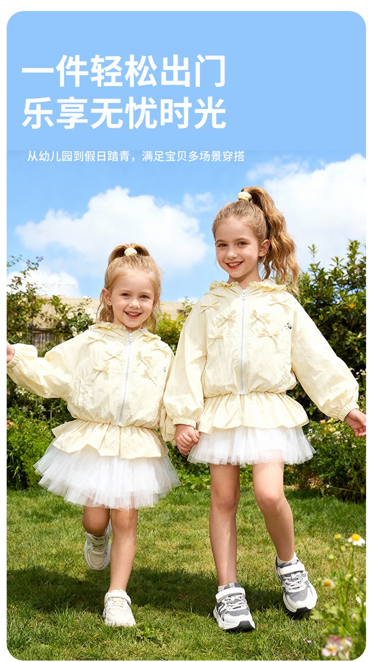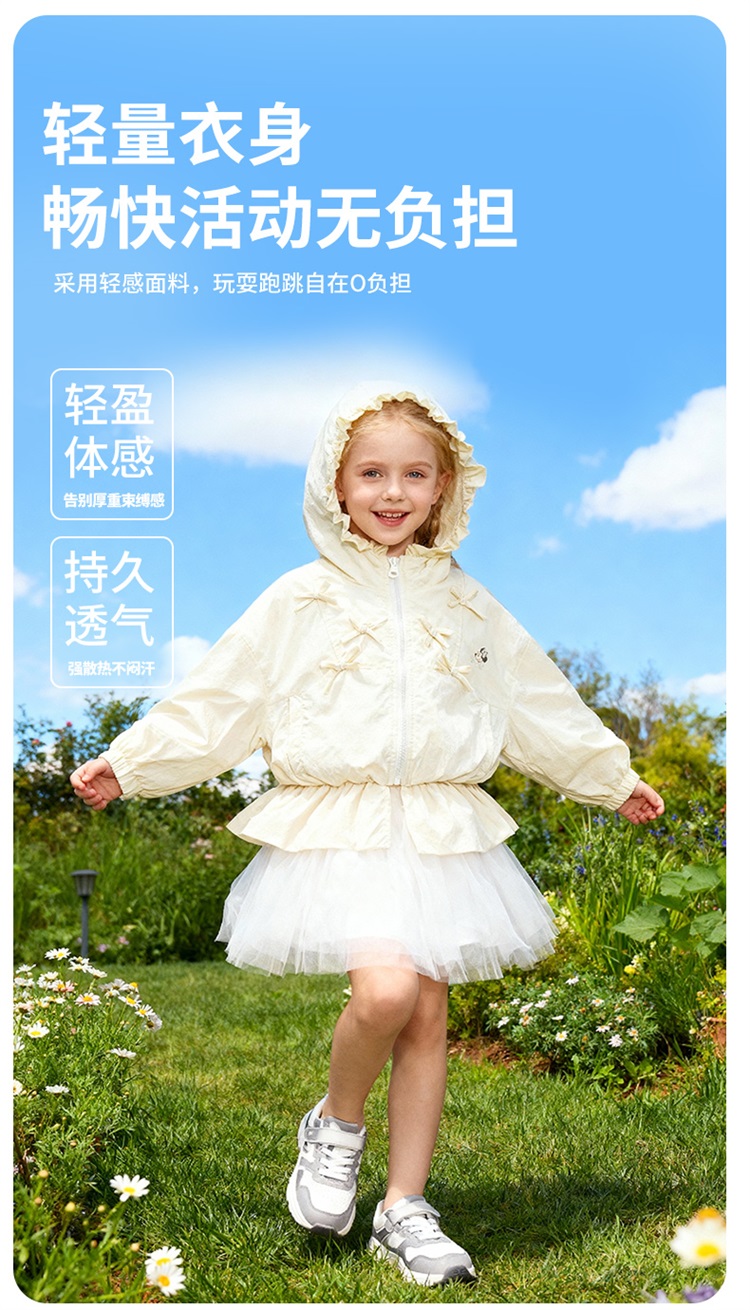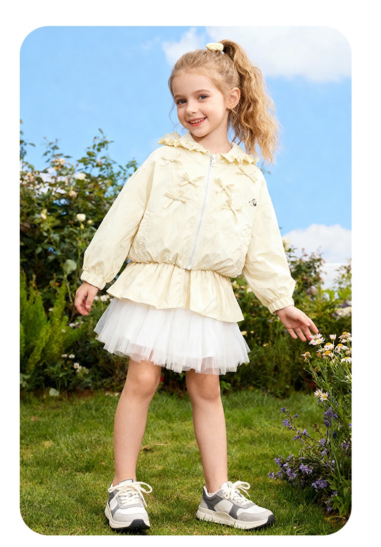 迪士尼(Disney)女童前开带帽外套甜美户外可爱蝴蝶结防晒花边2026春季新款上衣ZD1FS029