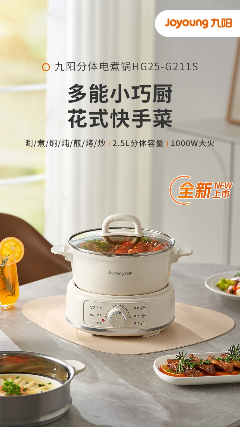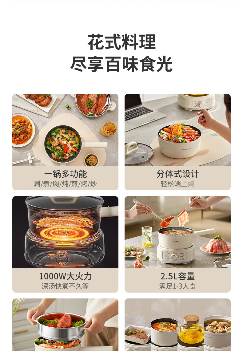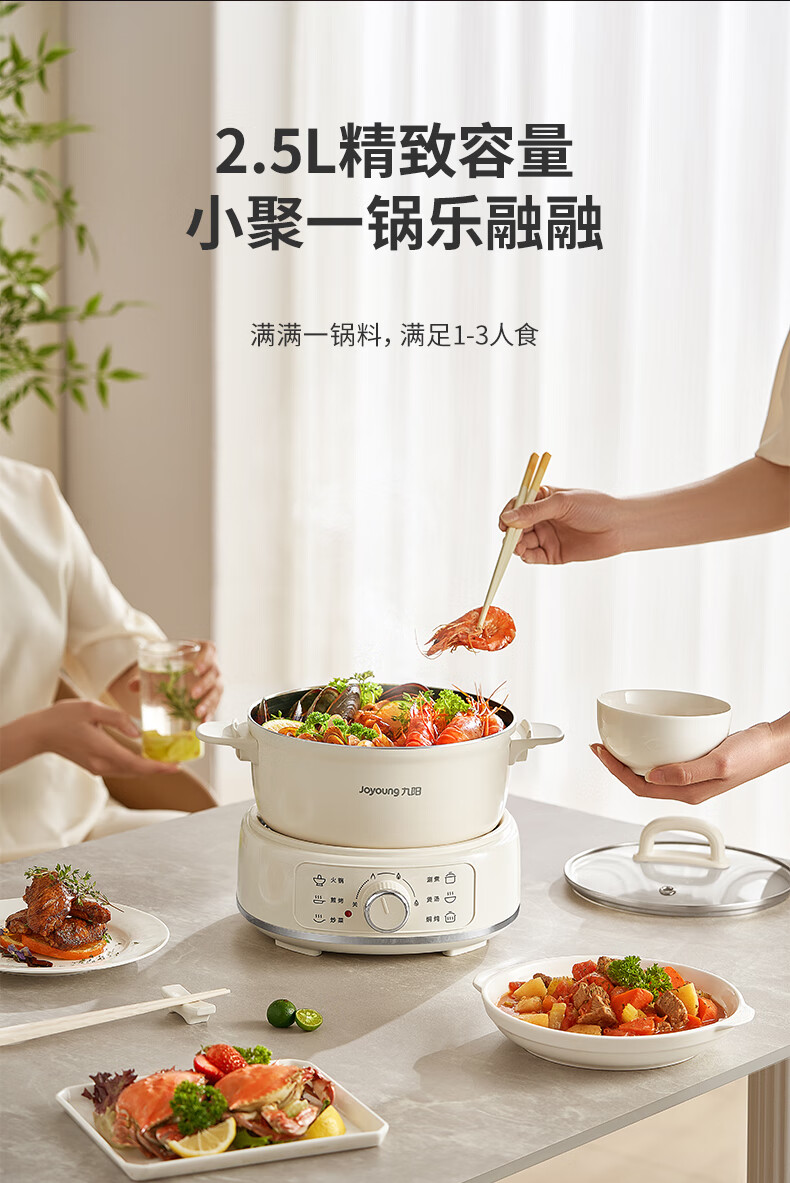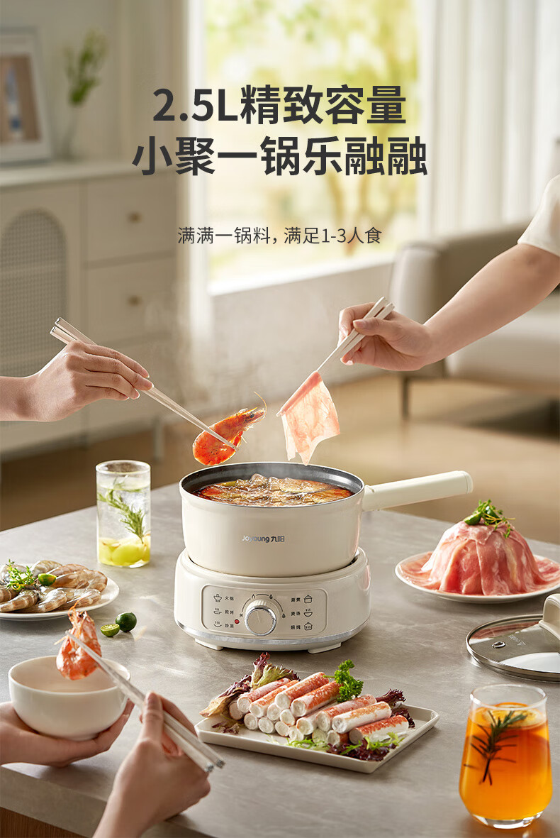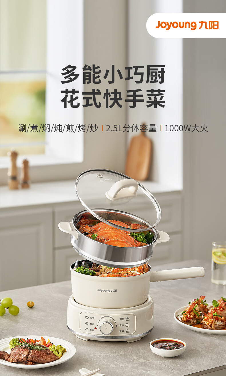 九阳2.5L电煮锅分体式电炒锅多功能电热火锅泡面锅宿舍学生煮面锅