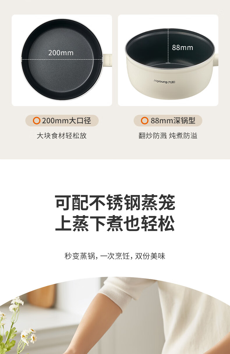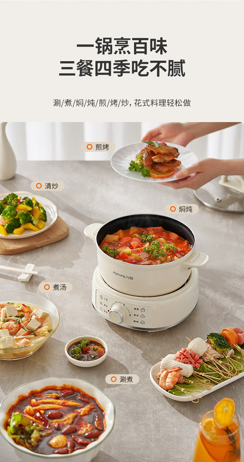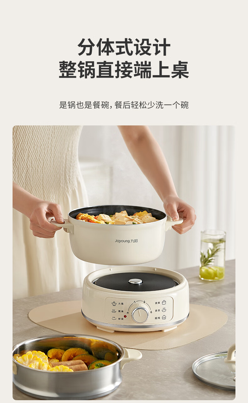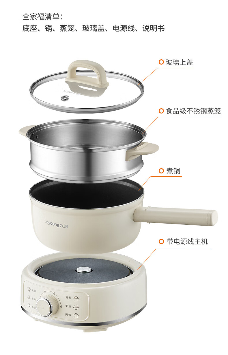 九阳2.5L电煮锅分体式电炒锅多功能电热火锅泡面锅宿舍学生煮面锅