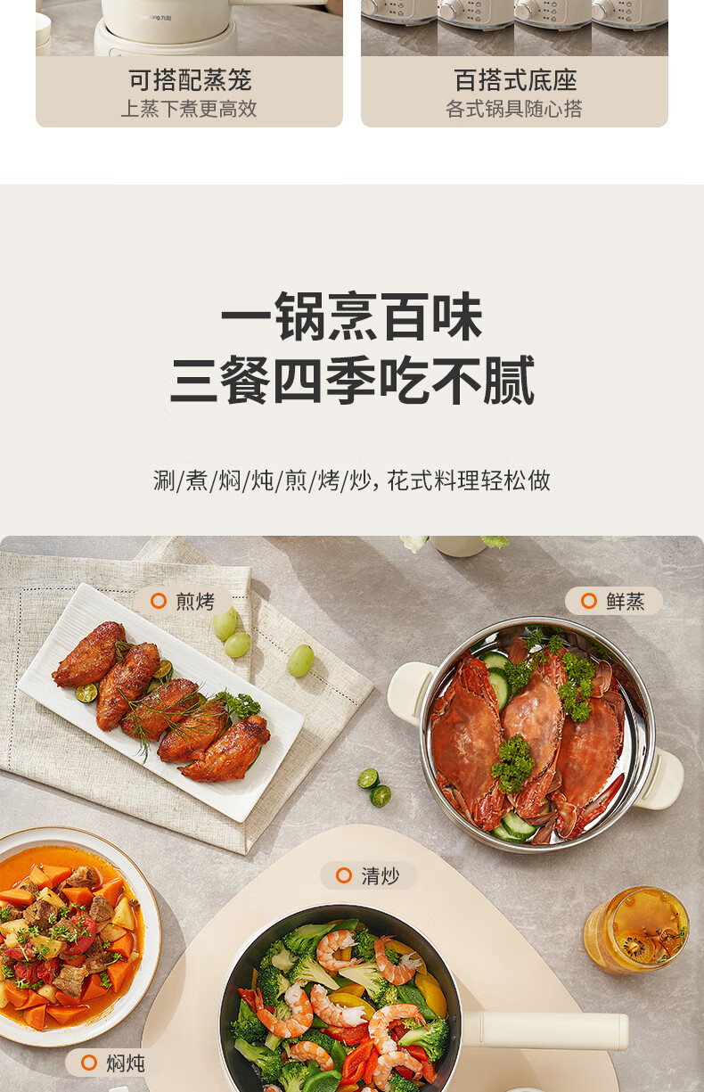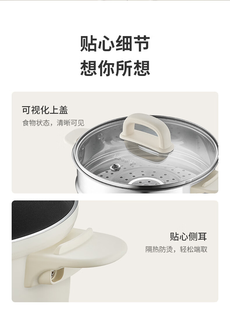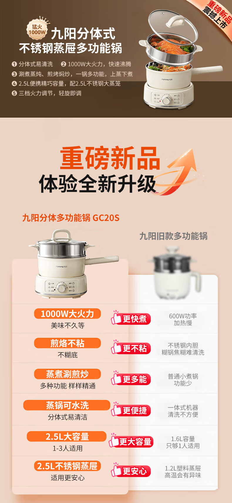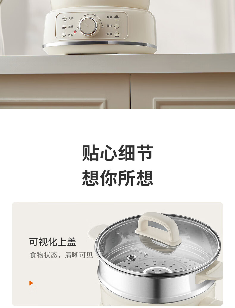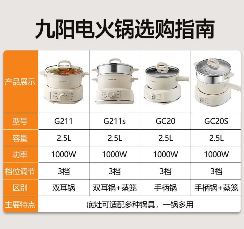 九阳2.5L电煮锅分体式电炒锅多功能电热火锅泡面锅宿舍学生煮面锅
