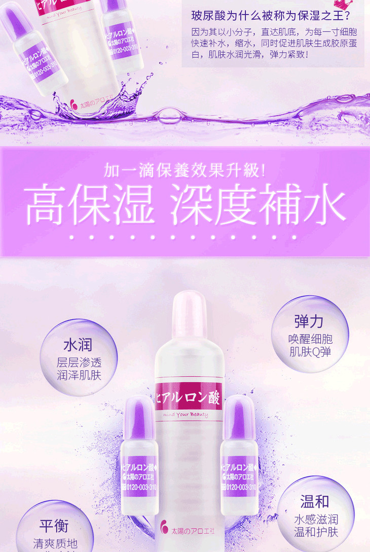 日本太阳社玻尿酸原液 透明质酸精华保湿套装 80ml+10ml*2/套