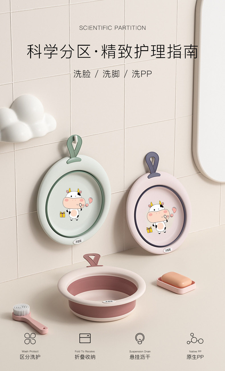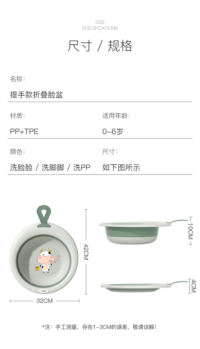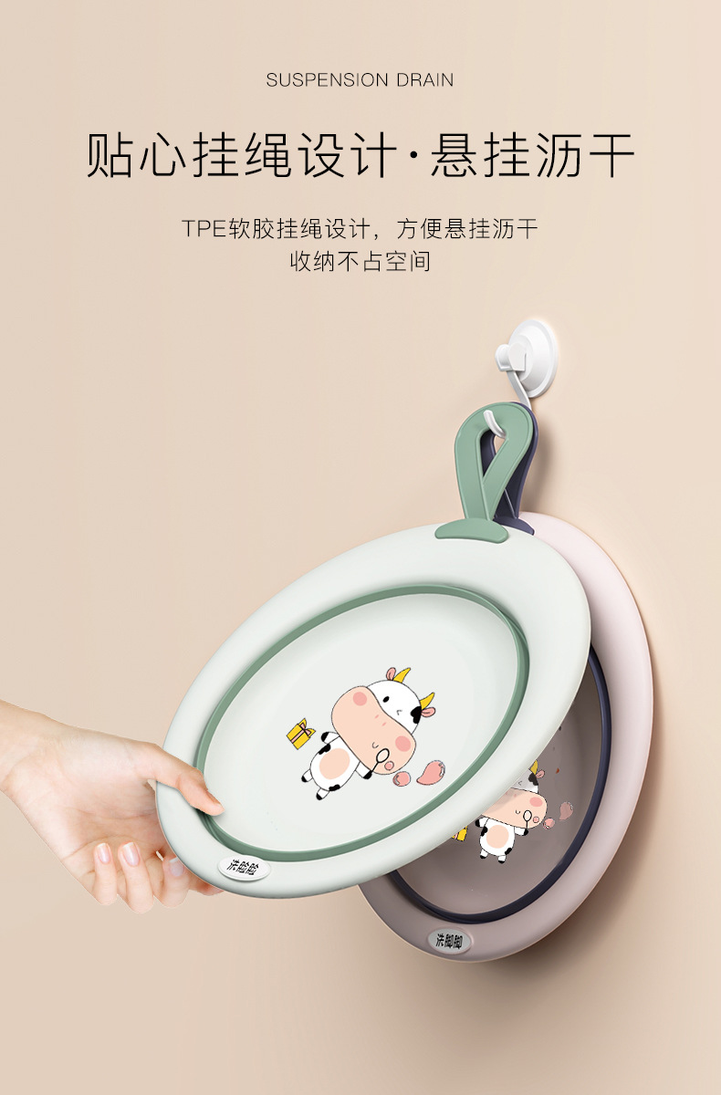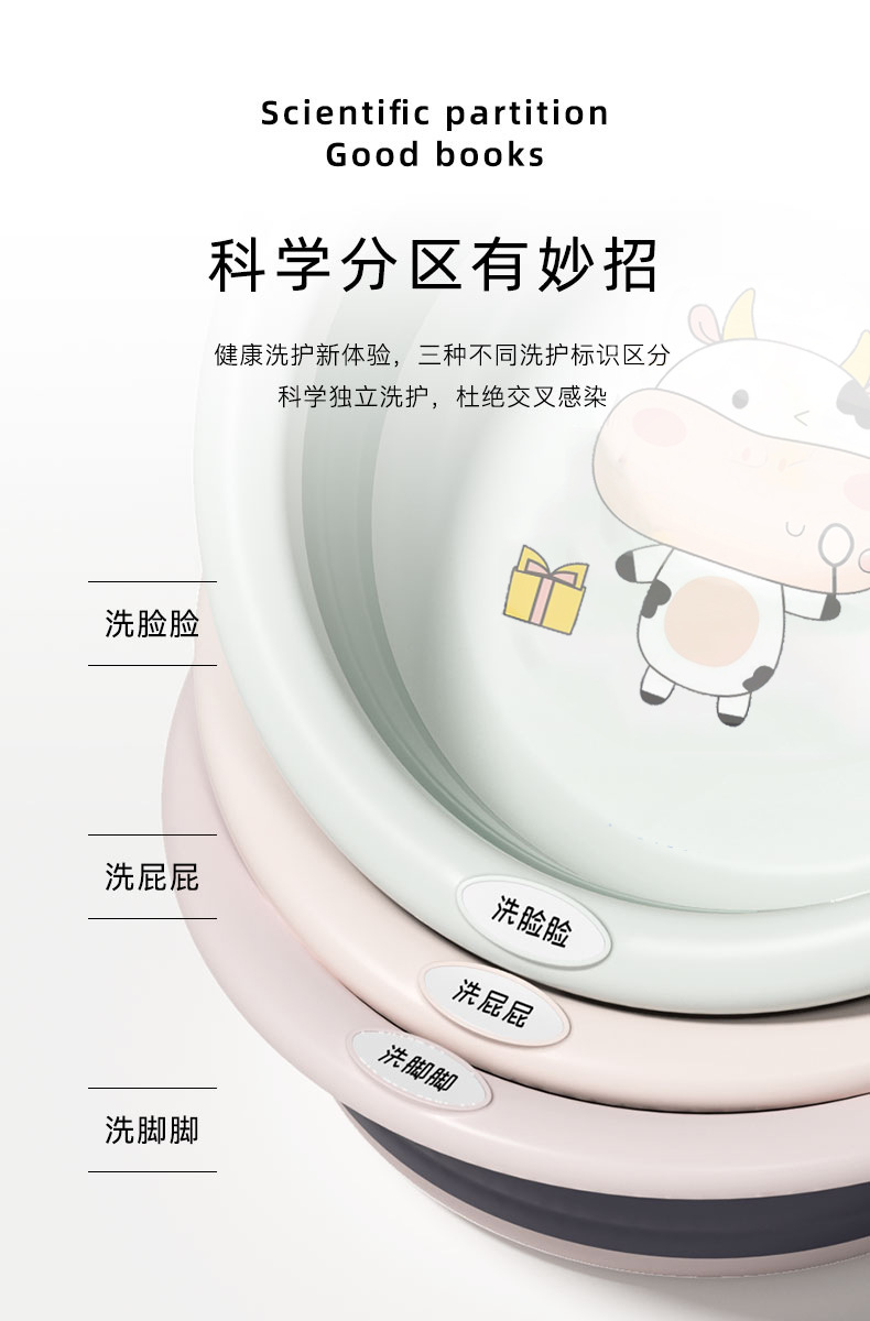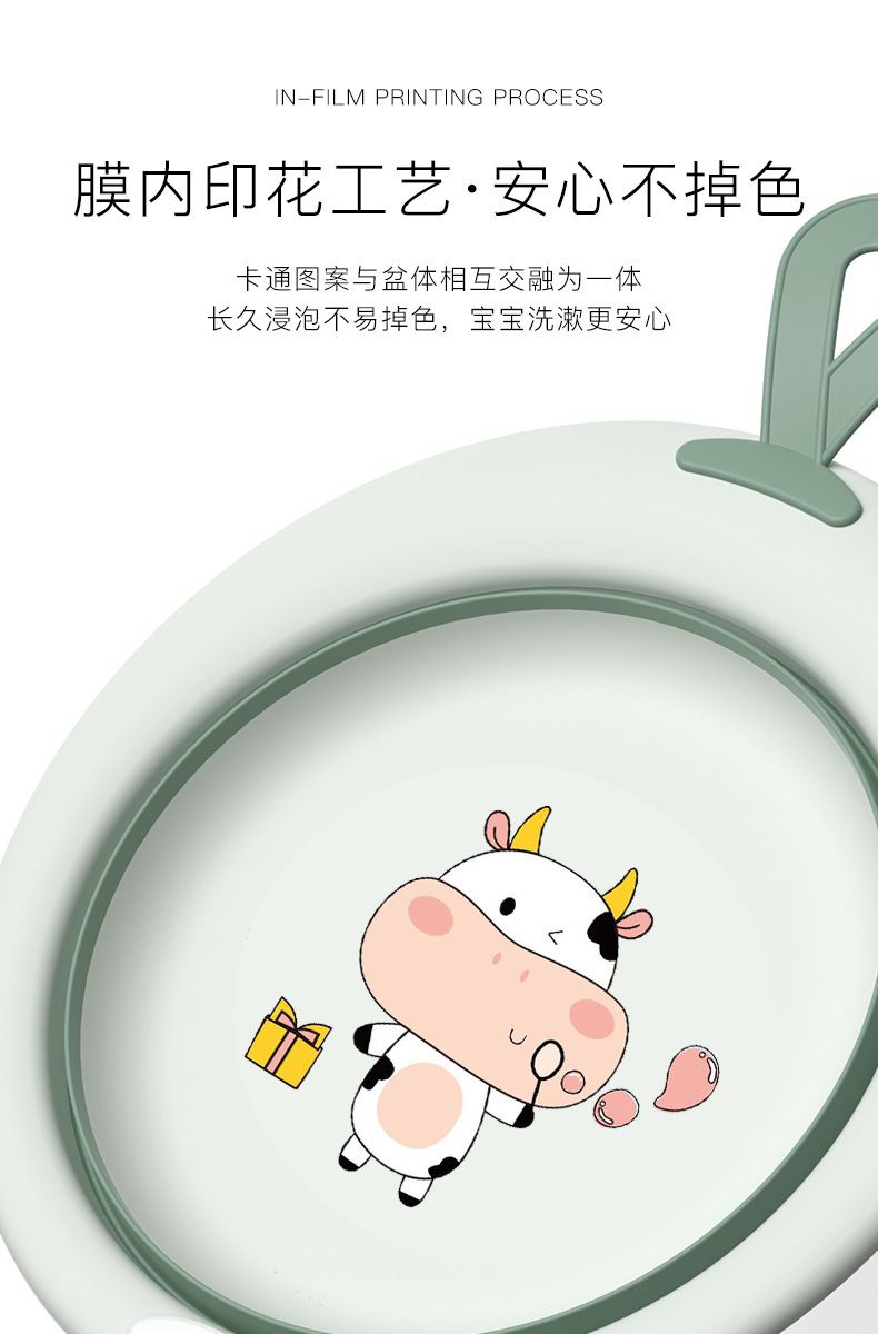 新生儿婴儿洗脸盆初生宝宝小盆洗脚洗pp盆儿童可折叠盆子奶牛脸盆