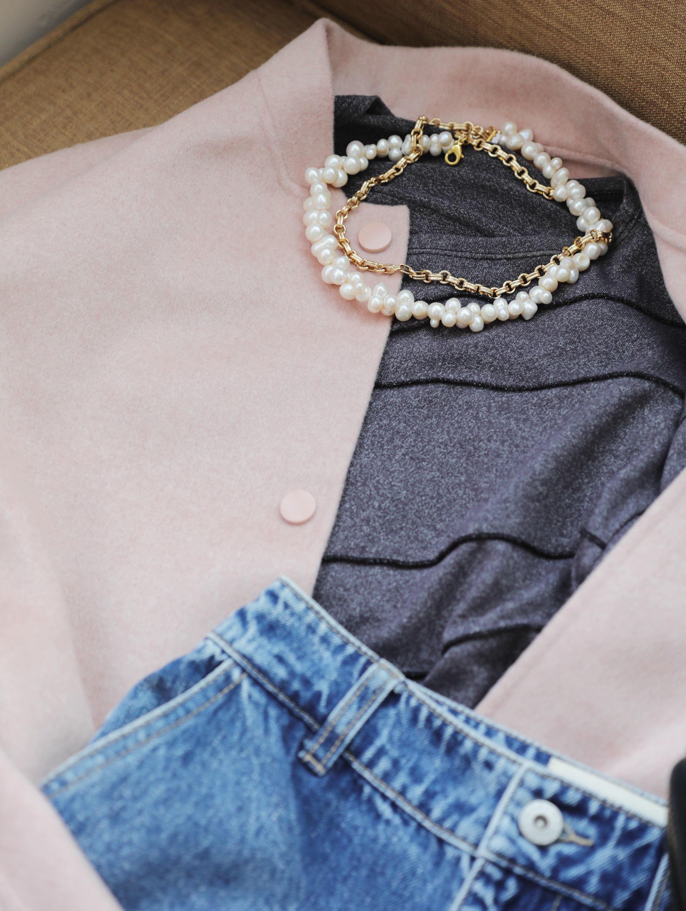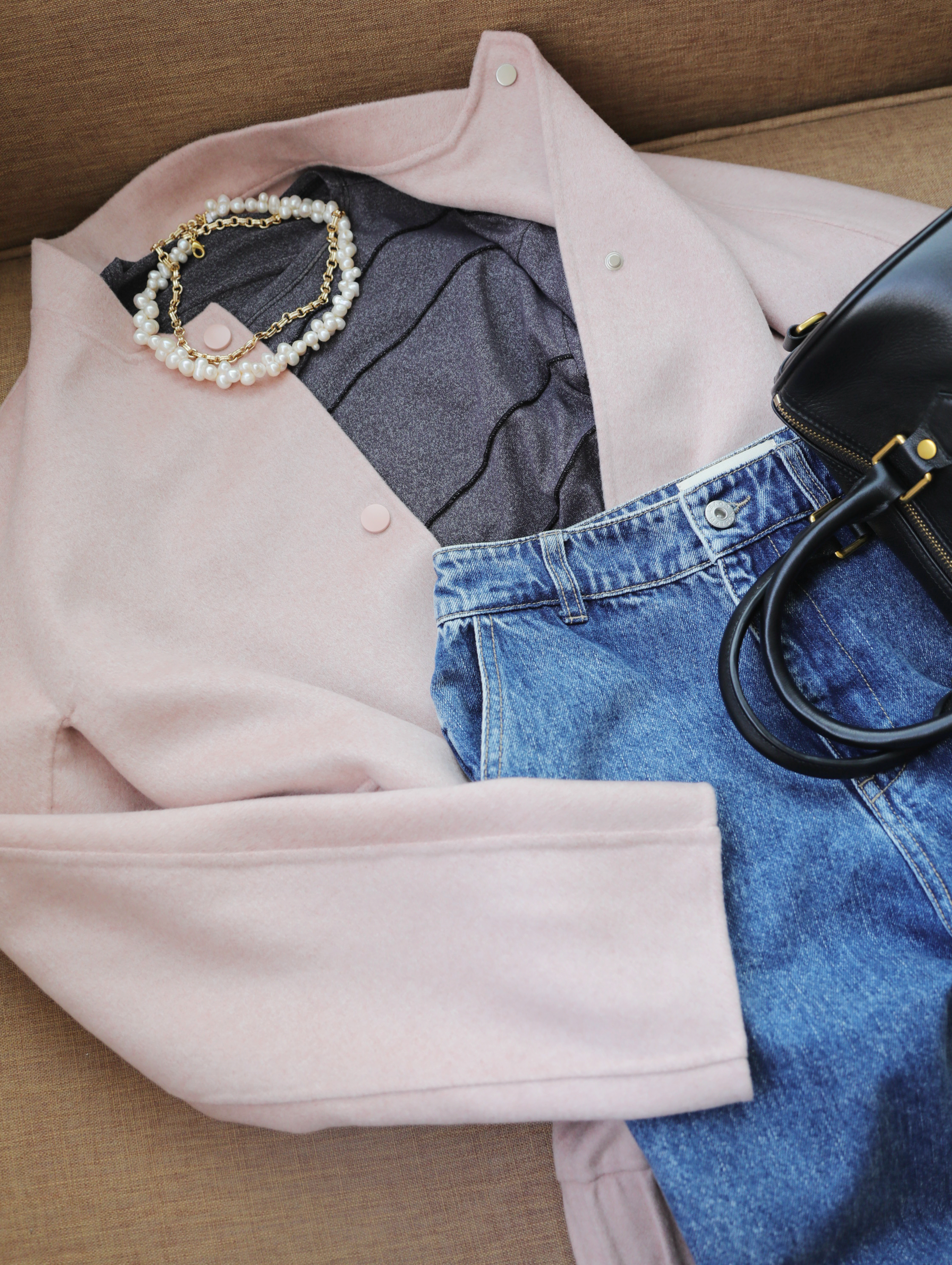 MAISON COVET 纯山羊绒烟灰粉夹克款大衣