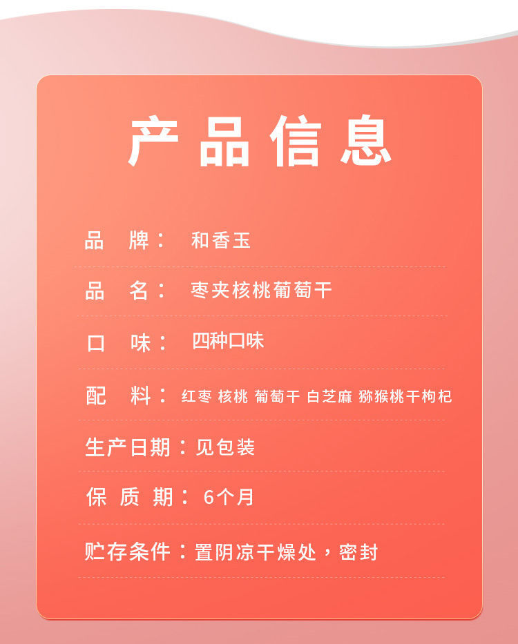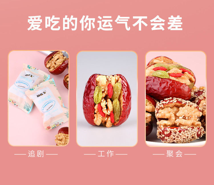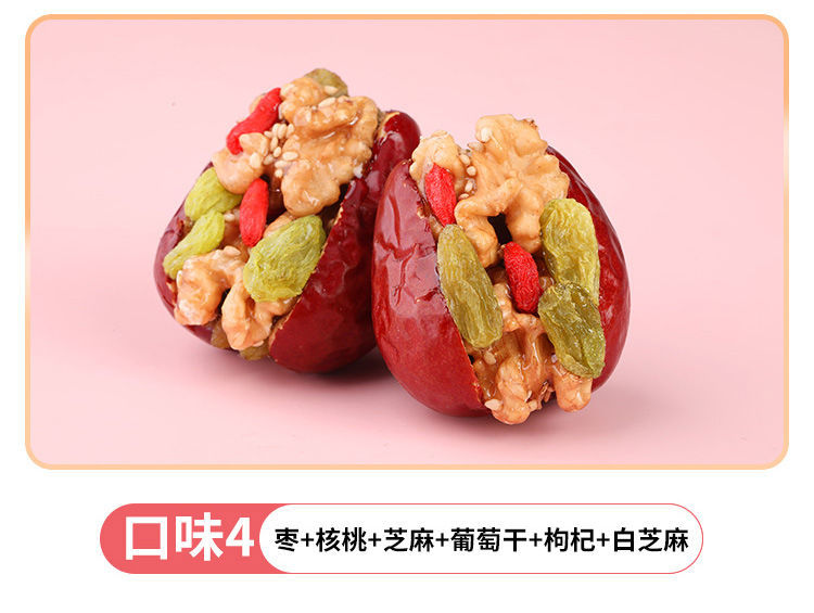 2斤 红枣夹核桃仁葡萄干芝麻和田大枣独立包装零食1000g