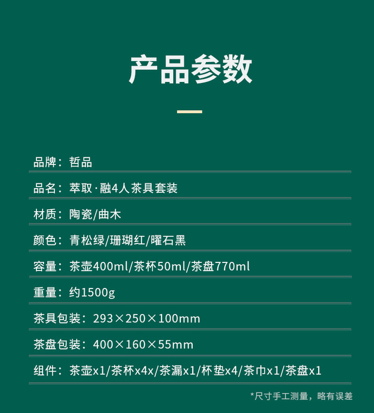 哲品 萃取融4人茶具套装陶瓷马卡龙色功夫茶具含茶盘