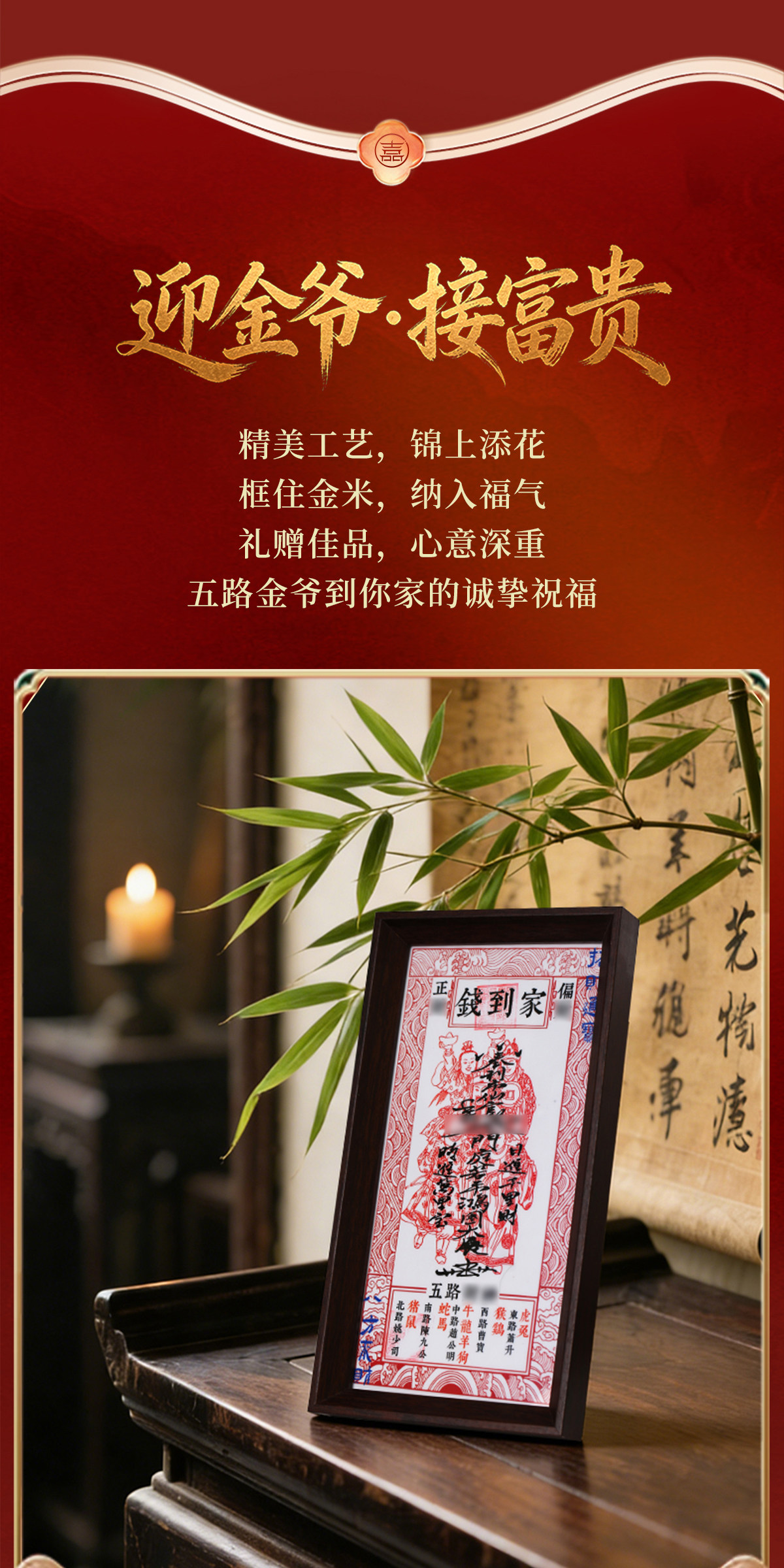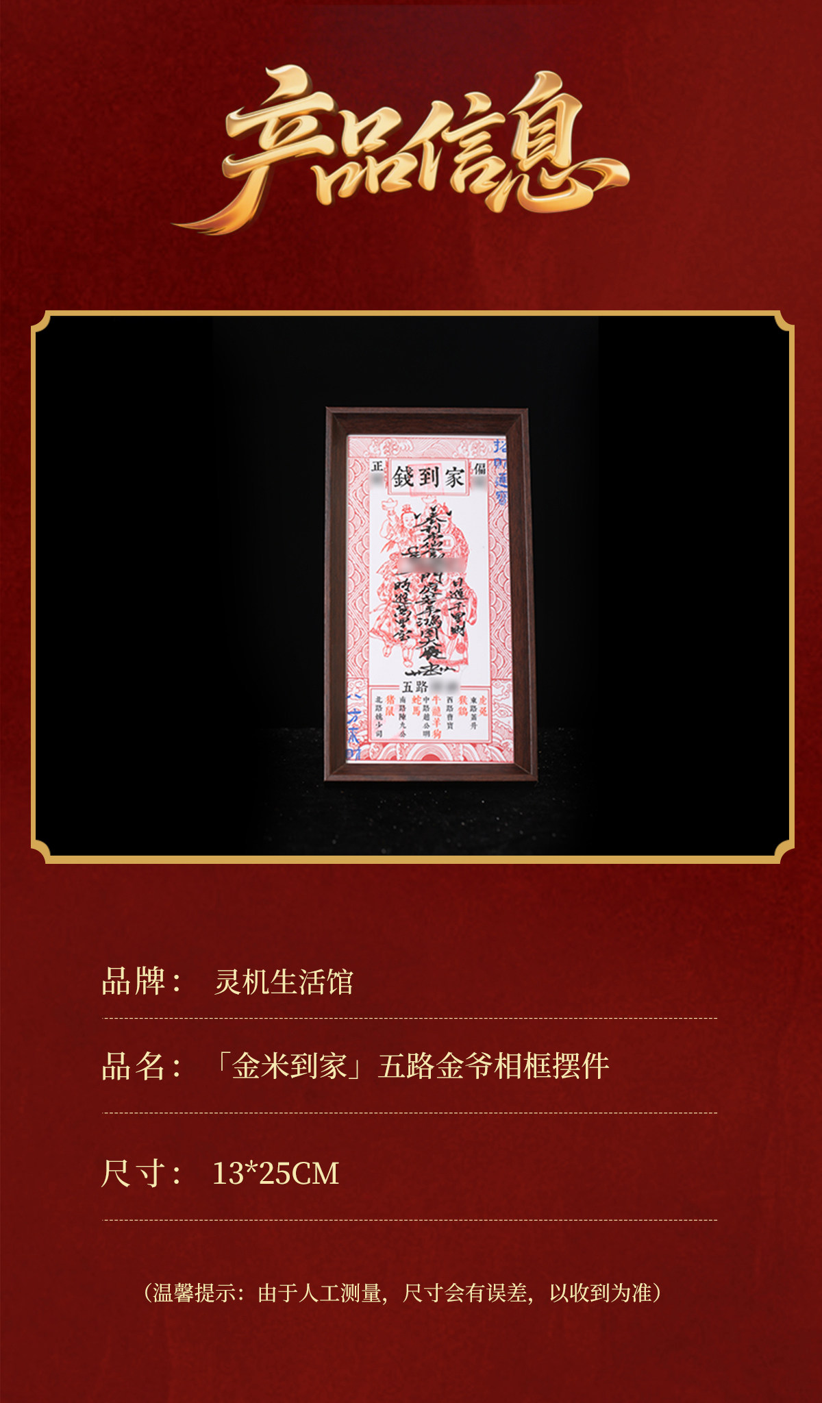 【祈愿吉品】「金米到家」五路财神相框摆件财神幸运物家居办公室