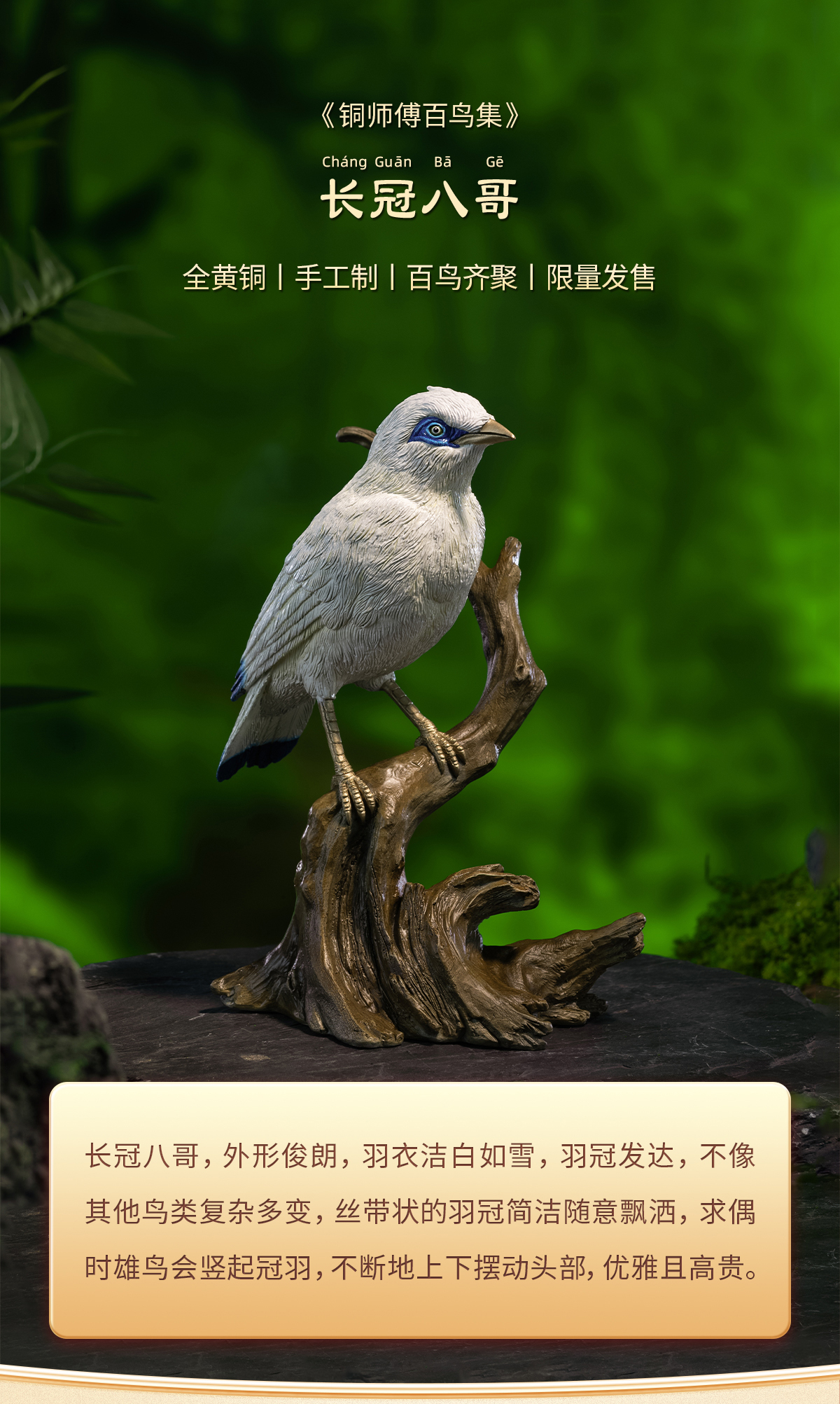 铜师傅《铜师傅百鸟集》之长冠八哥 客厅桌面铜摆件 家居工艺品