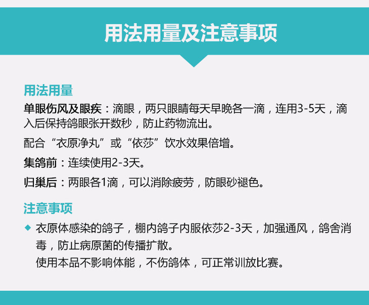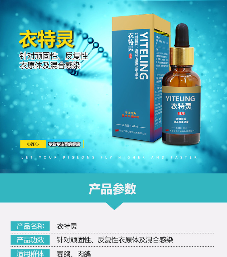【衣特灵】20ml衣原体支原体感染单眼伤风消除疲劳鸽子药(心连心鸽药)