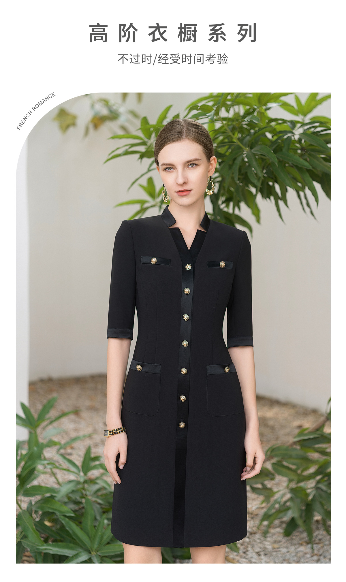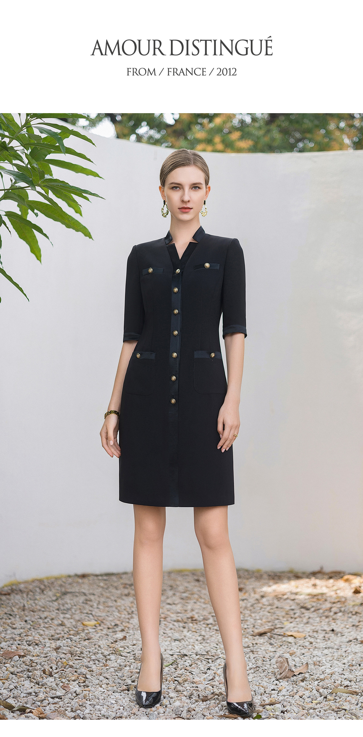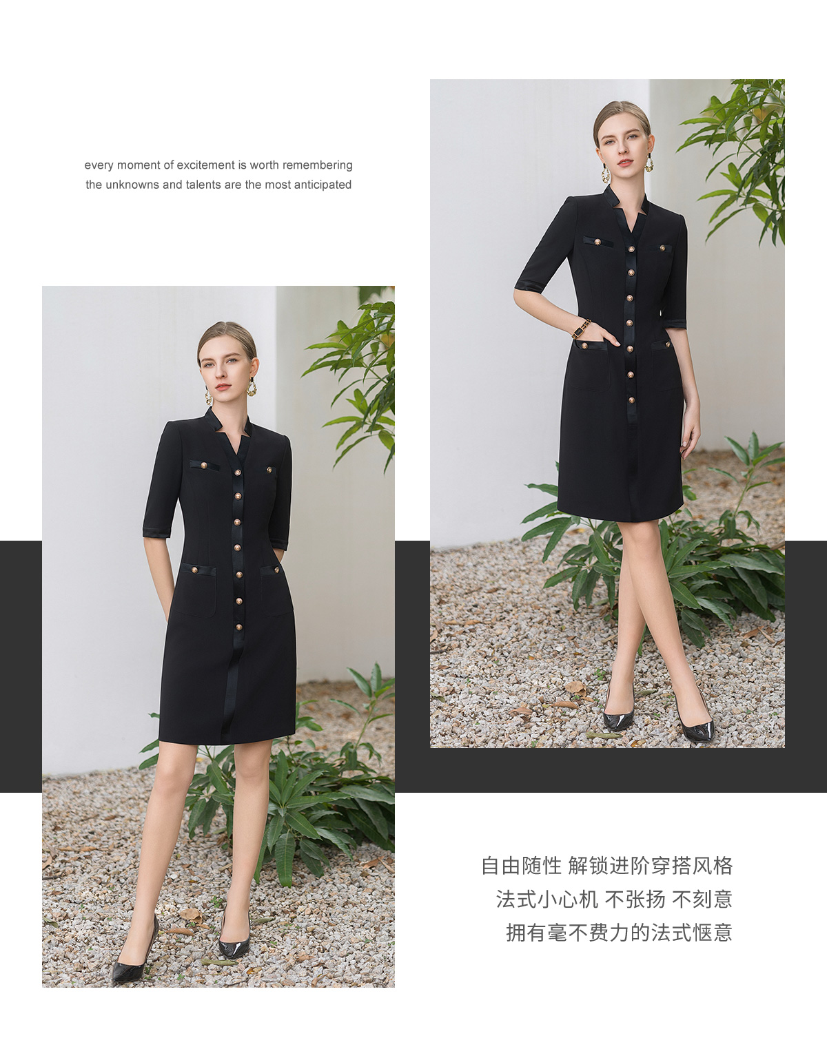 AD高端精致连衣裙女法式赫本风小黑裙单排扣醋酸领西装裙中长款夏