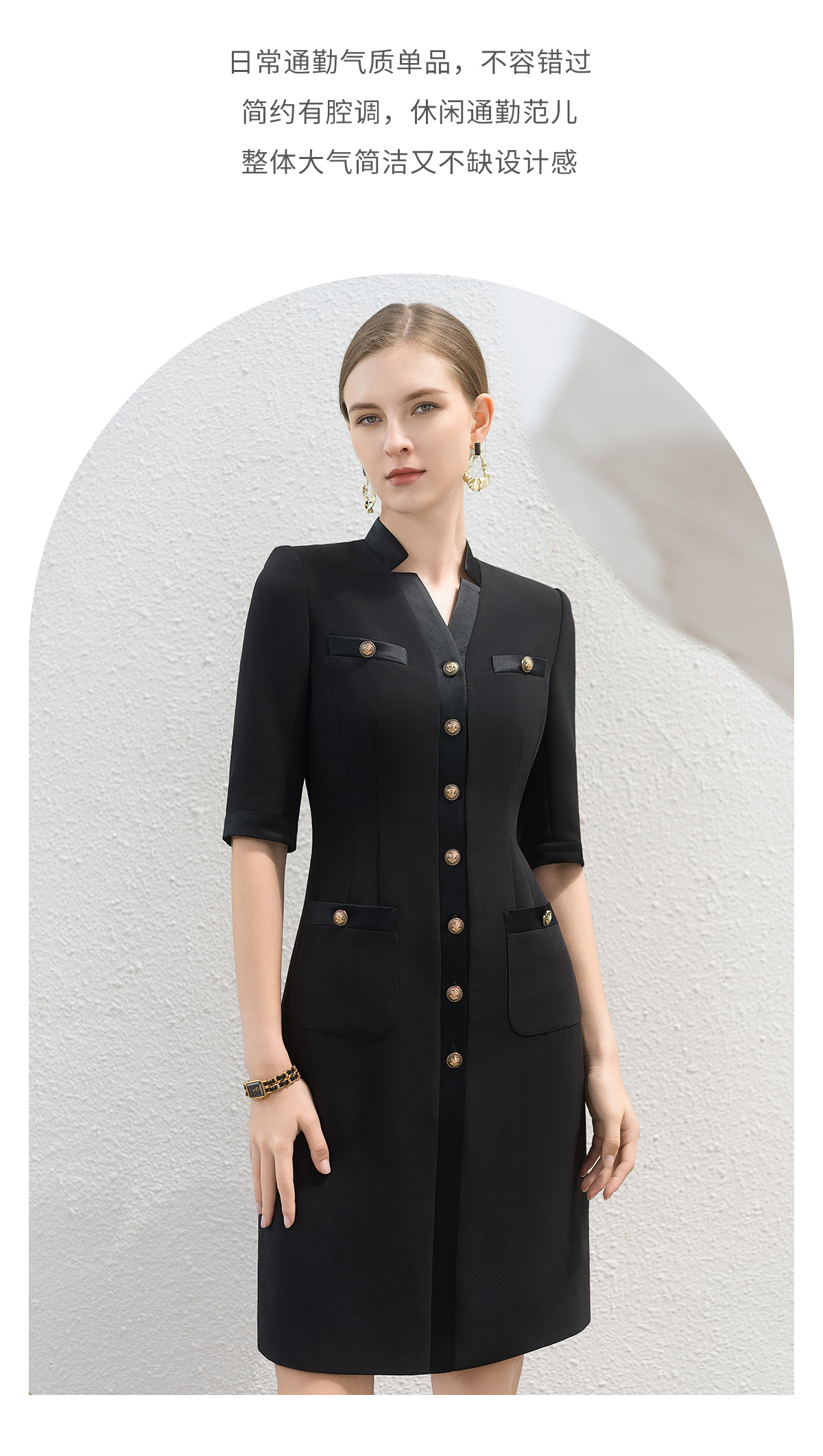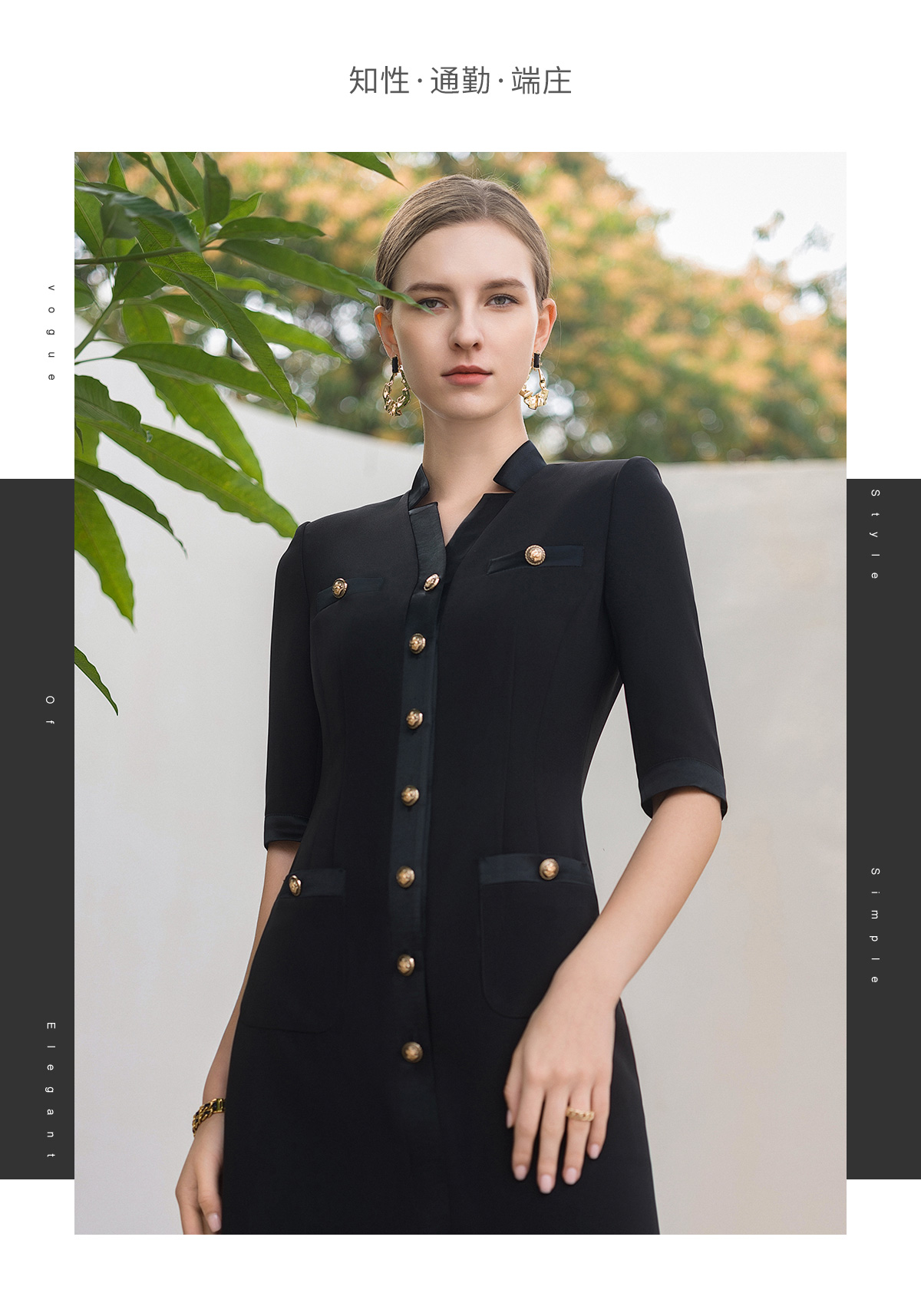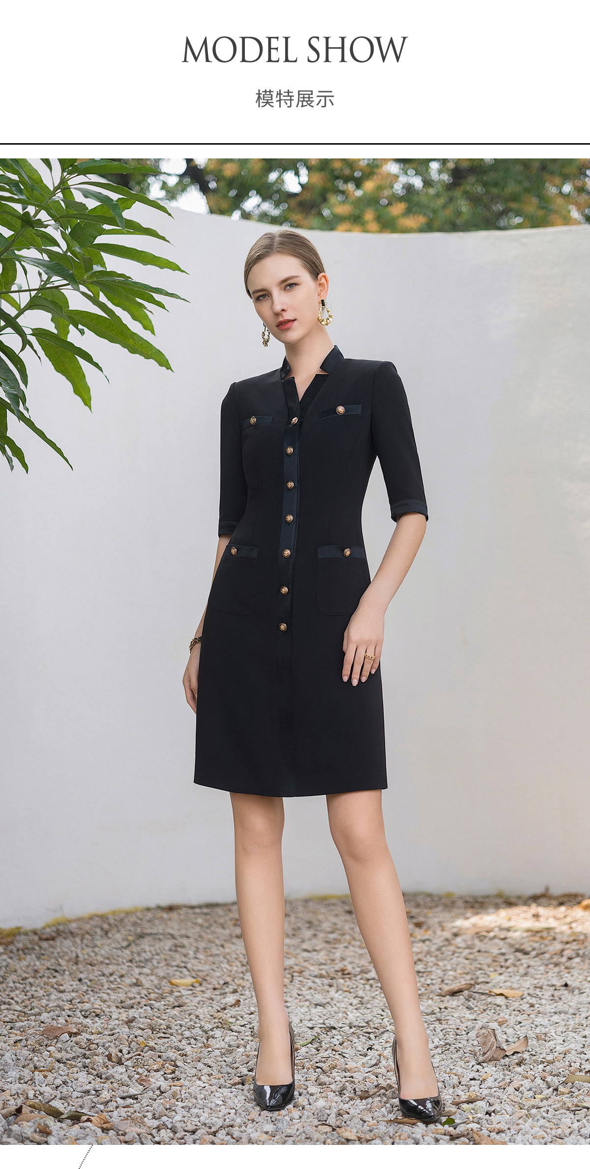 AD高端精致连衣裙女法式赫本风小黑裙单排扣醋酸领西装裙中长款夏