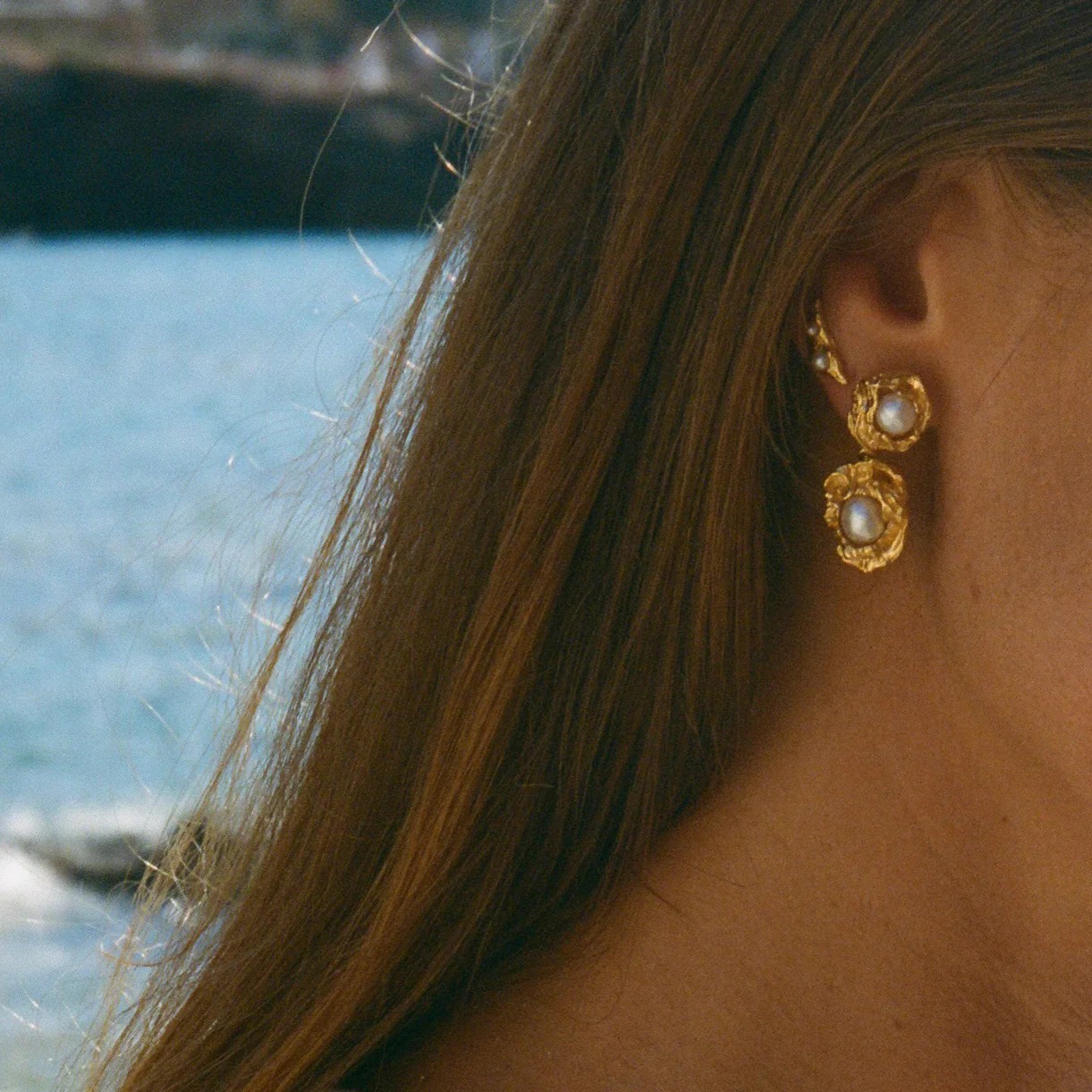 北京仓|Les Mères-Classic Double-金色 珍珠 耳钉[荷兰设计师]