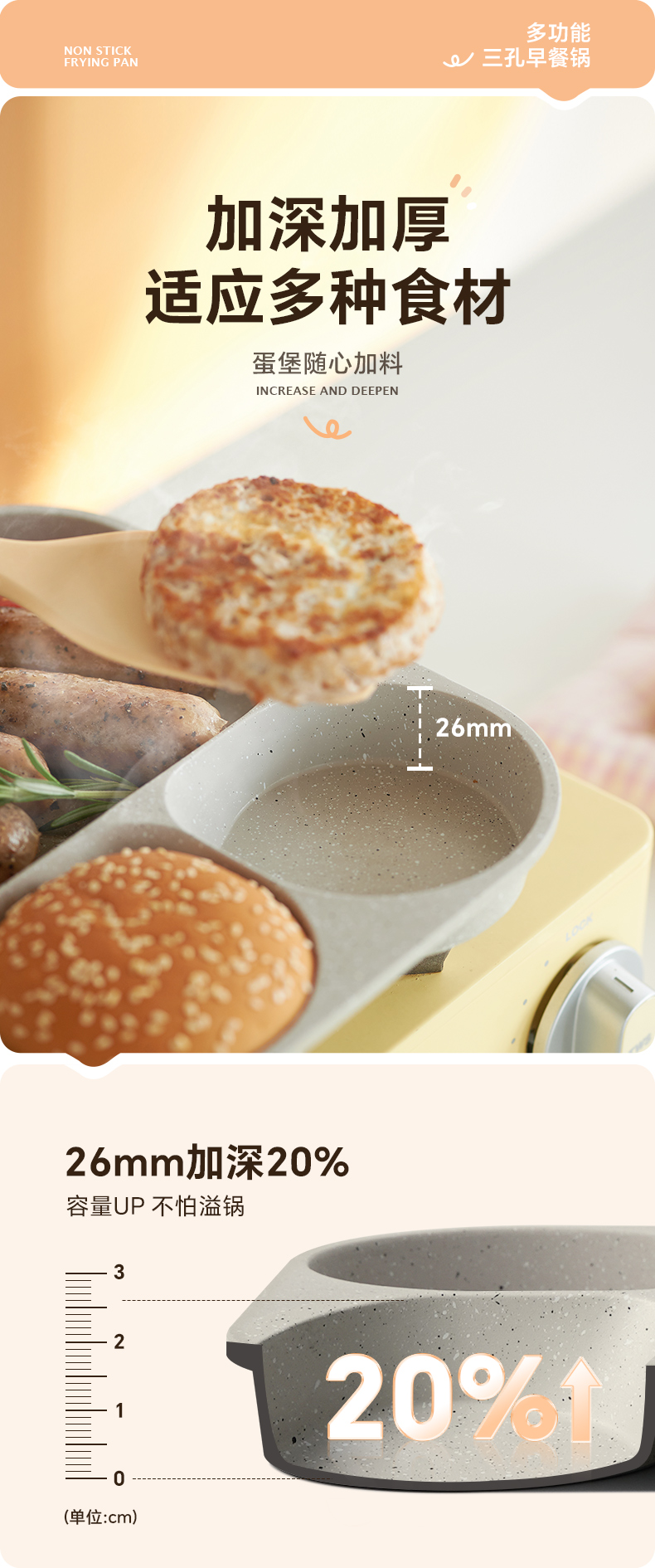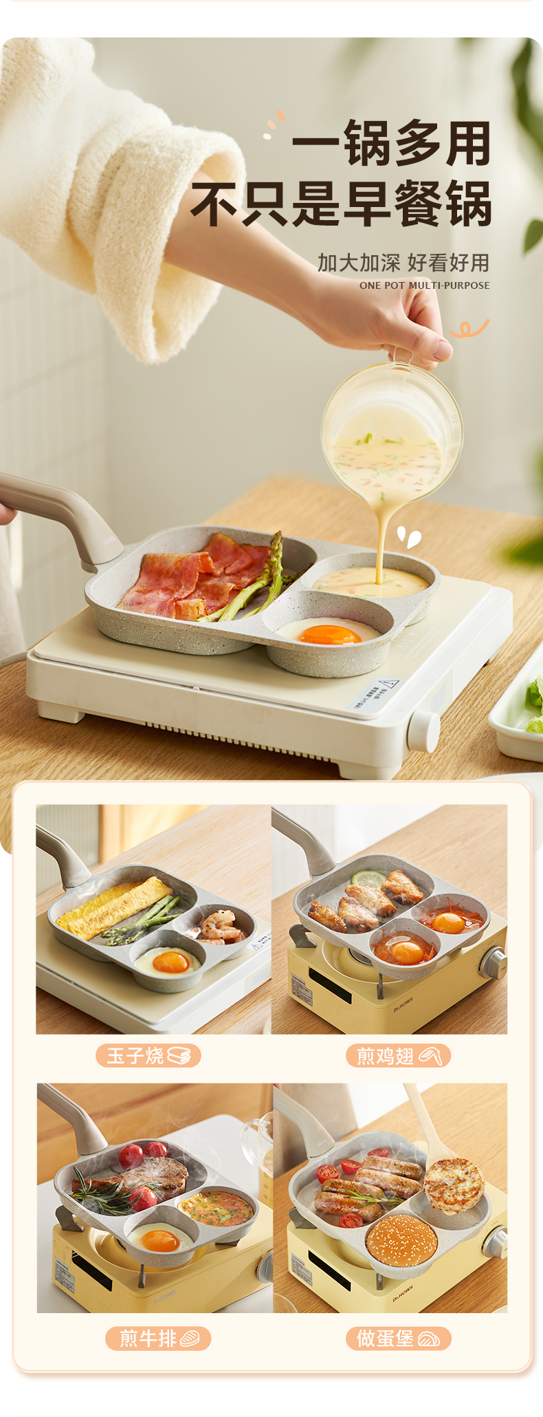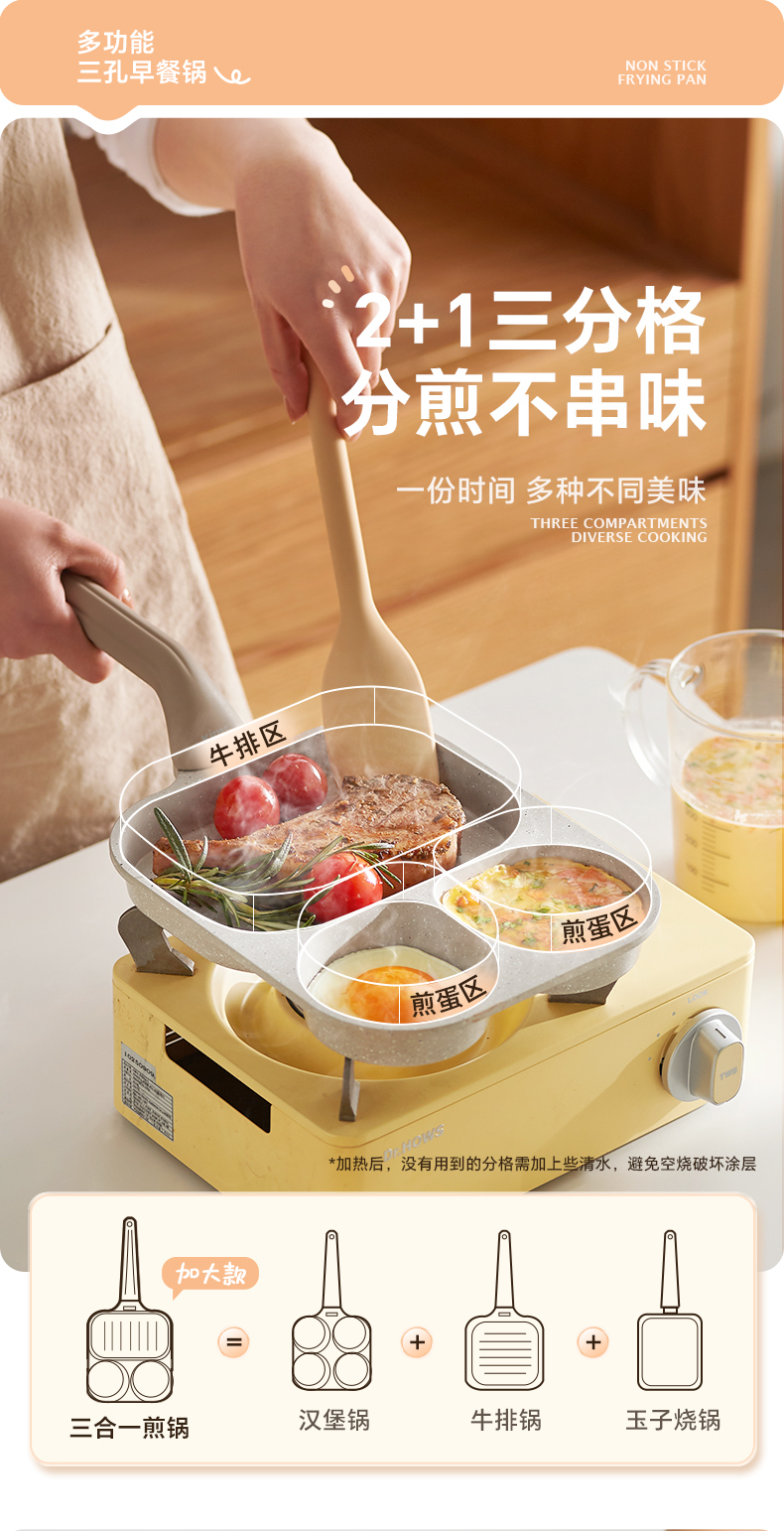 【文怡之选】kimscook 多功能三孔早餐锅 分区烹饪 一锅多用 不挑炉灶 牛排玉子烧煎蛋锅