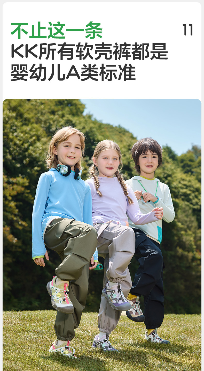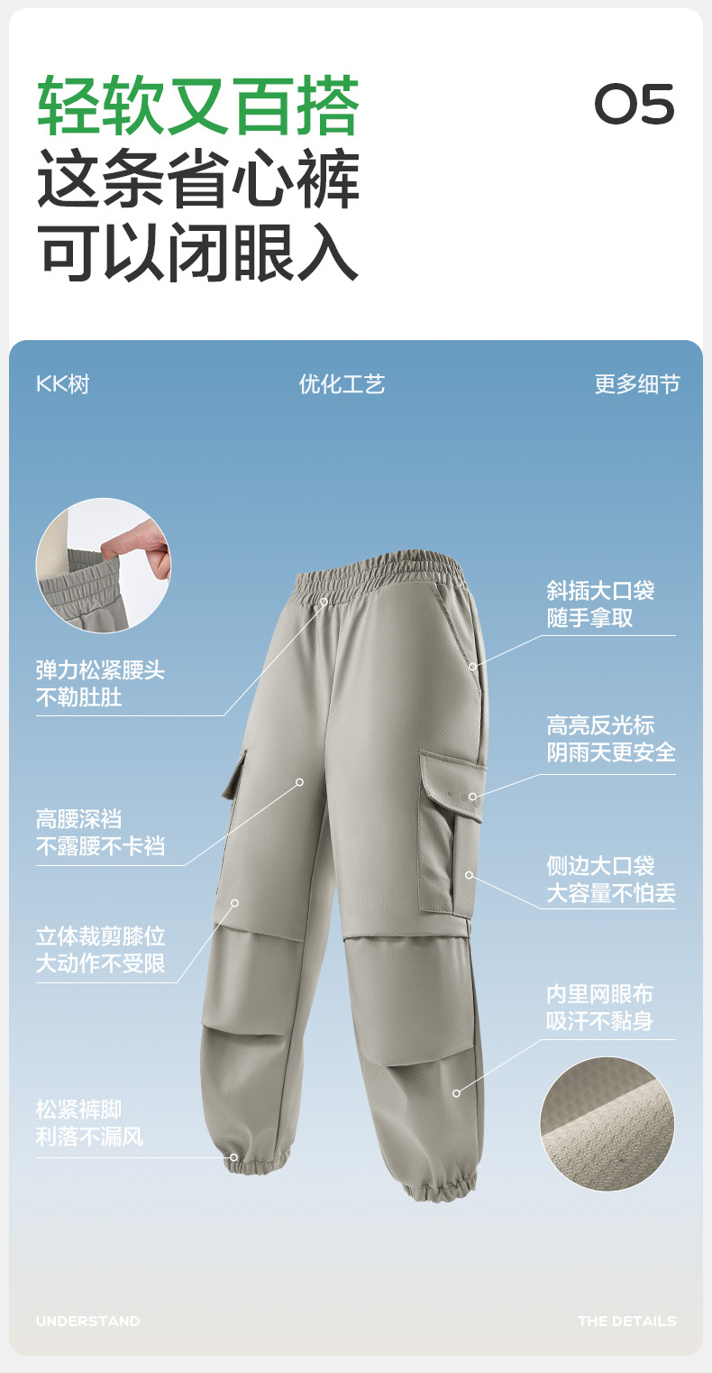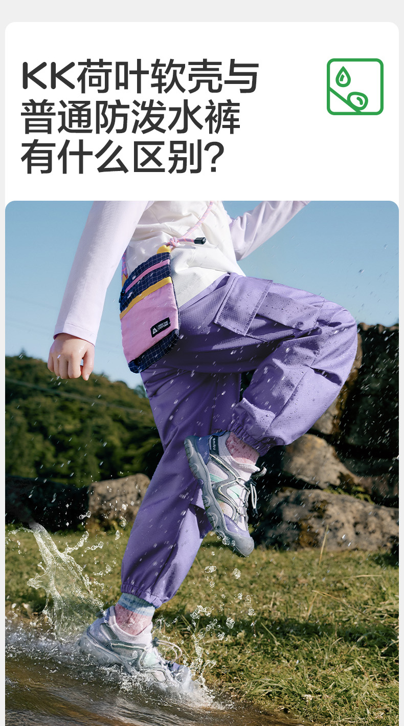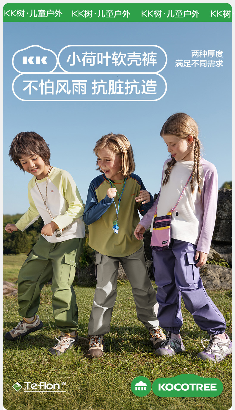 [屁侠推荐]KK树儿童冲锋裤男童裤子女孩工装裤2025新款中大童软壳裤防水长裤小荷叶软壳裤(束脚版)
