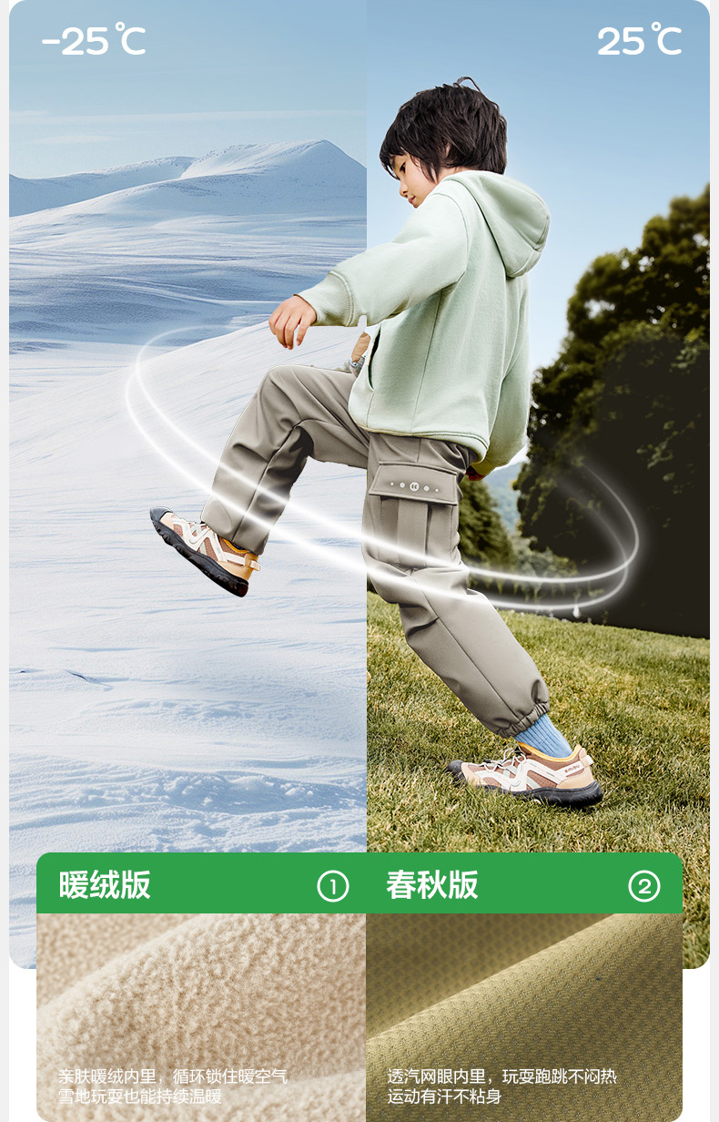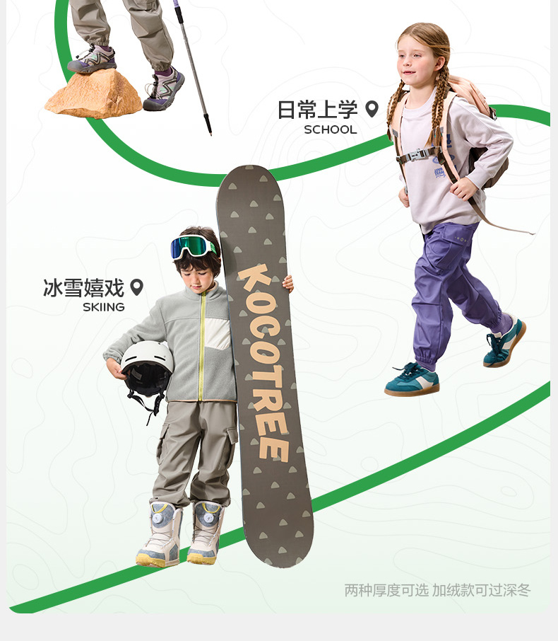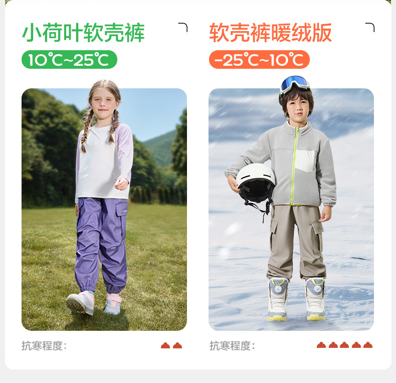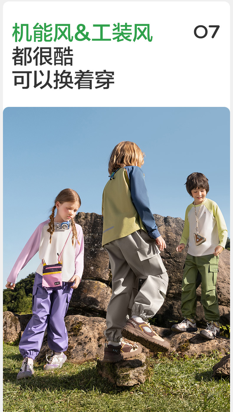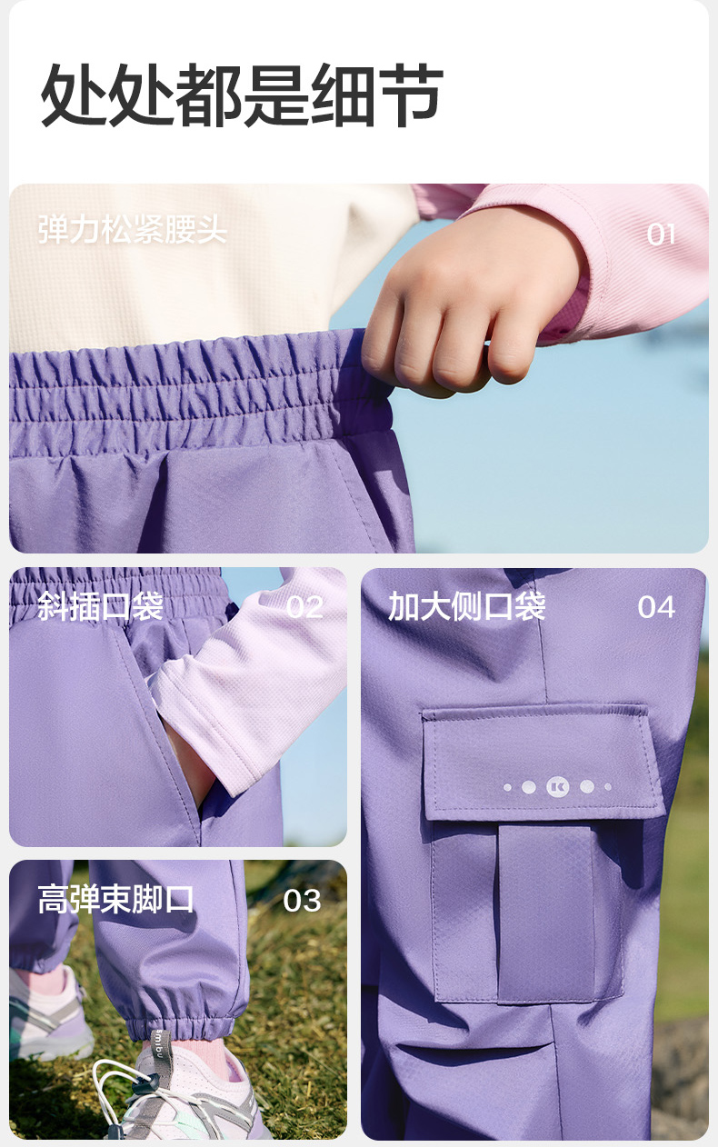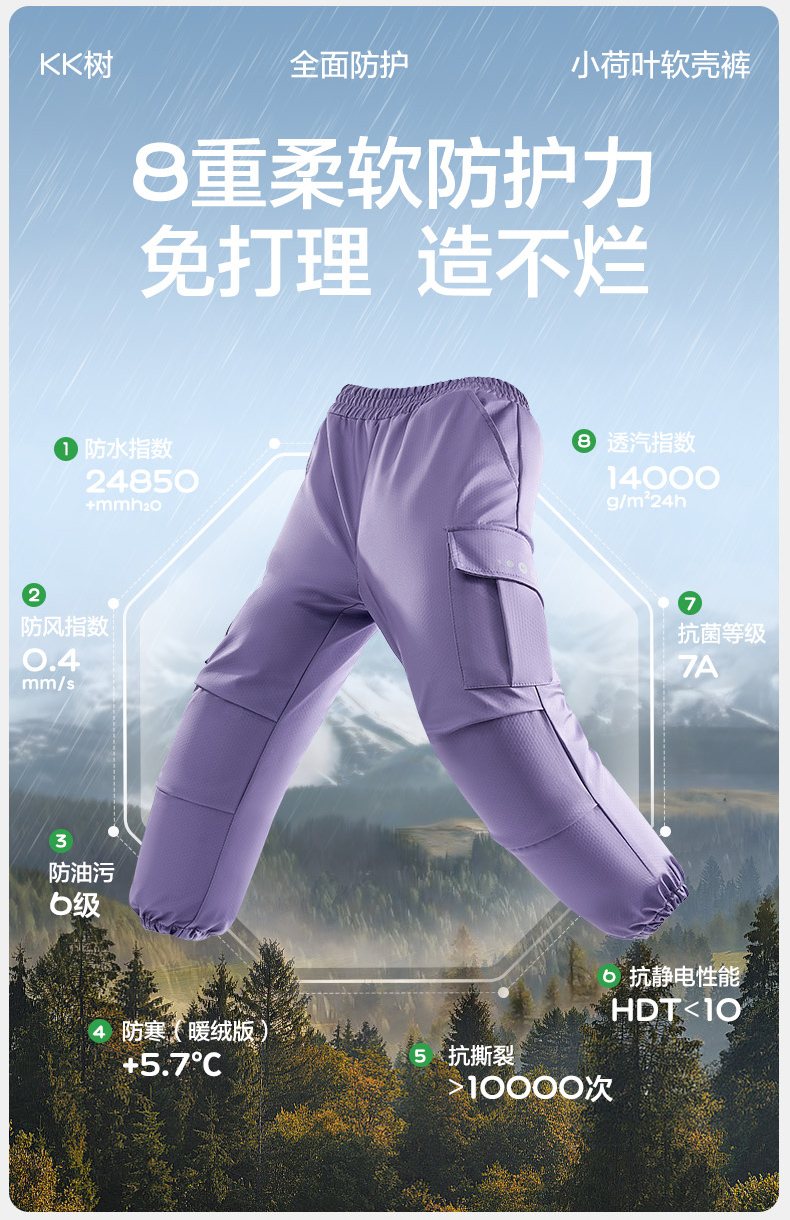 [屁侠推荐]KK树儿童冲锋裤男童裤子女孩工装裤2025新款中大童软壳裤防水长裤小荷叶软壳裤(束脚版)