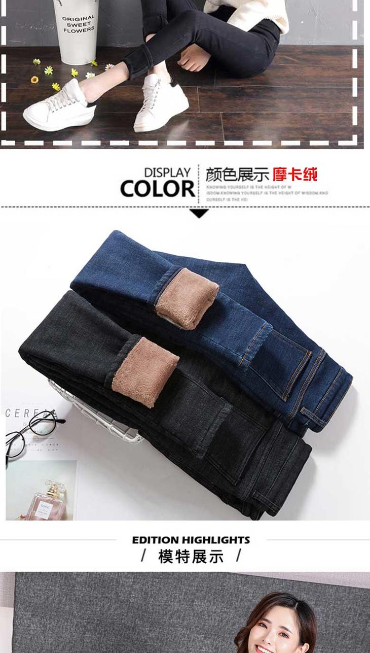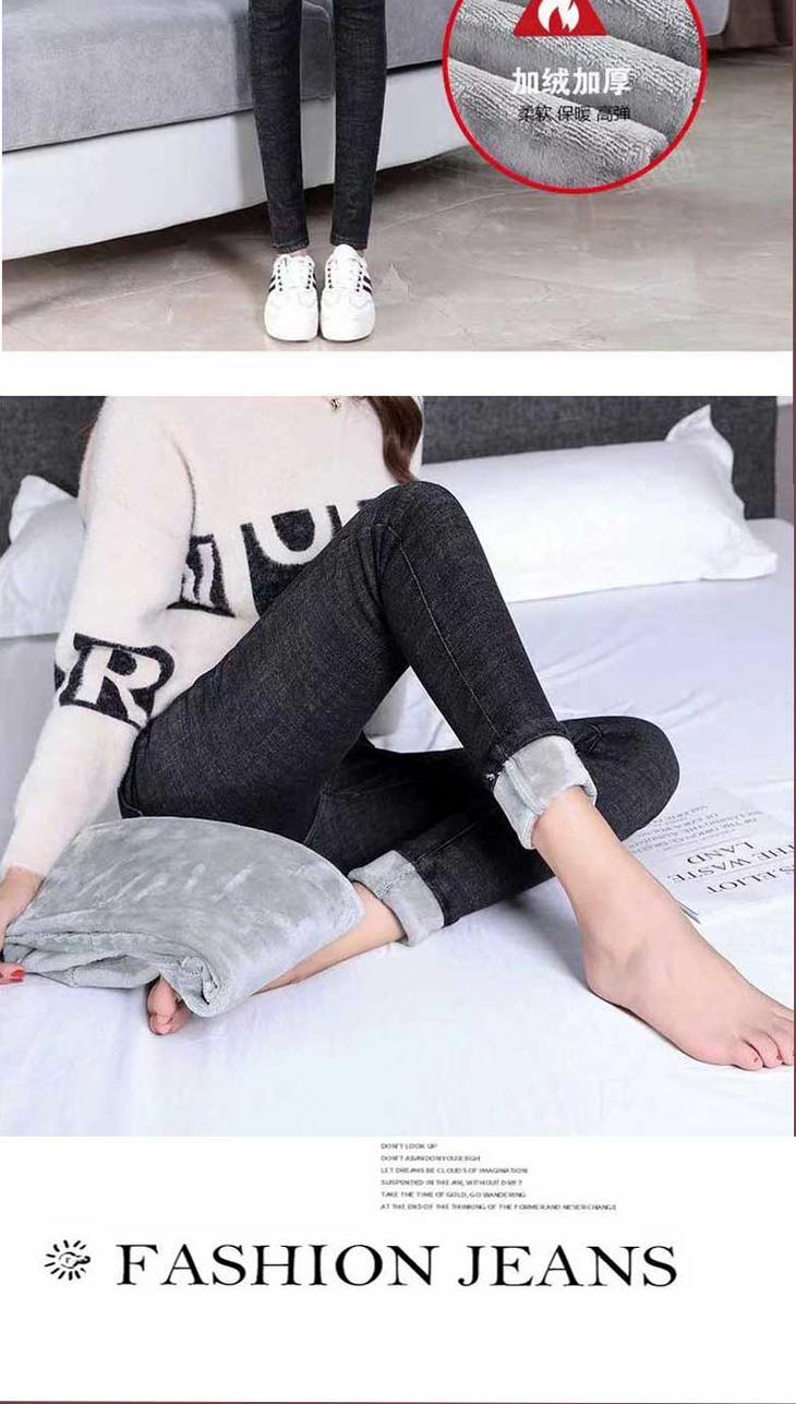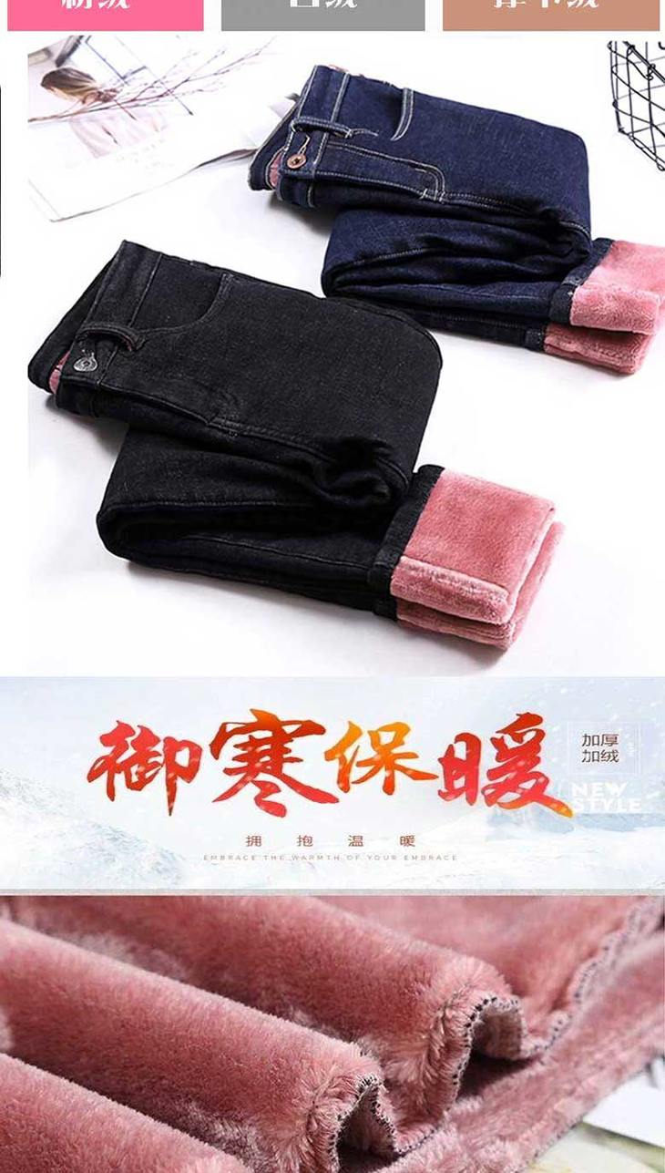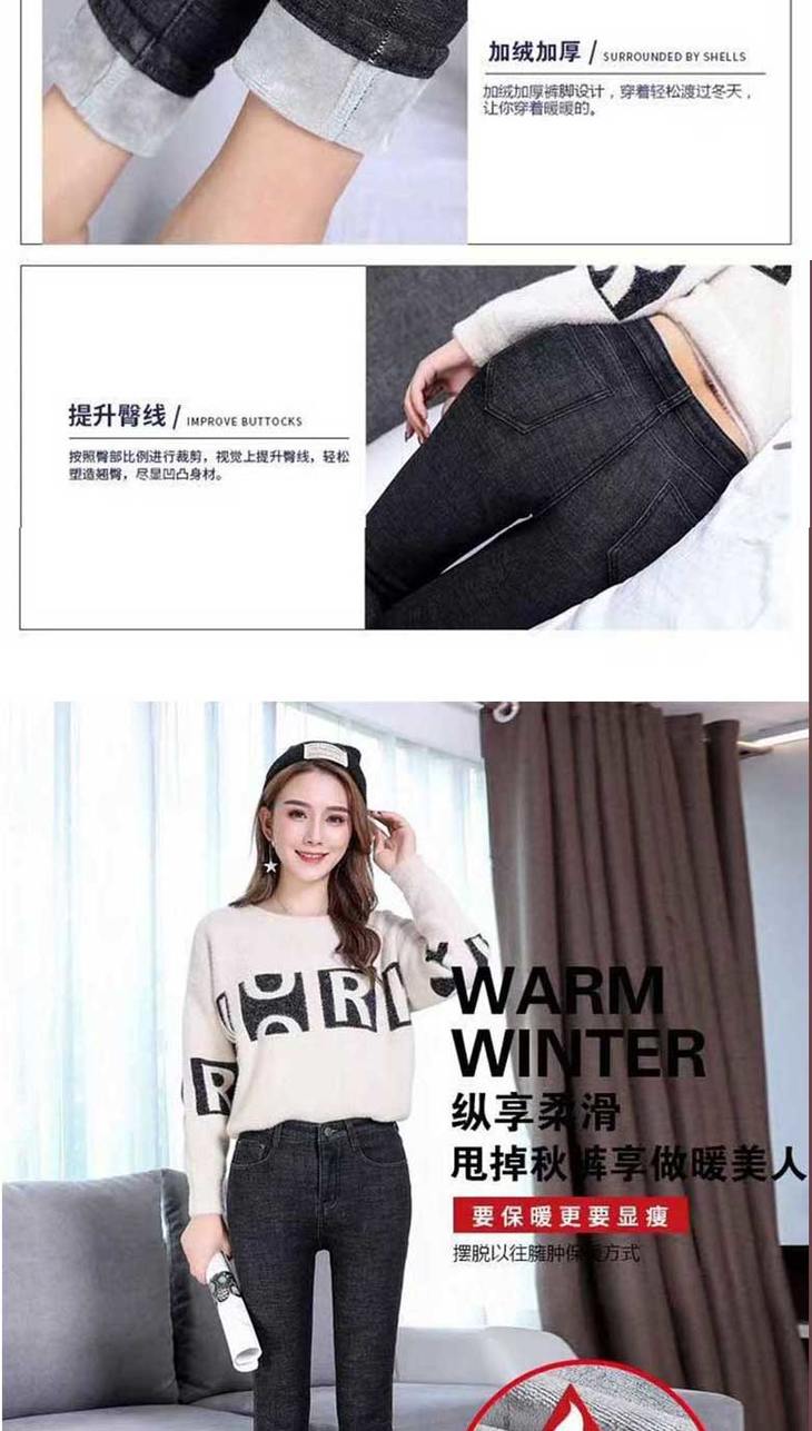 加绒牛仔裤女高腰弹力紧身小脚裤大码带绒保暖冬季加厚棉裤子