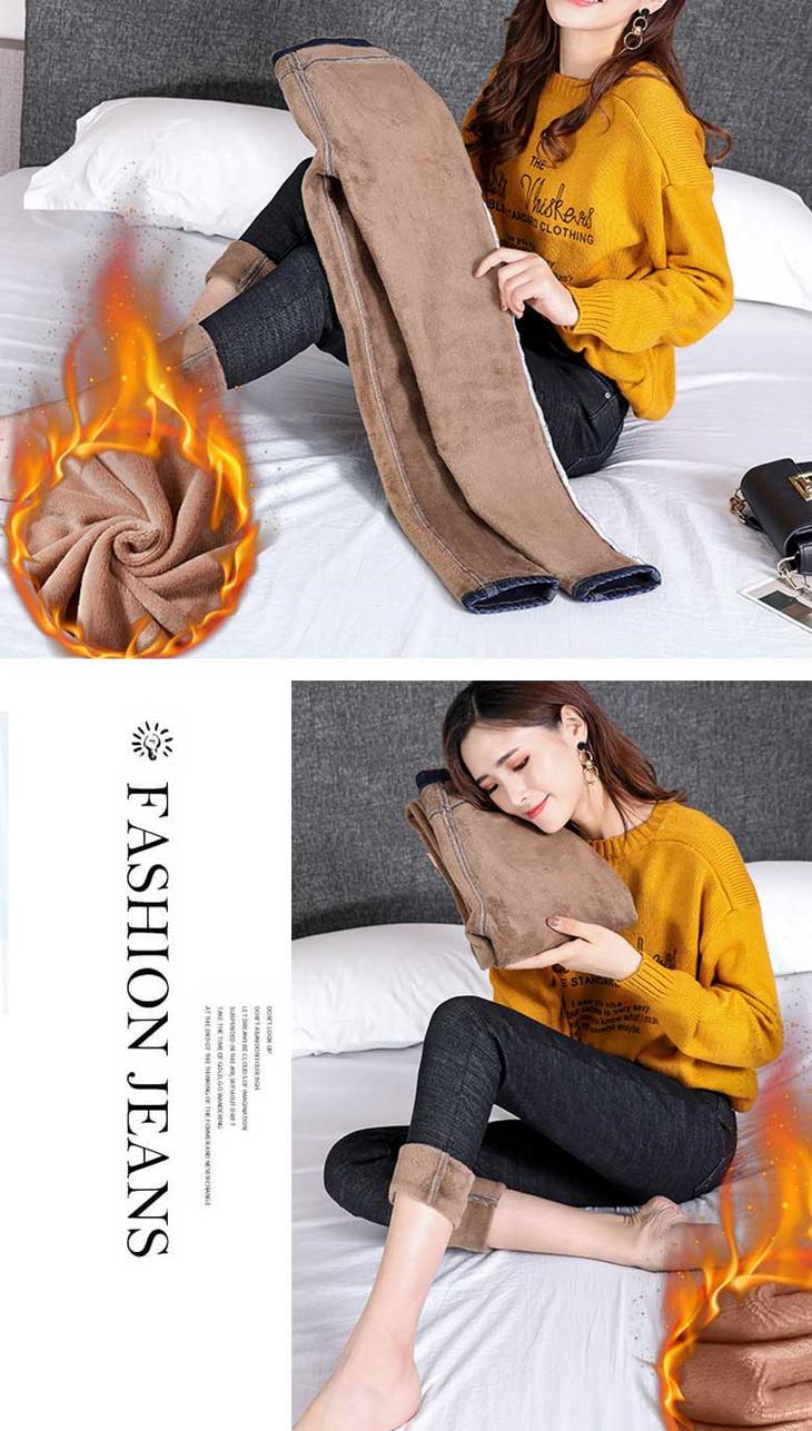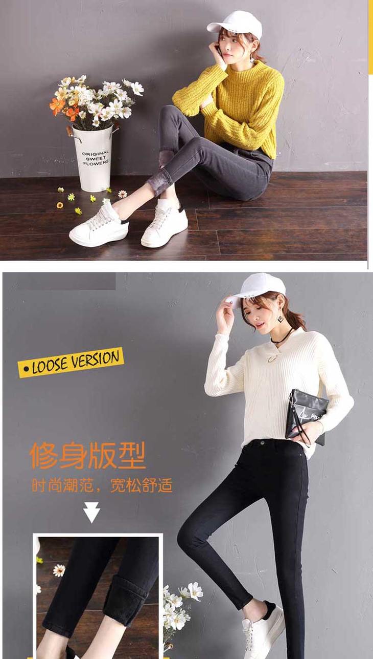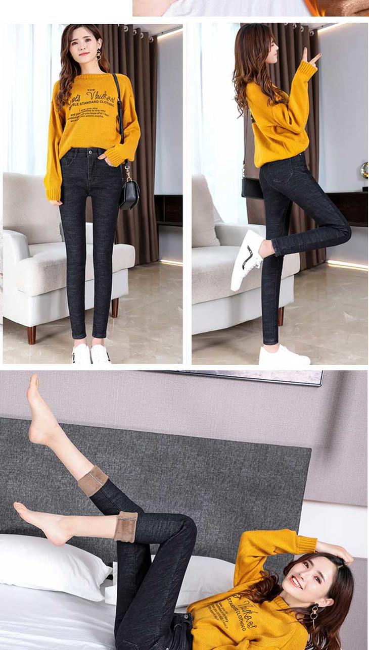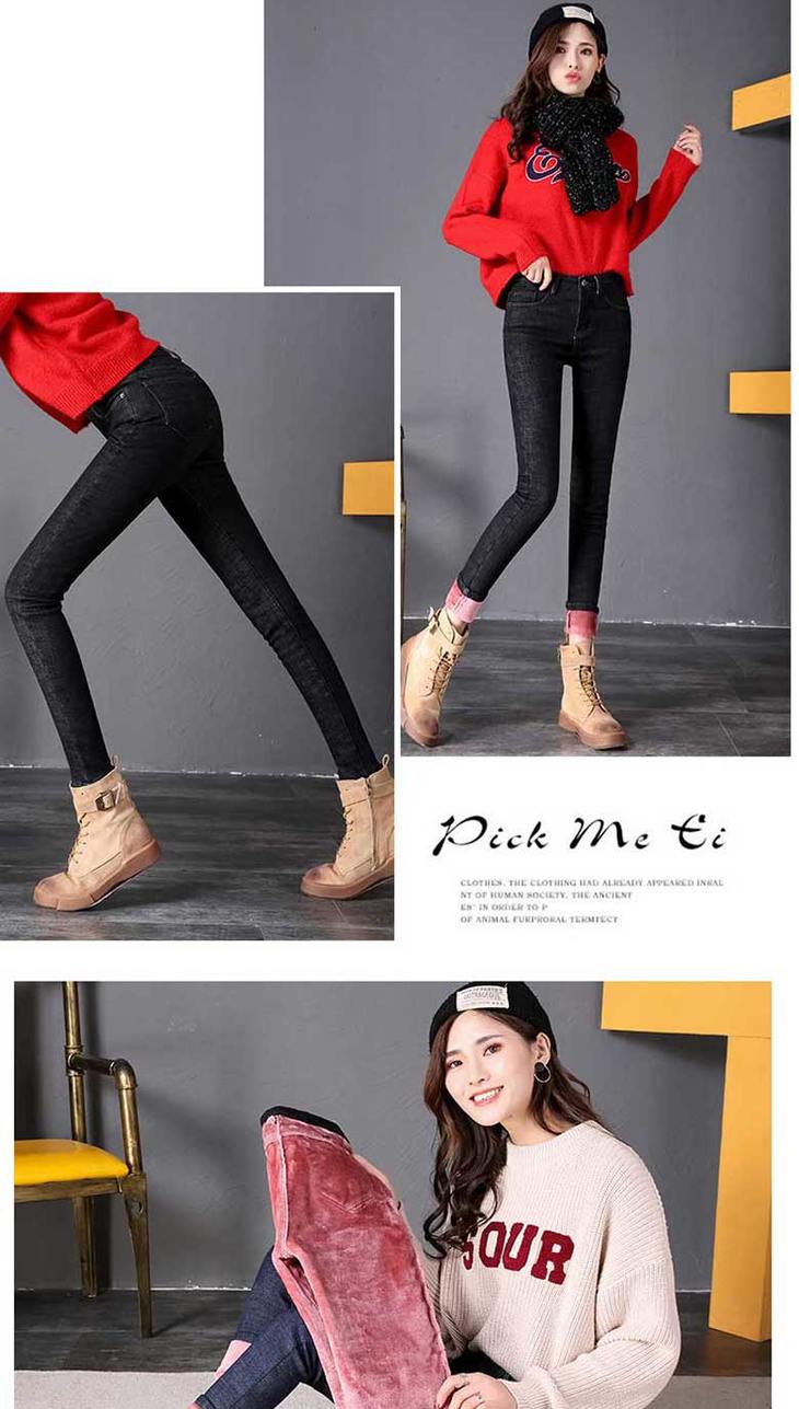 加绒牛仔裤女高腰弹力紧身小脚裤大码带绒保暖冬季加厚棉裤子