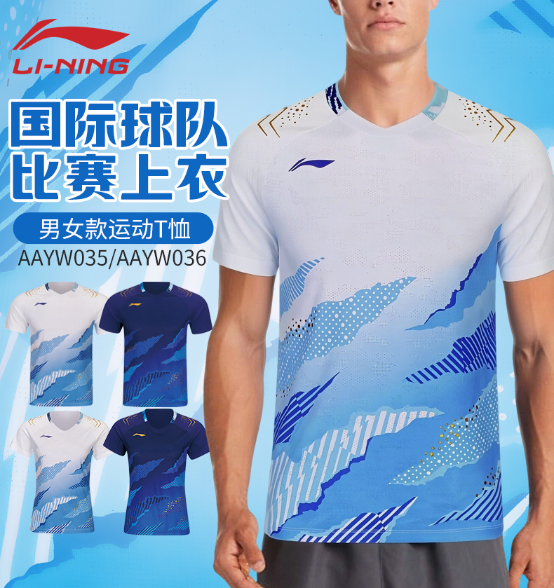 李宁羽毛球服AAYW035男女款运动短袖大赛服速干短袖T恤