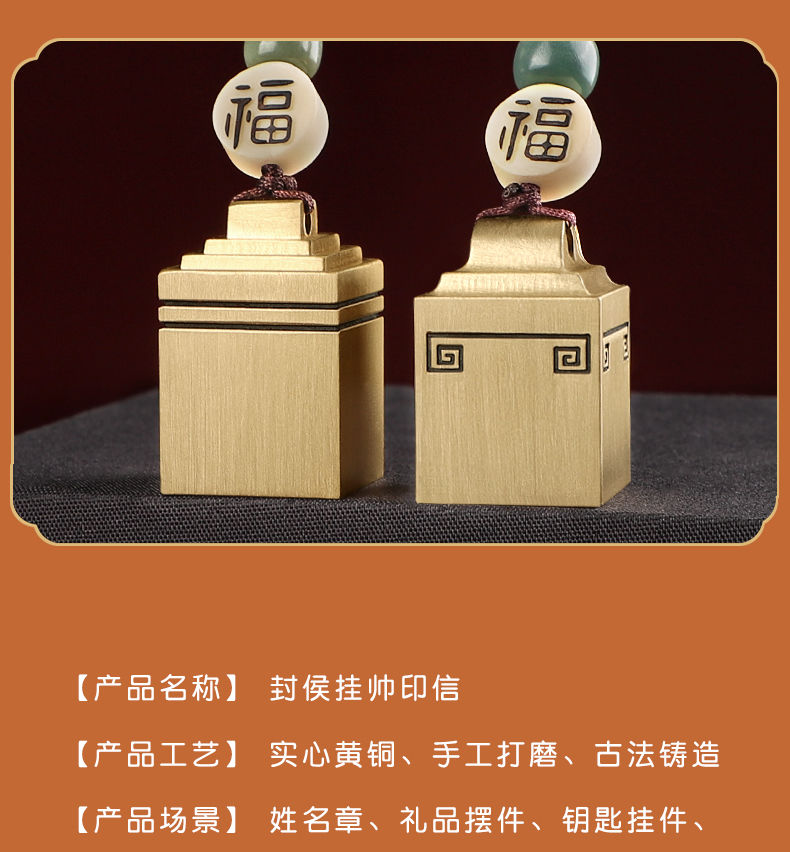 封侯挂帅 印章定刻黄铜小方印章古风礼品钥匙扣