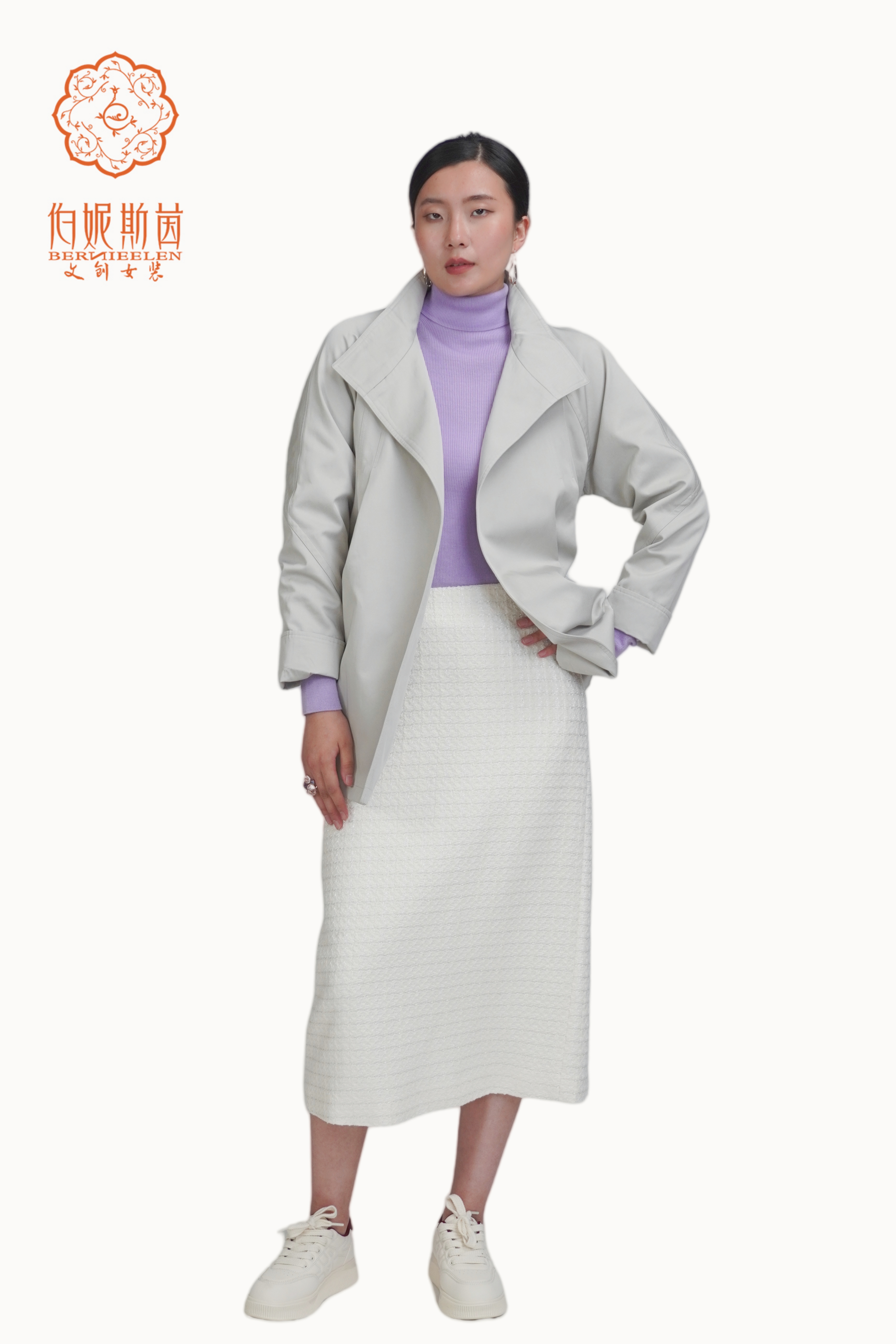 SZ3D52_逍遥游色_风衣_秋季_翻领开襟简约剪裁中长款_高级女装_BERNIEELEN 伯妮斯茵