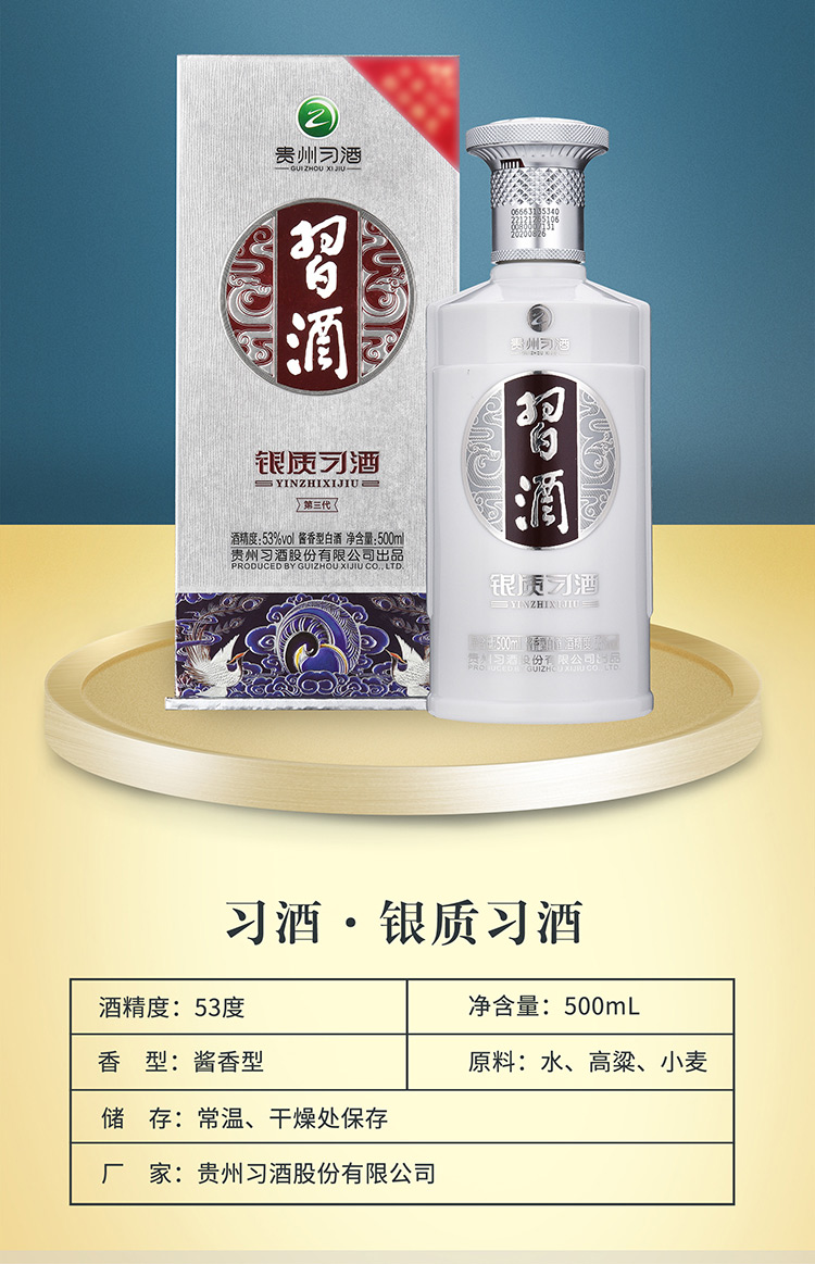 银质习酒 53度 500ml 酱香型白酒 第三代升级酱香 高档大气